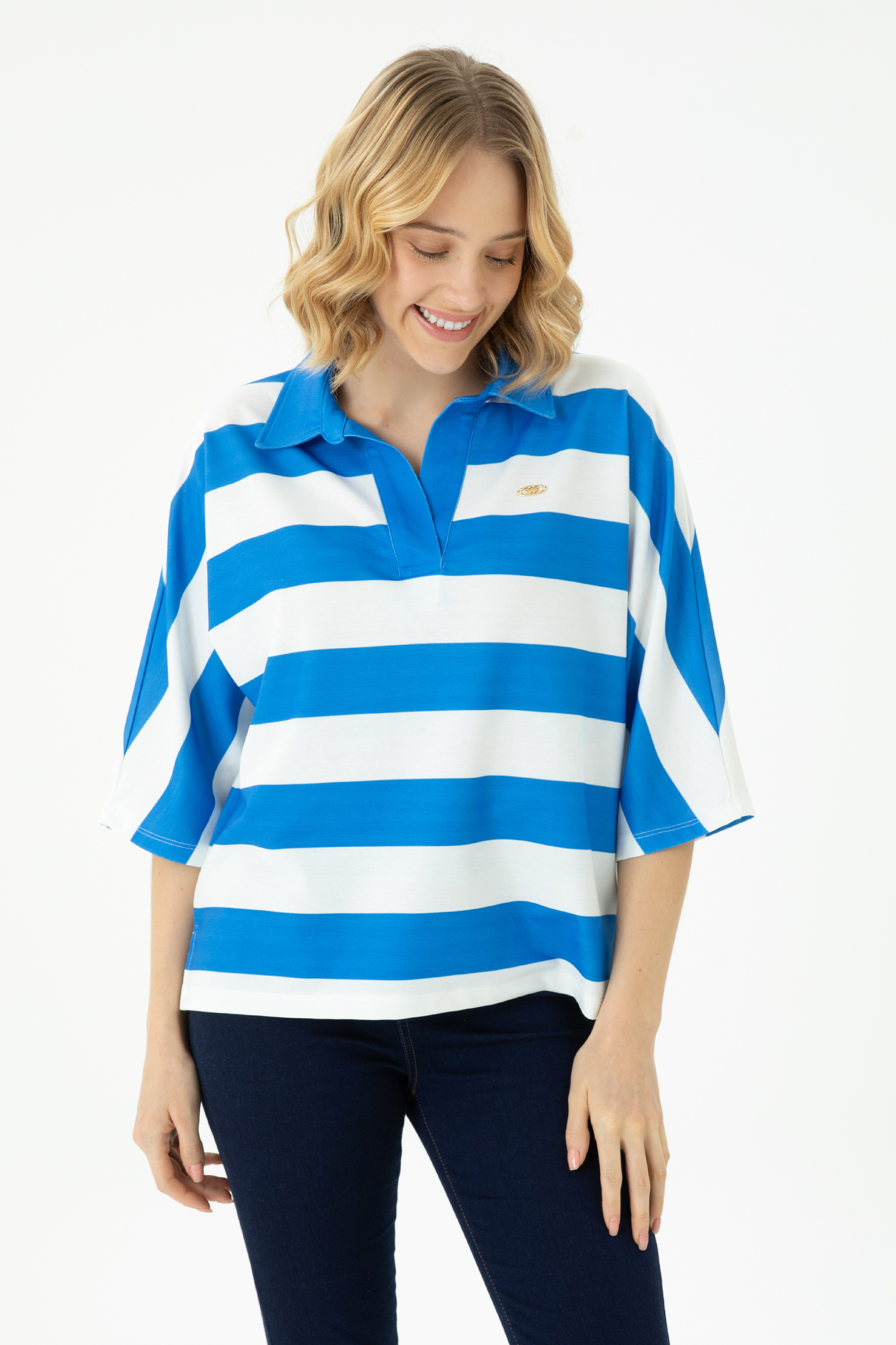Kadın Saks Polo Yaka Tişört