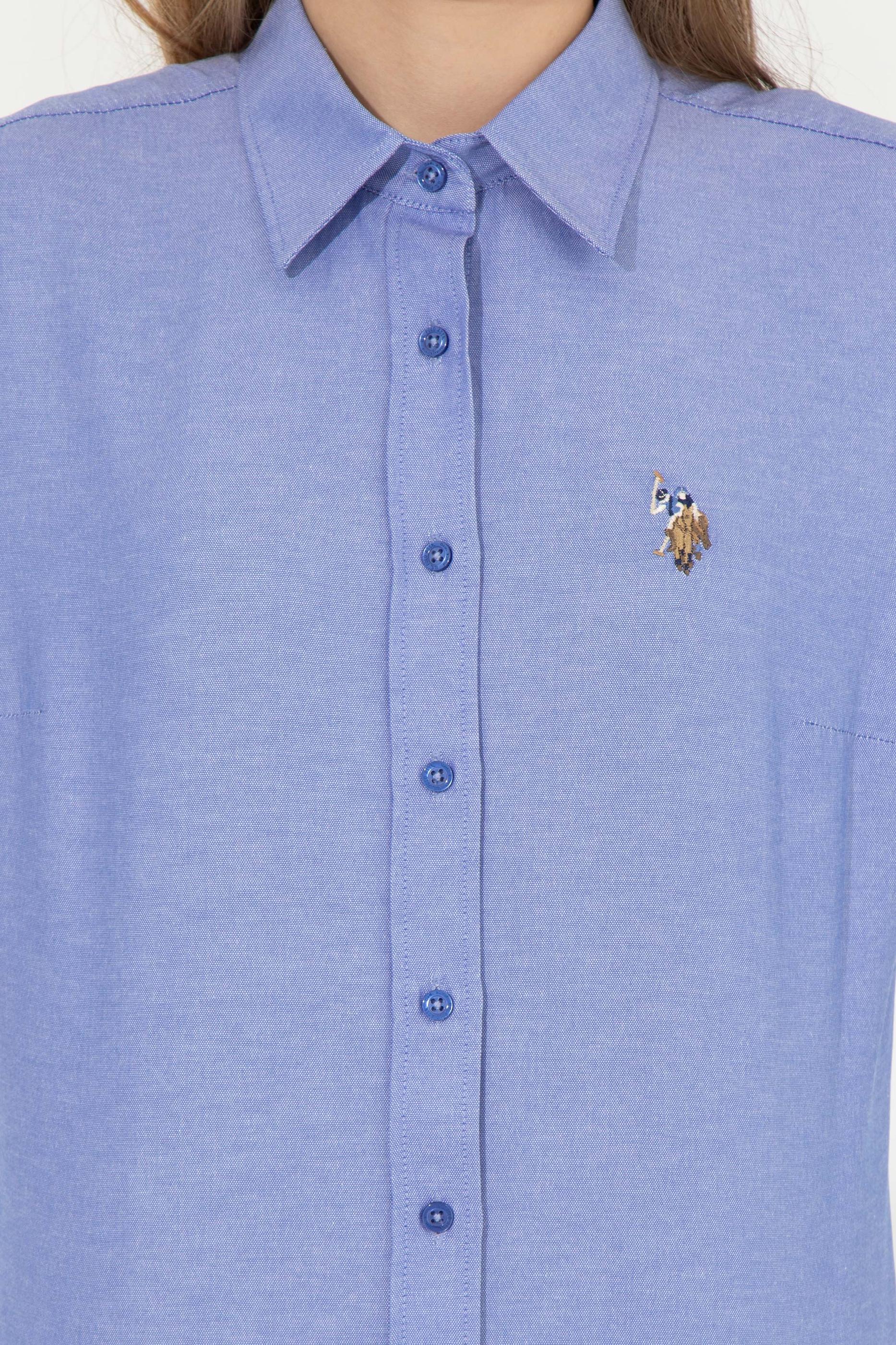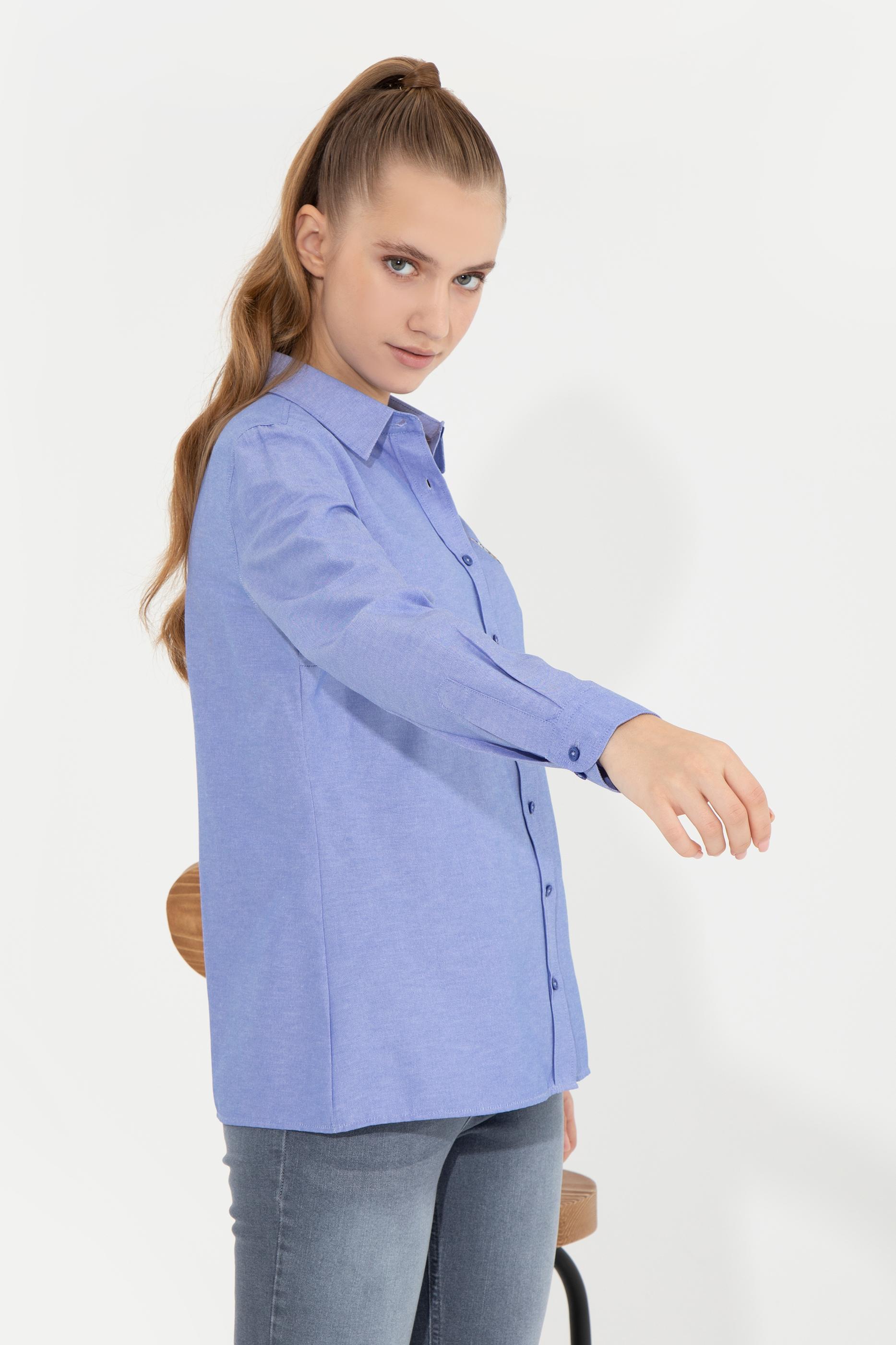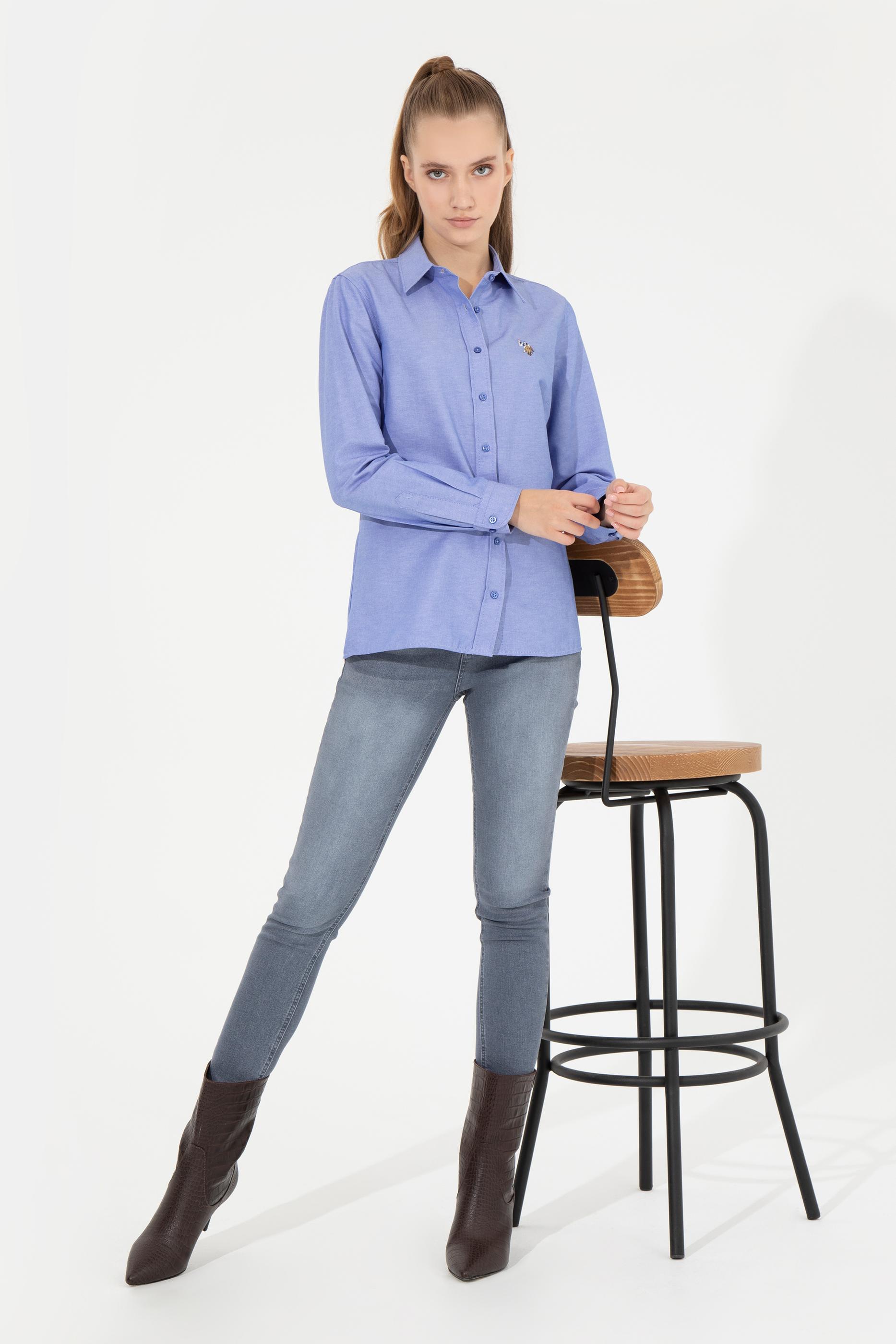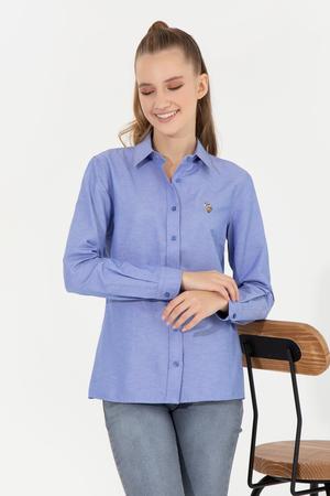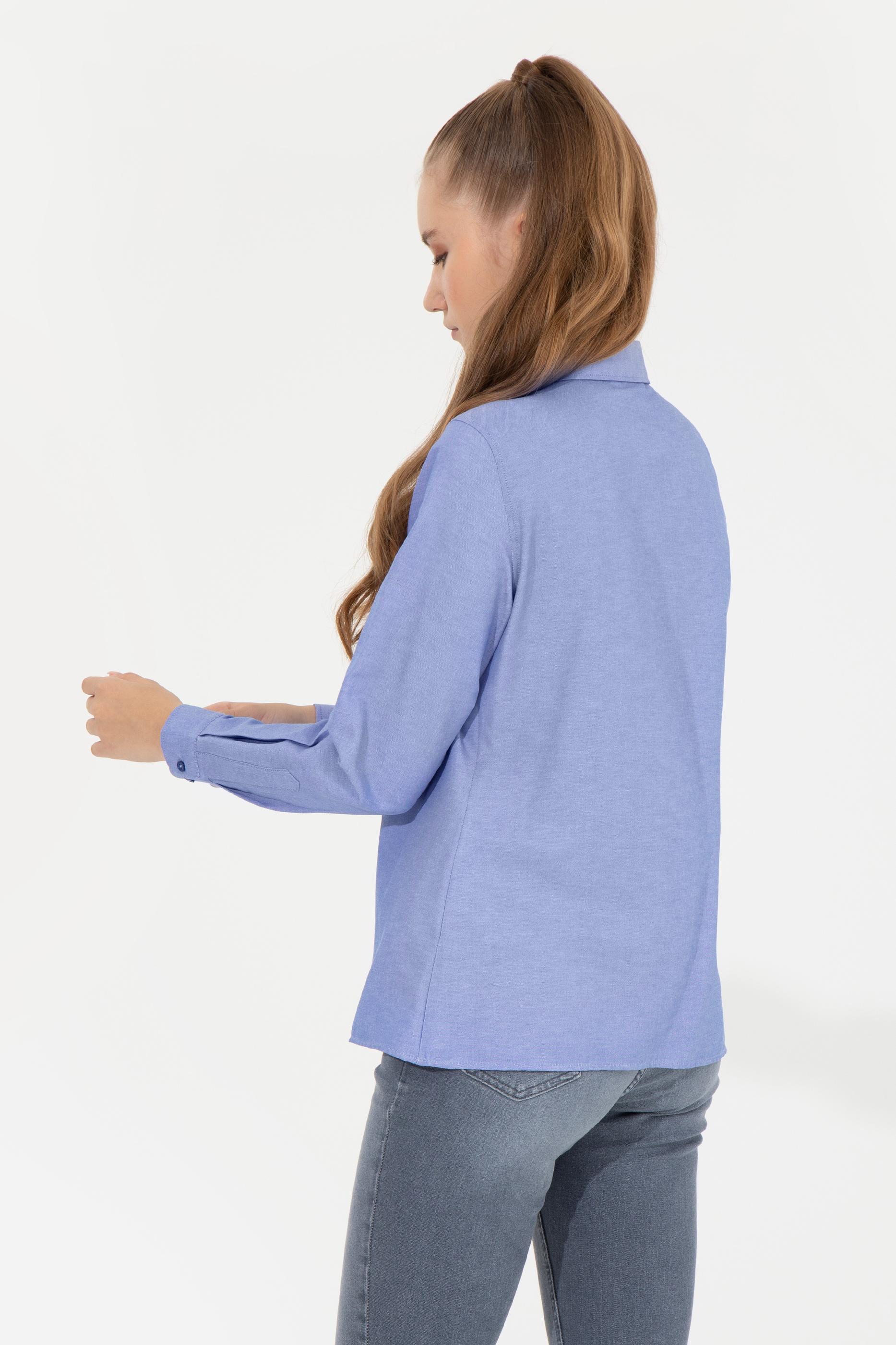 - Kadın Saks Uzun Kollu Basic Gömlek