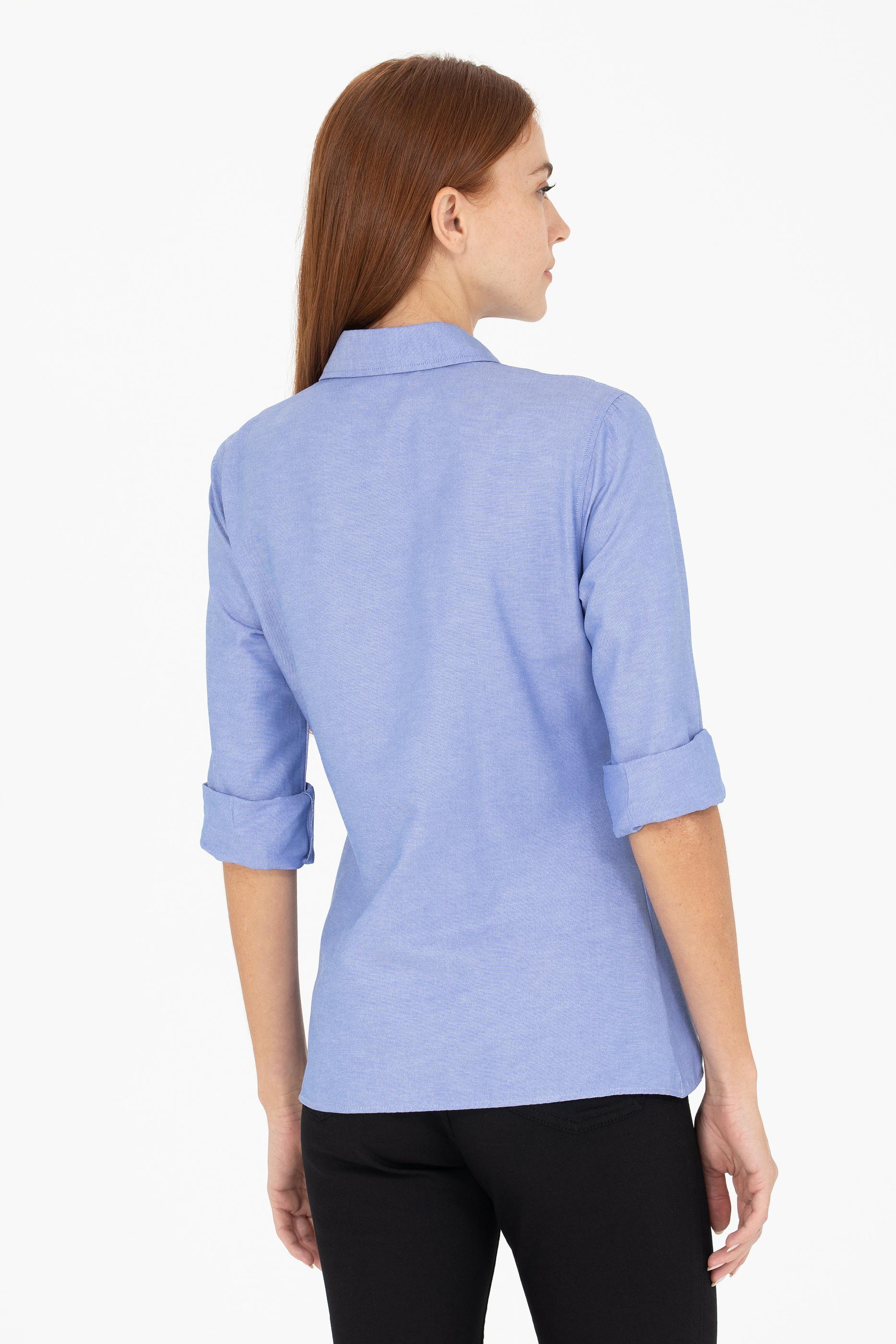 Kadın Saks Uzun Kollu Basic Gömlek - 50266361126