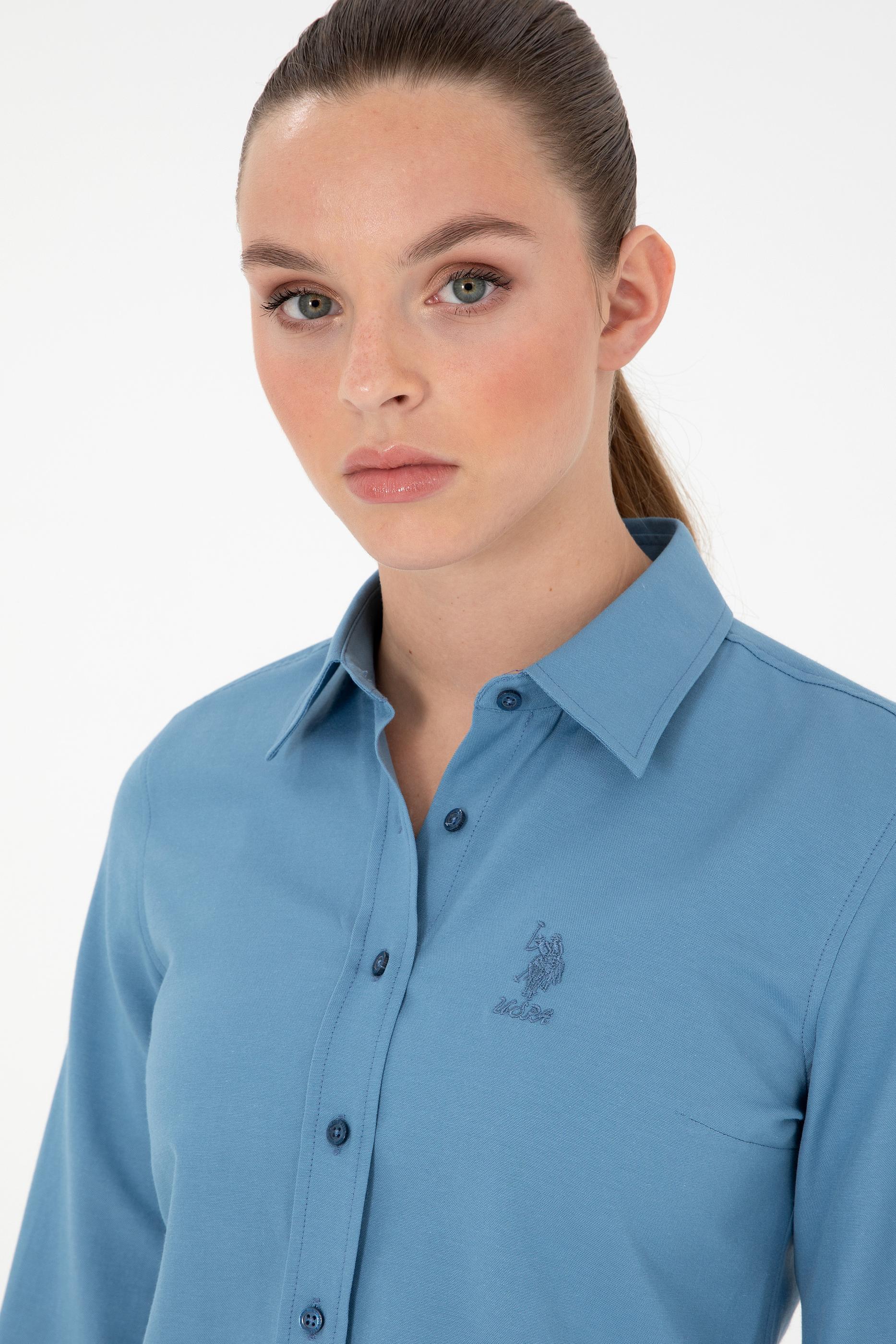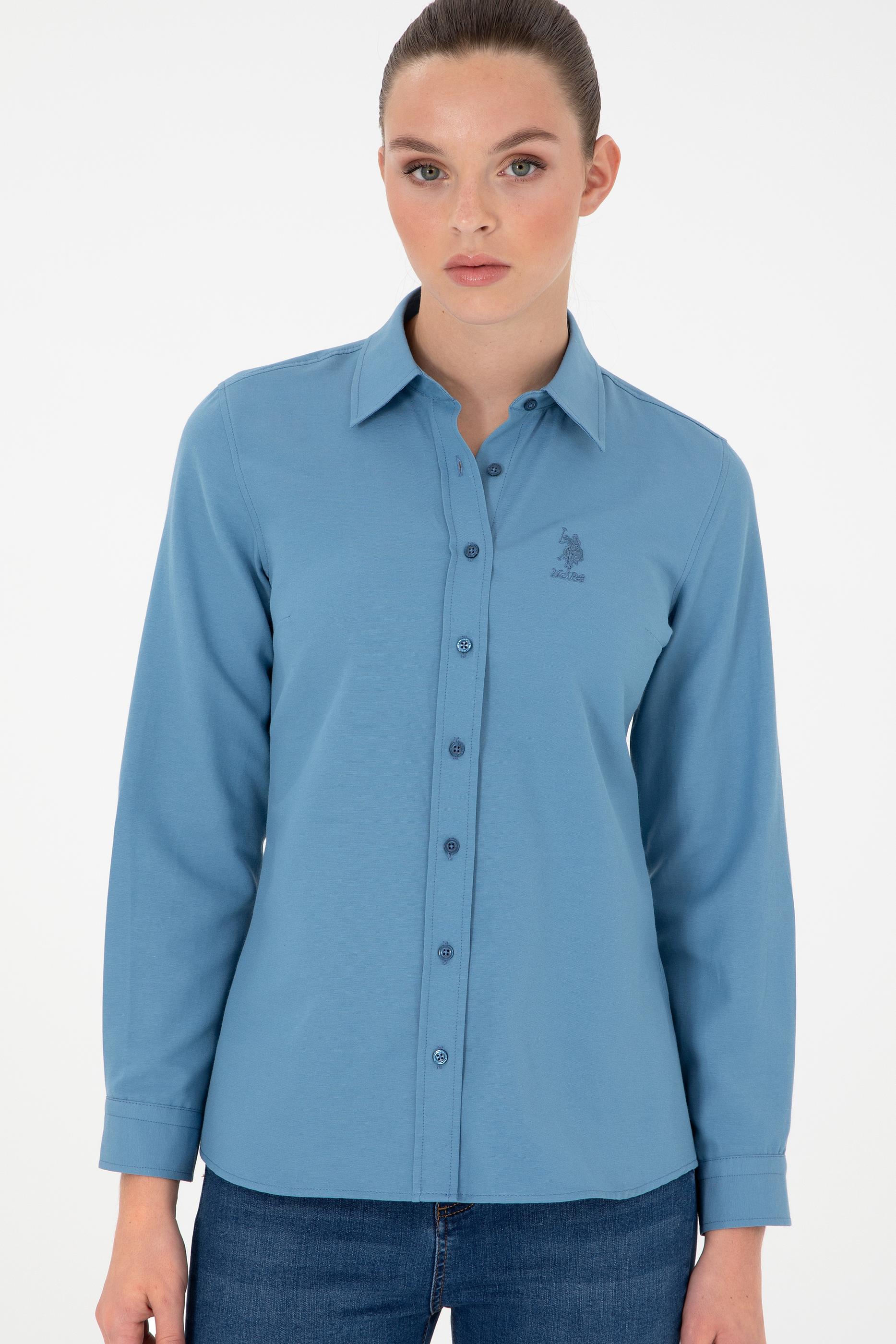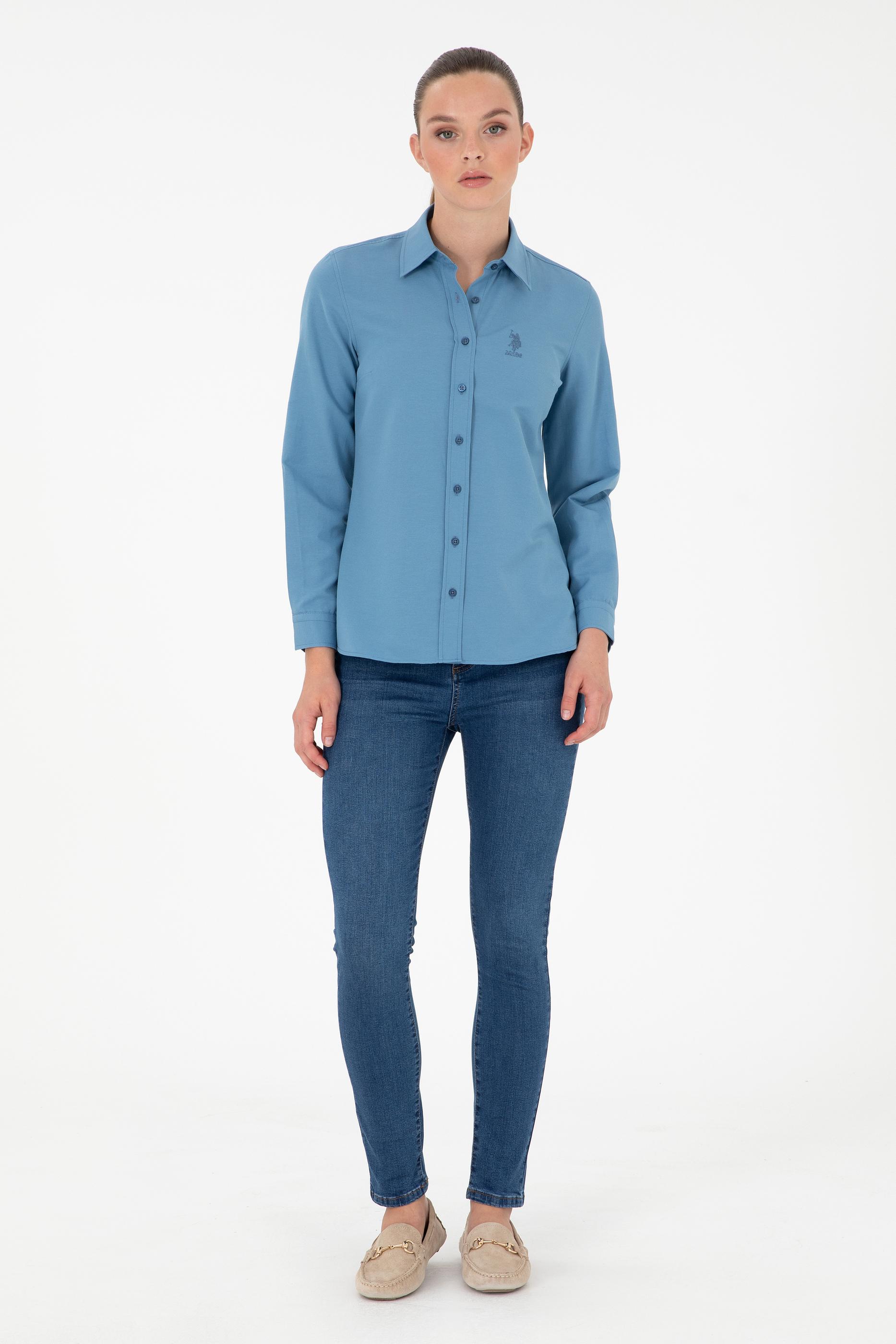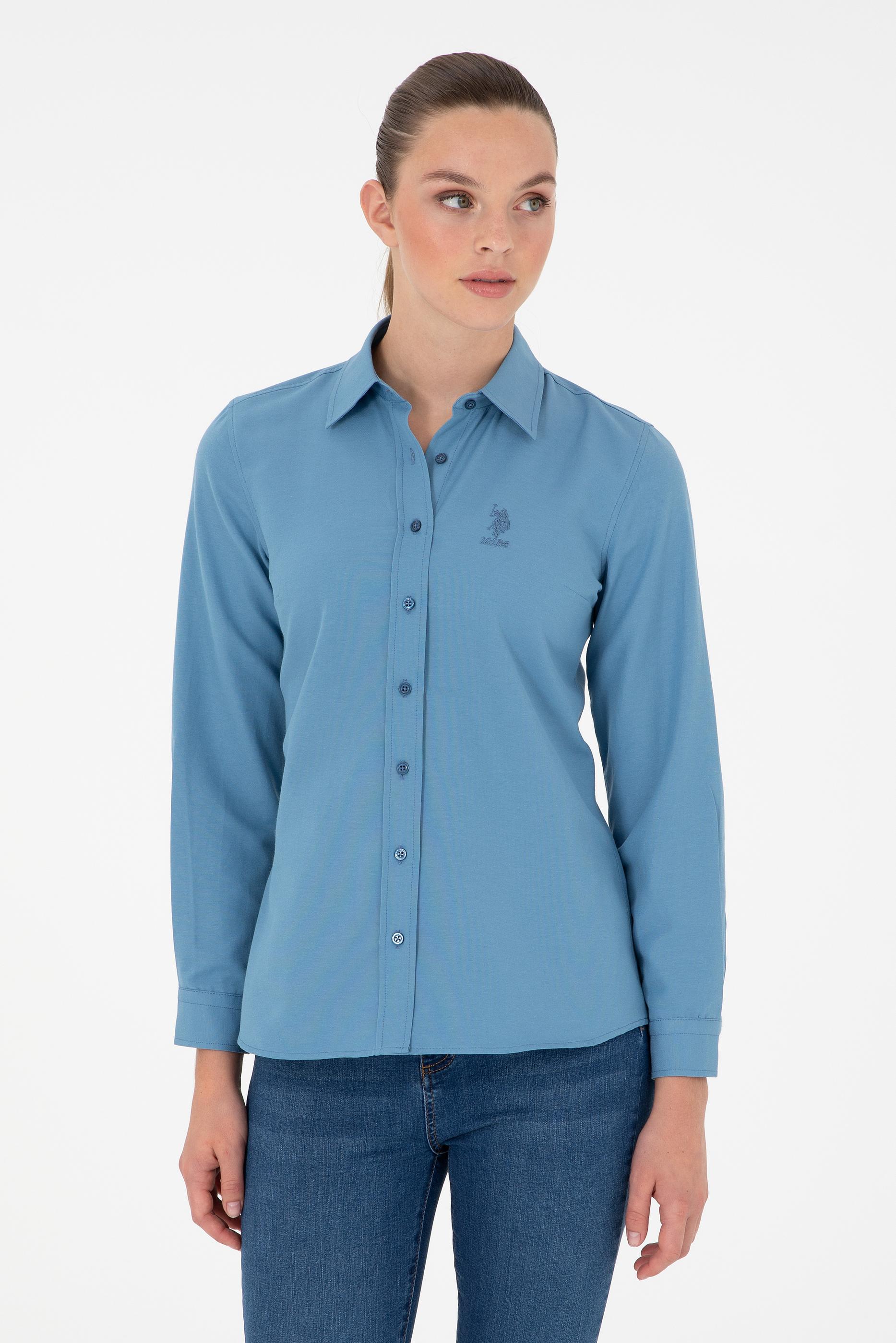 Kadın Saks Uzun Kollu Basic Gömlek