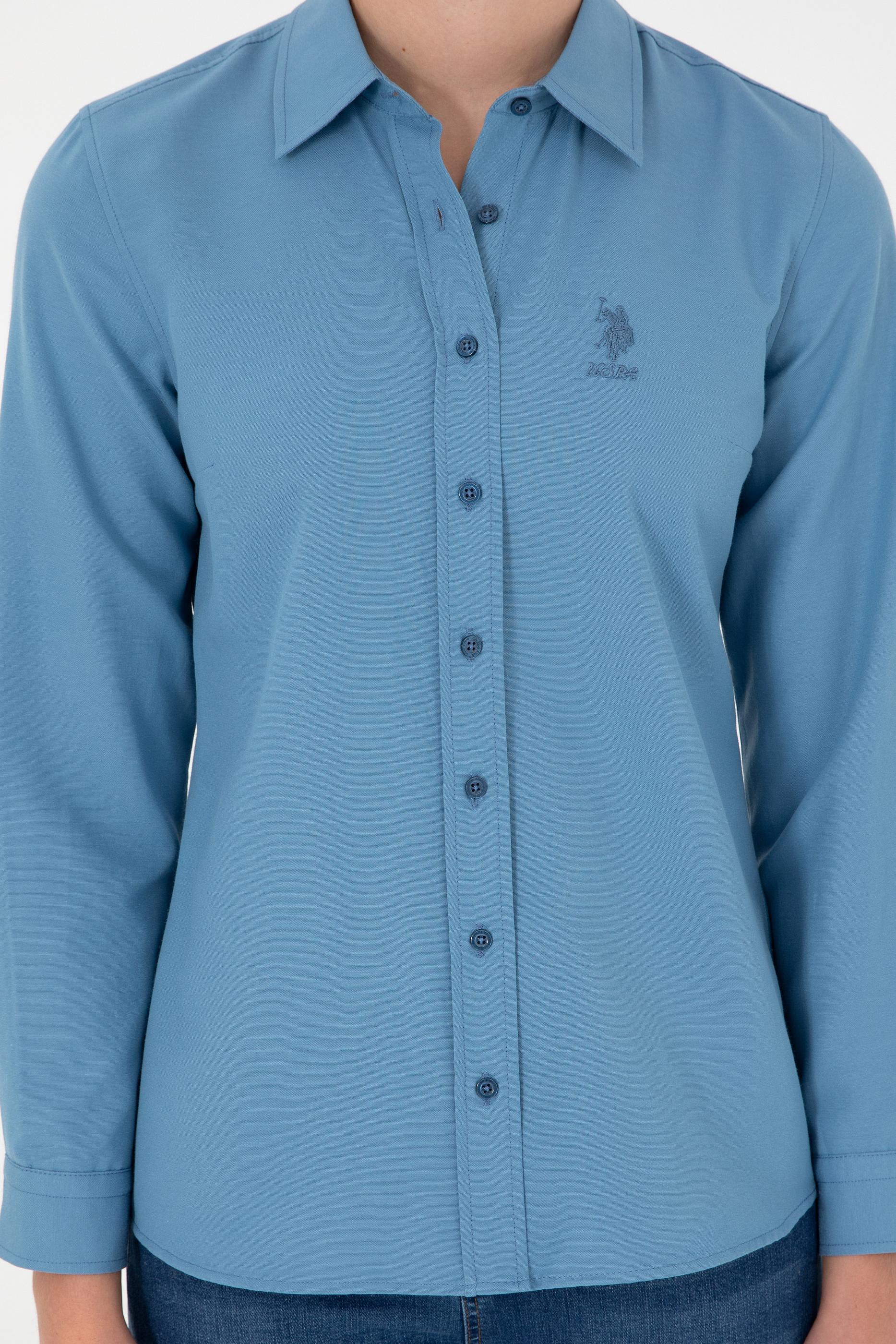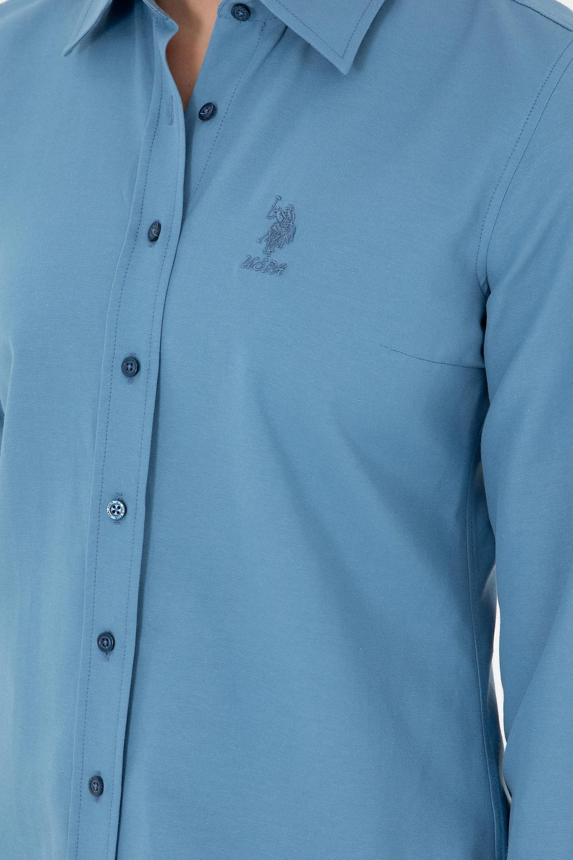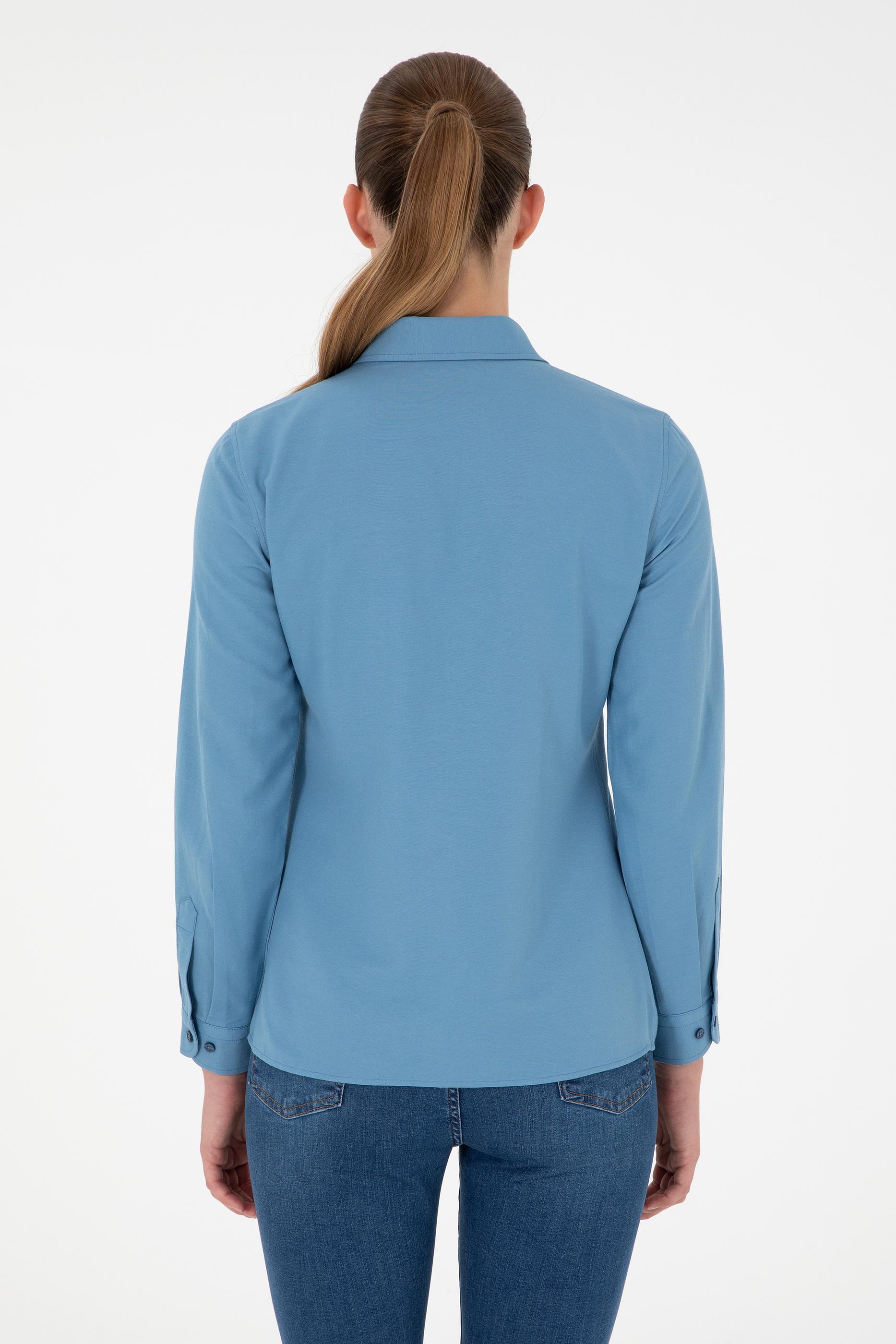 "name": "Kadın Saks Uzun Kollu Basic Gömlek",
