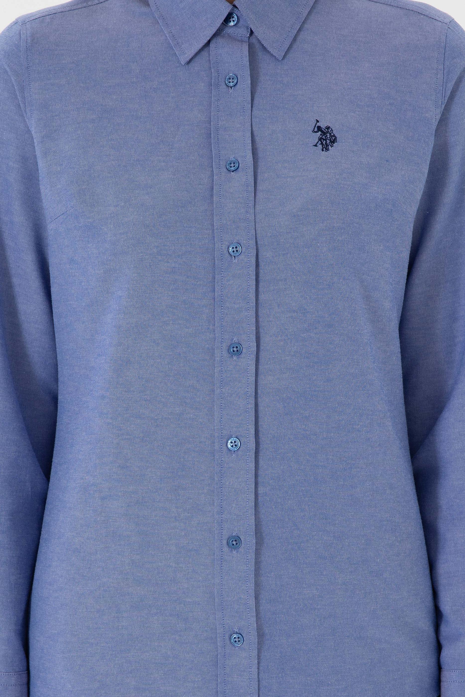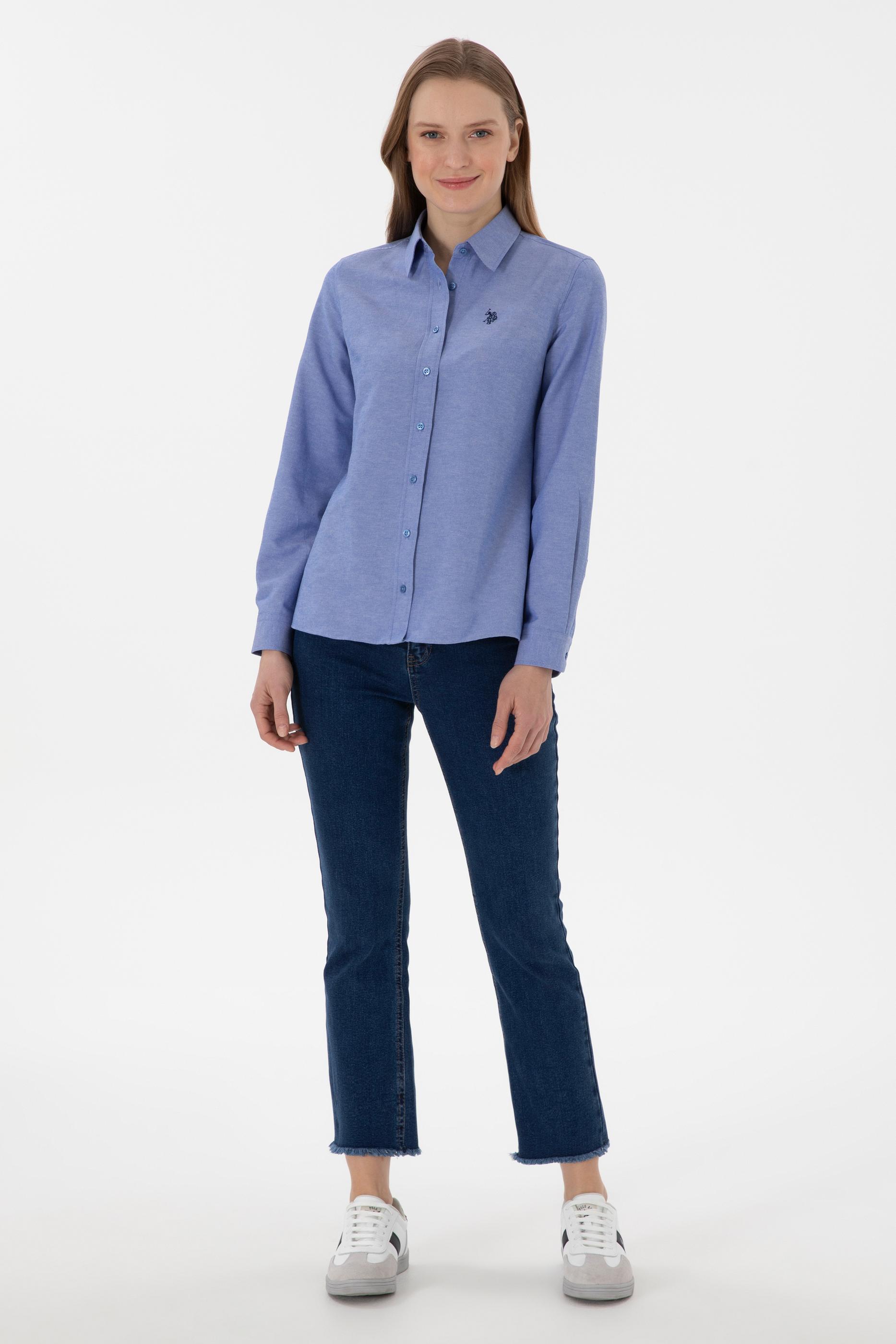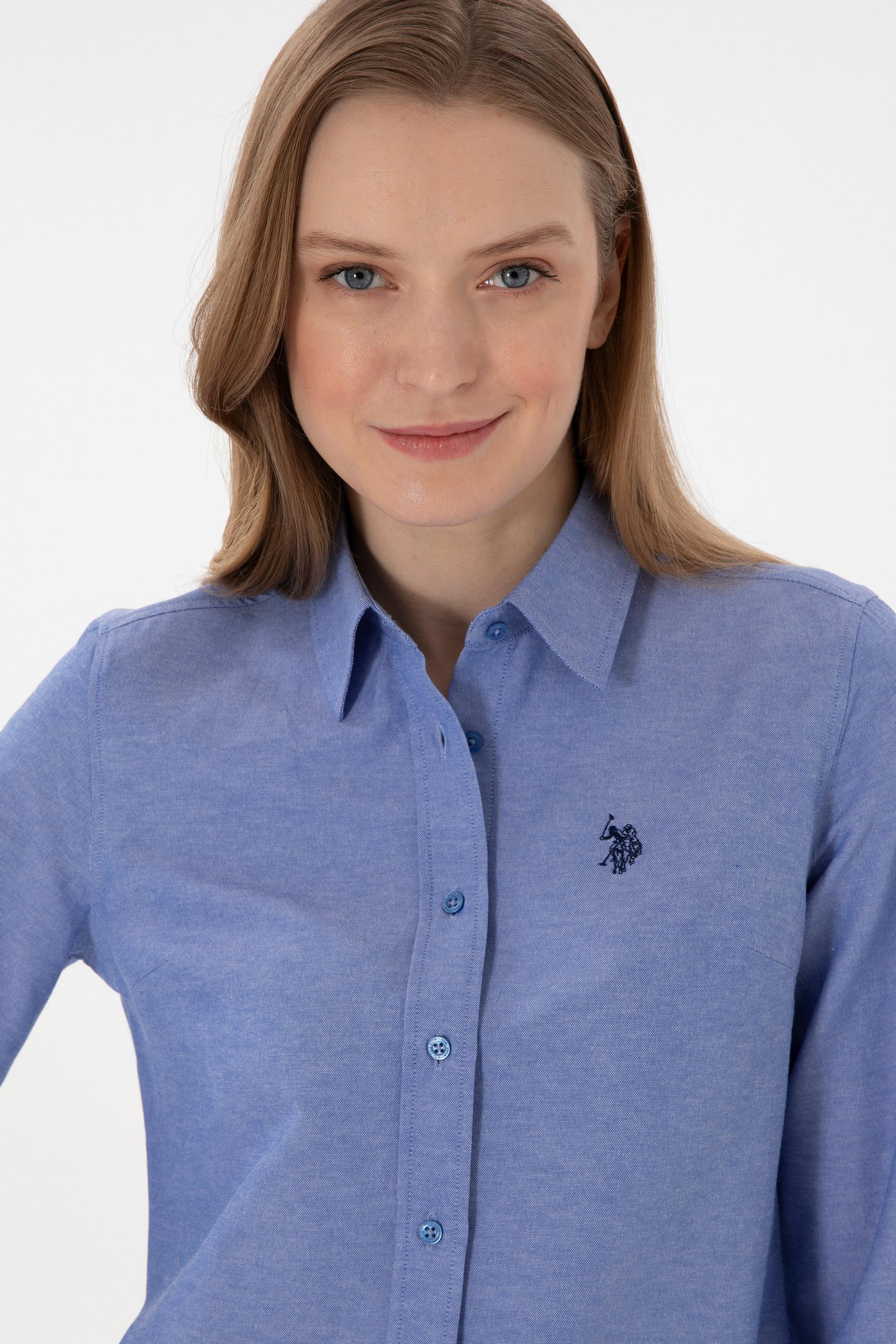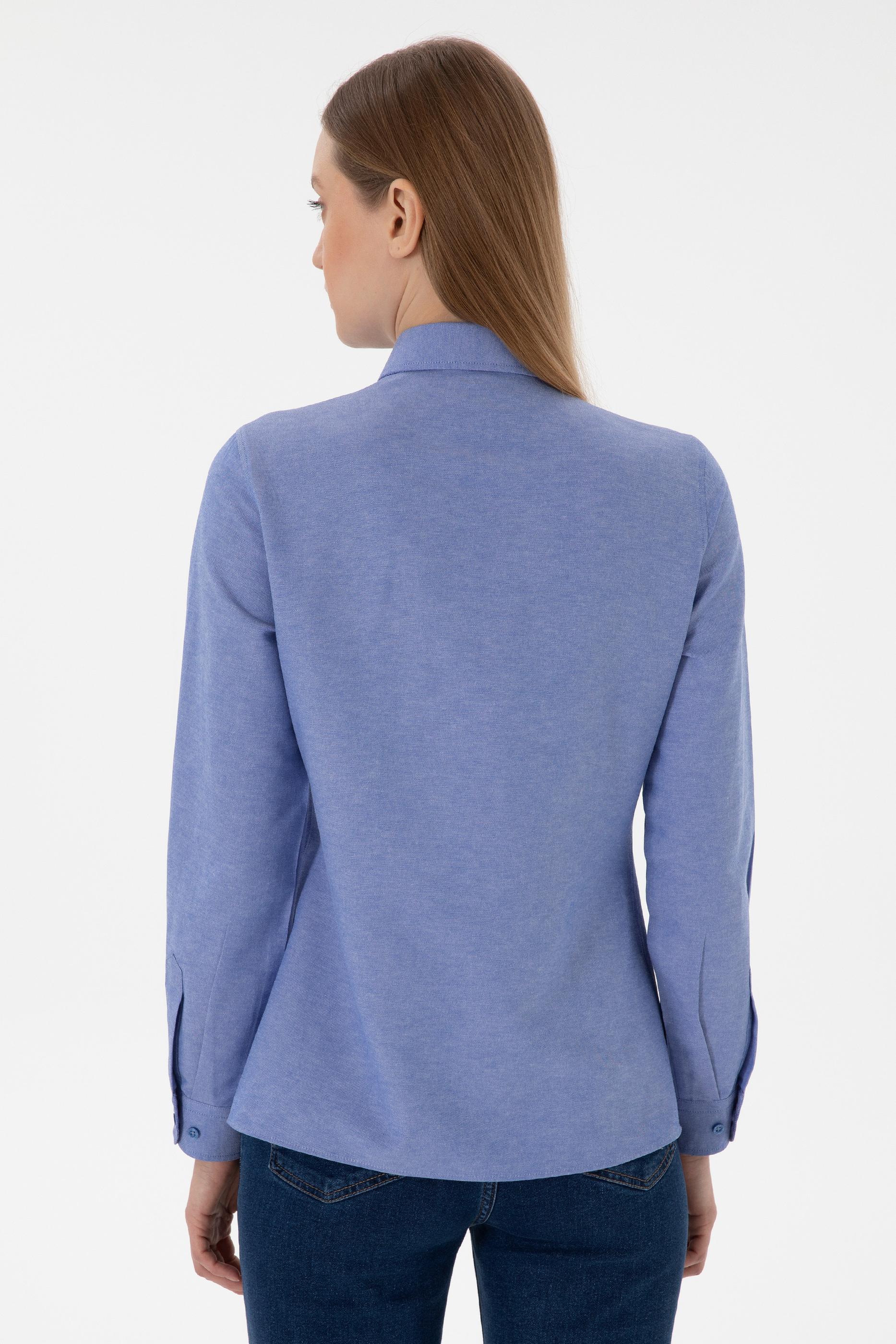 - Kadın Saks Uzun Kollu Basic Gömlek