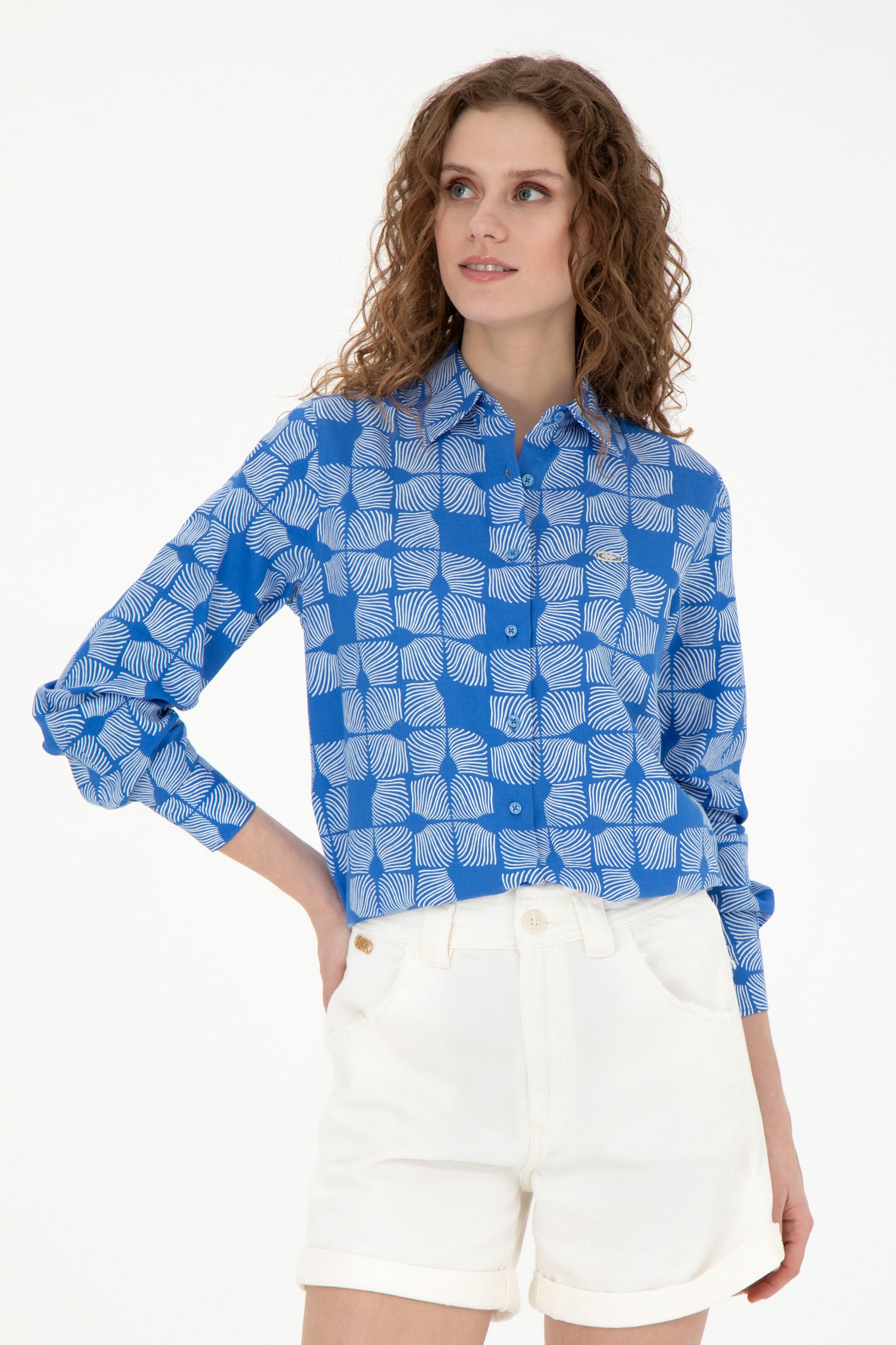 - Kadın Saks Uzun Kollu Gömlek