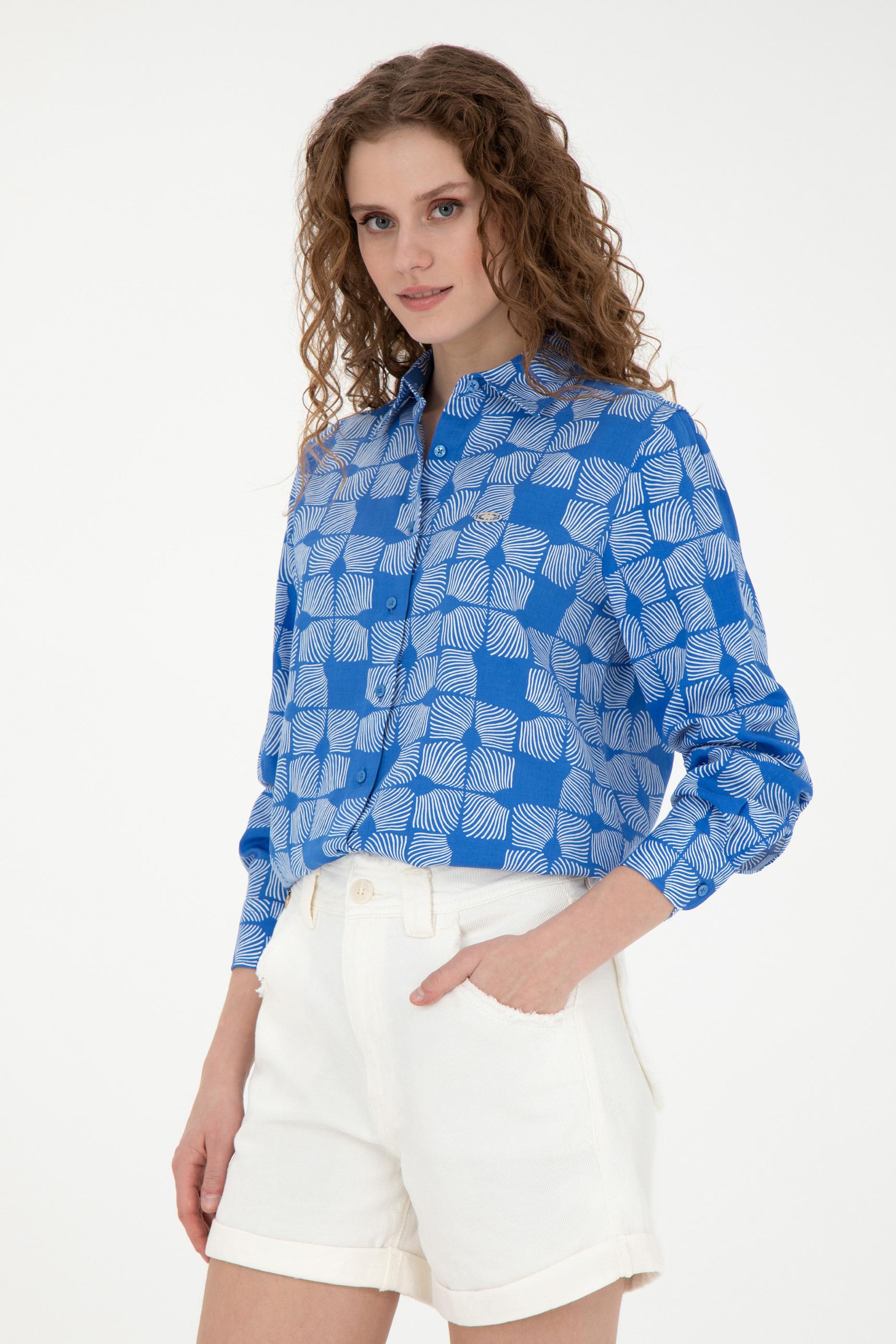 Kadın Saks Uzun Kollu Gömlek
