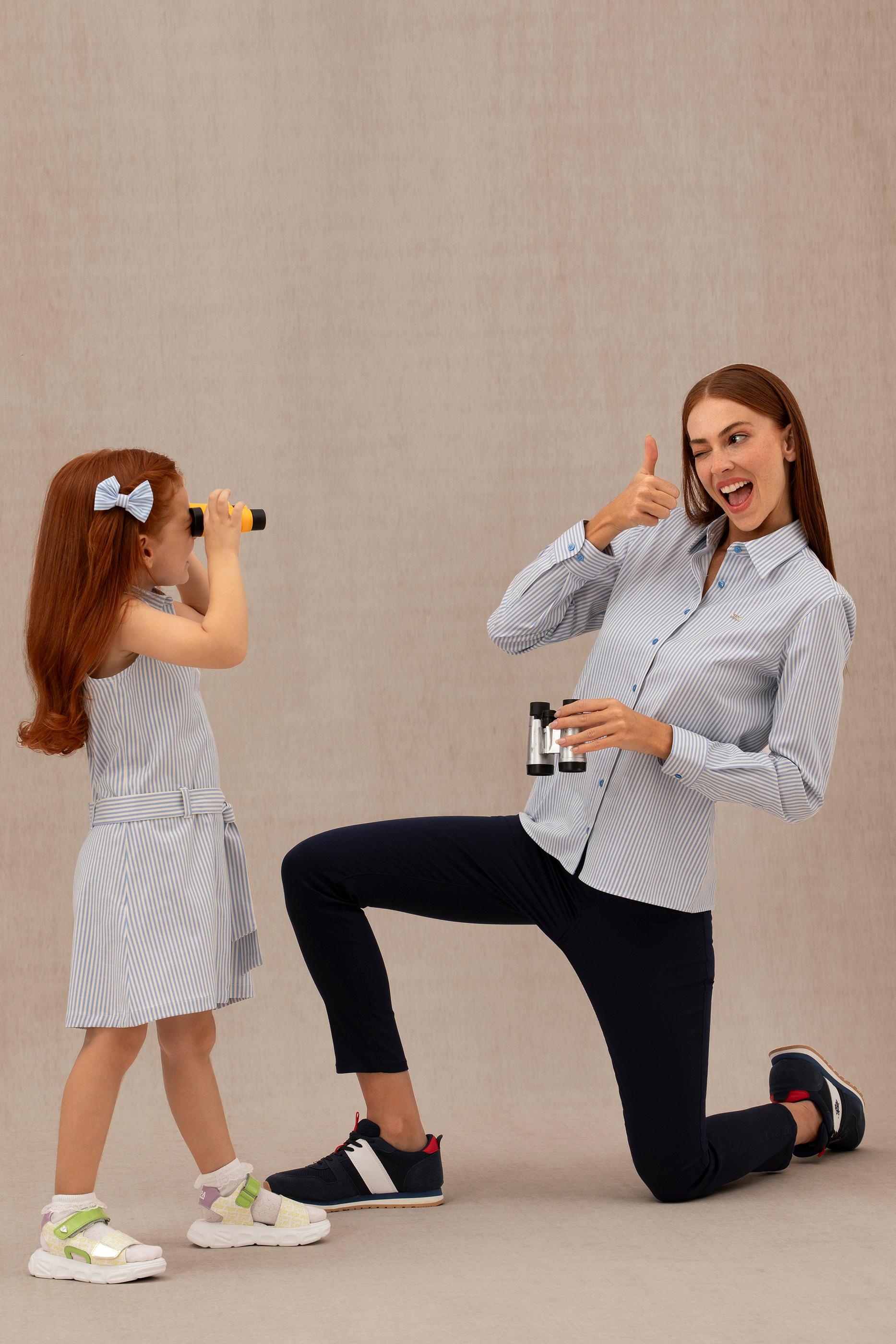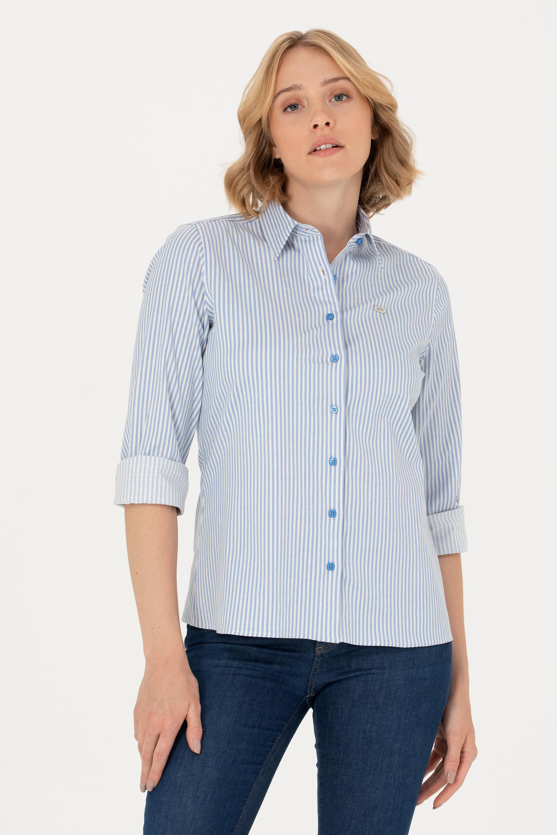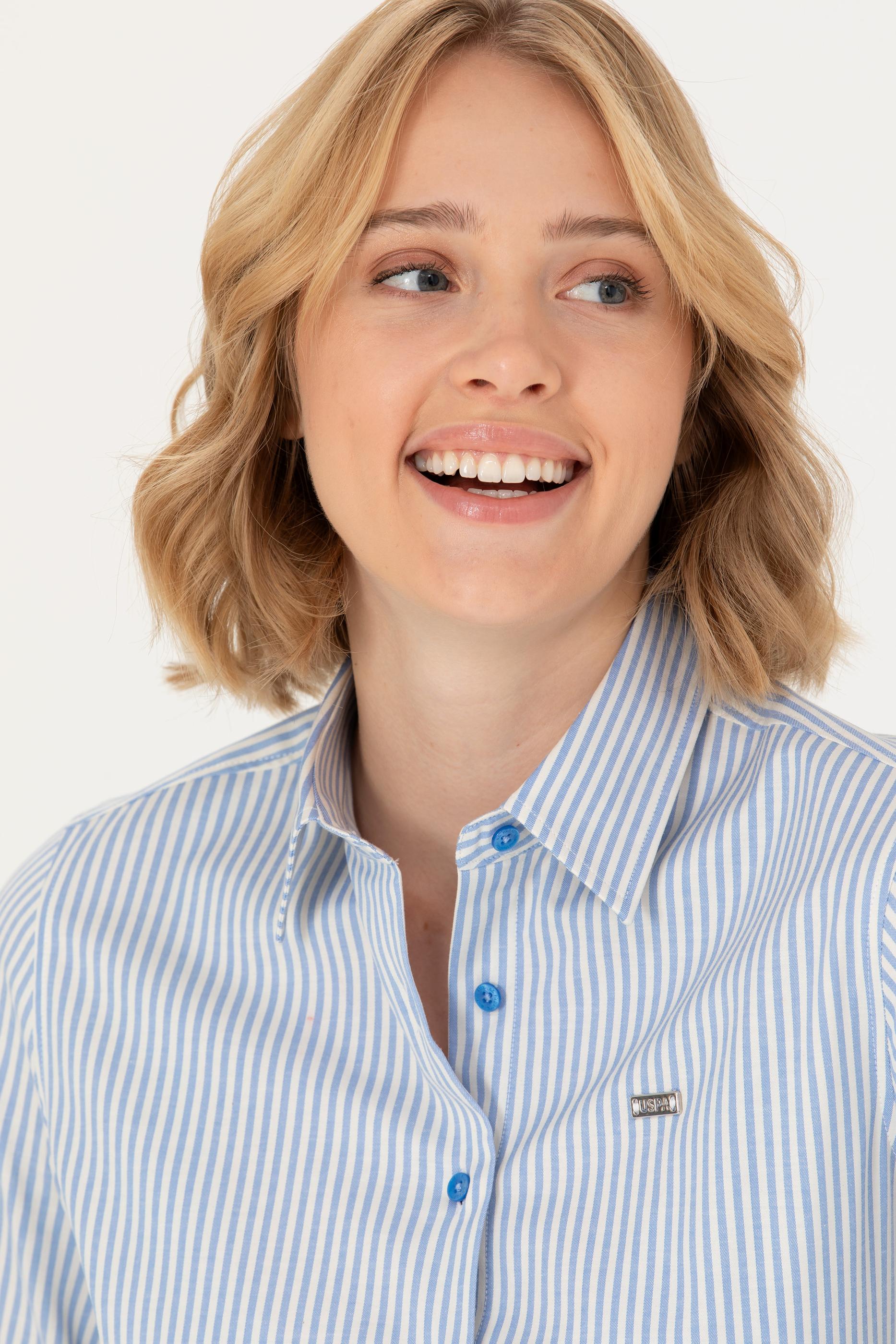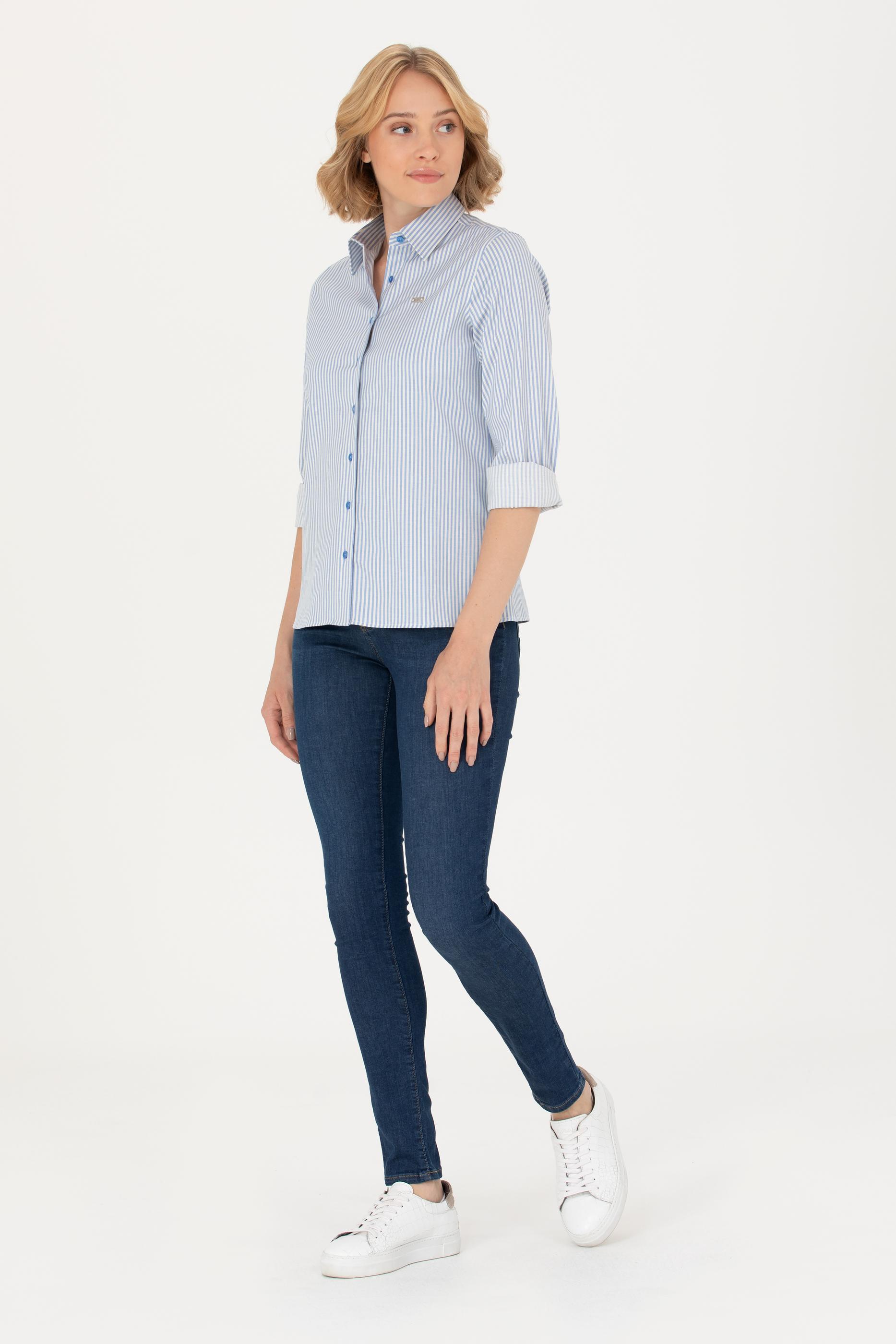 - Kadın Saks Uzun Kollu Gömlek