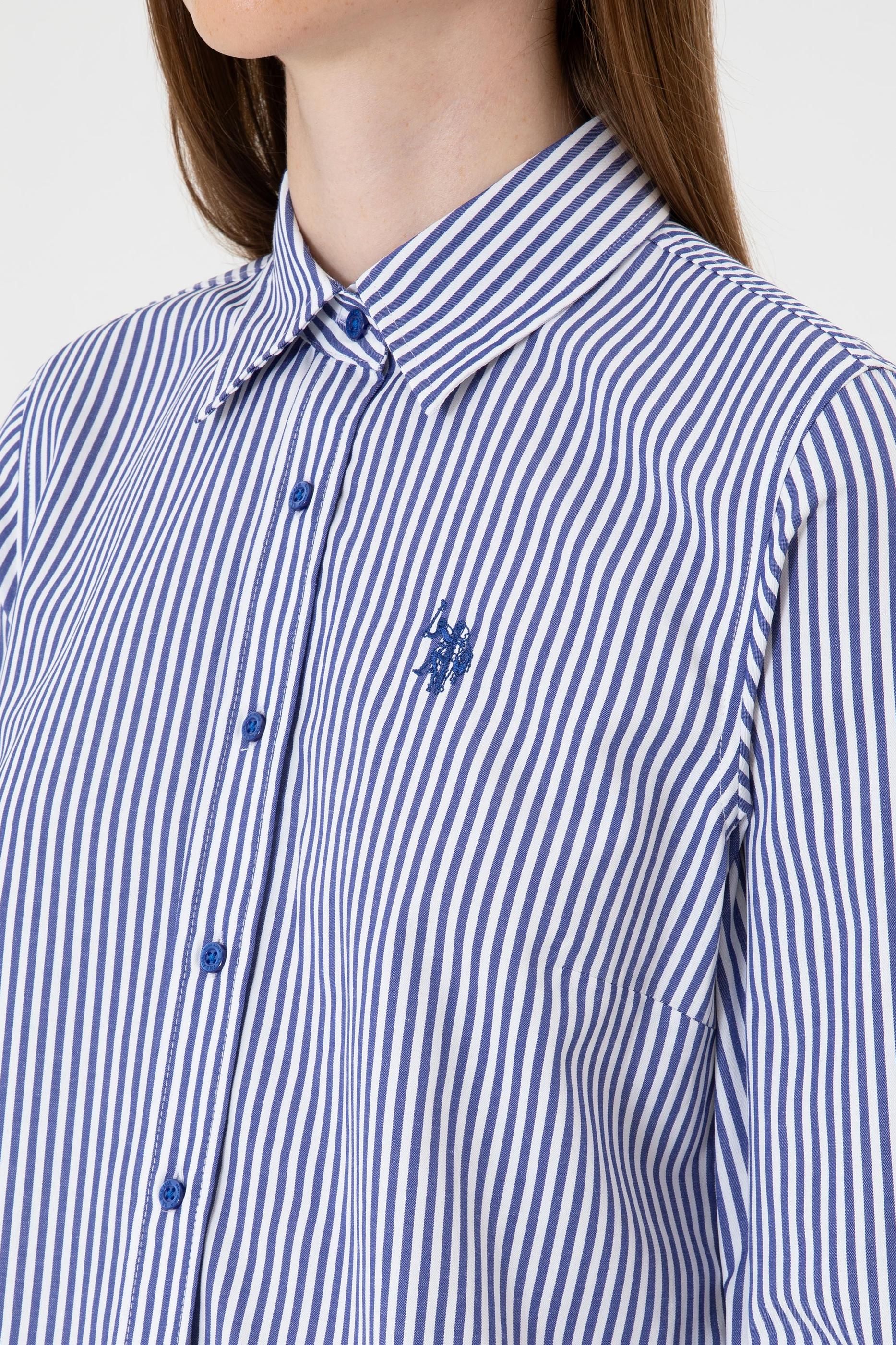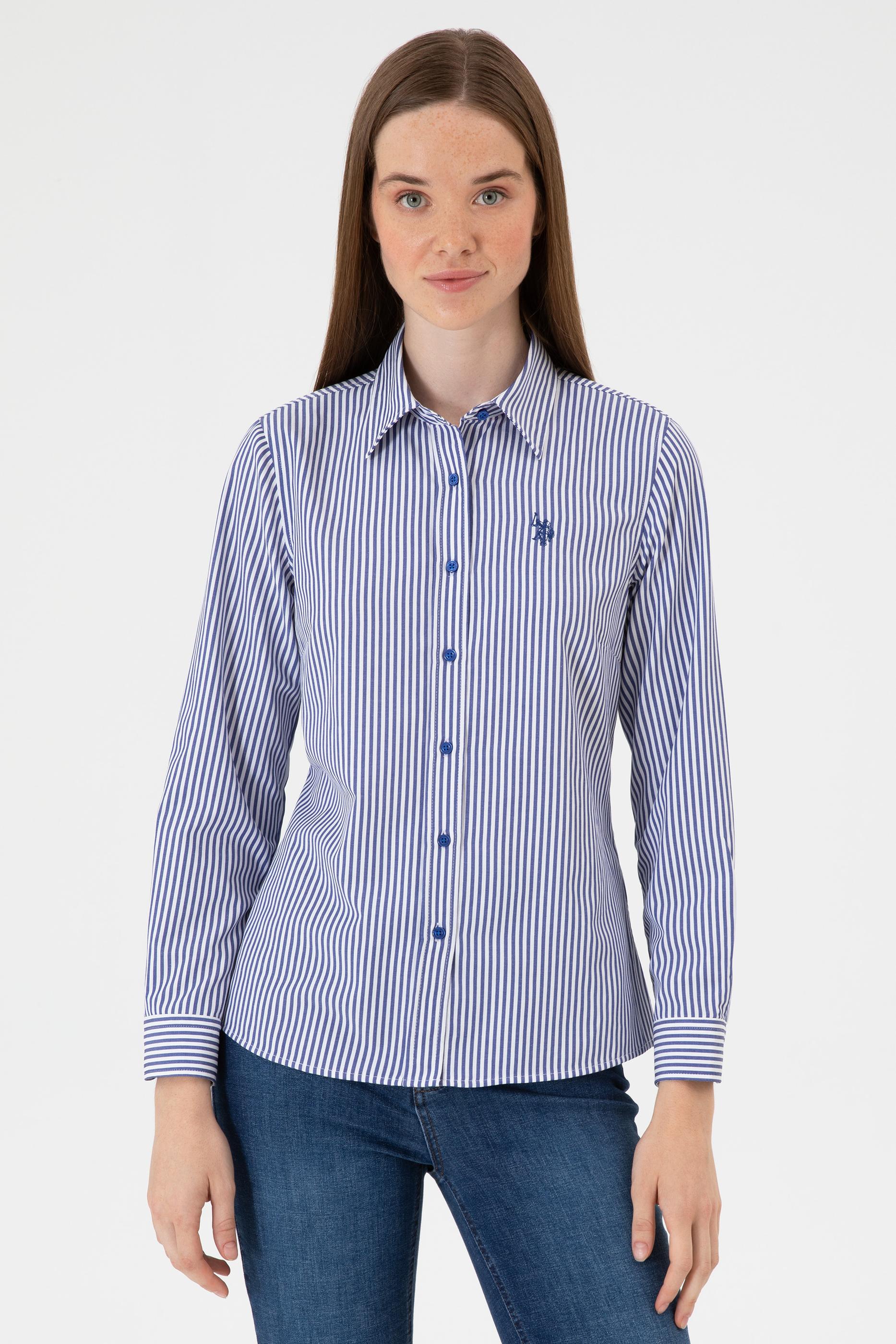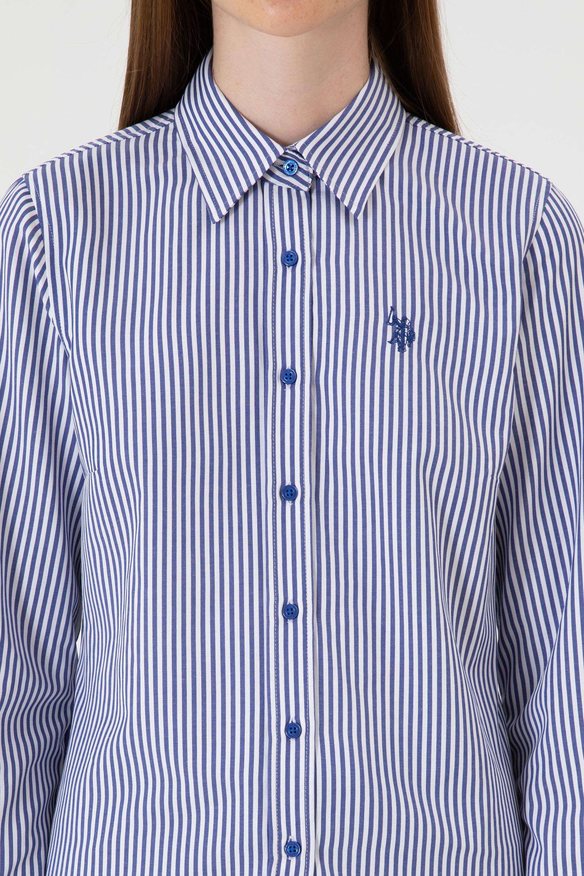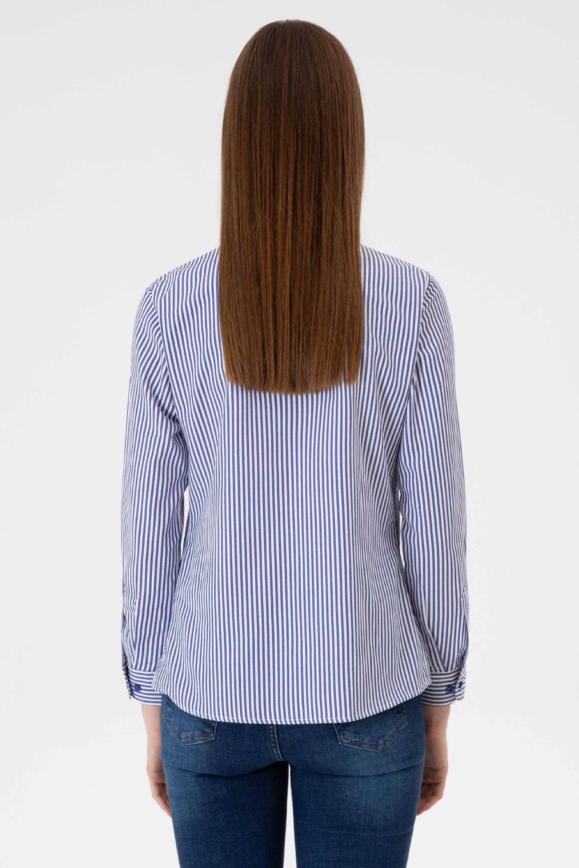 - Kadın Saks Çizgili Uzun Kollu Gömlek