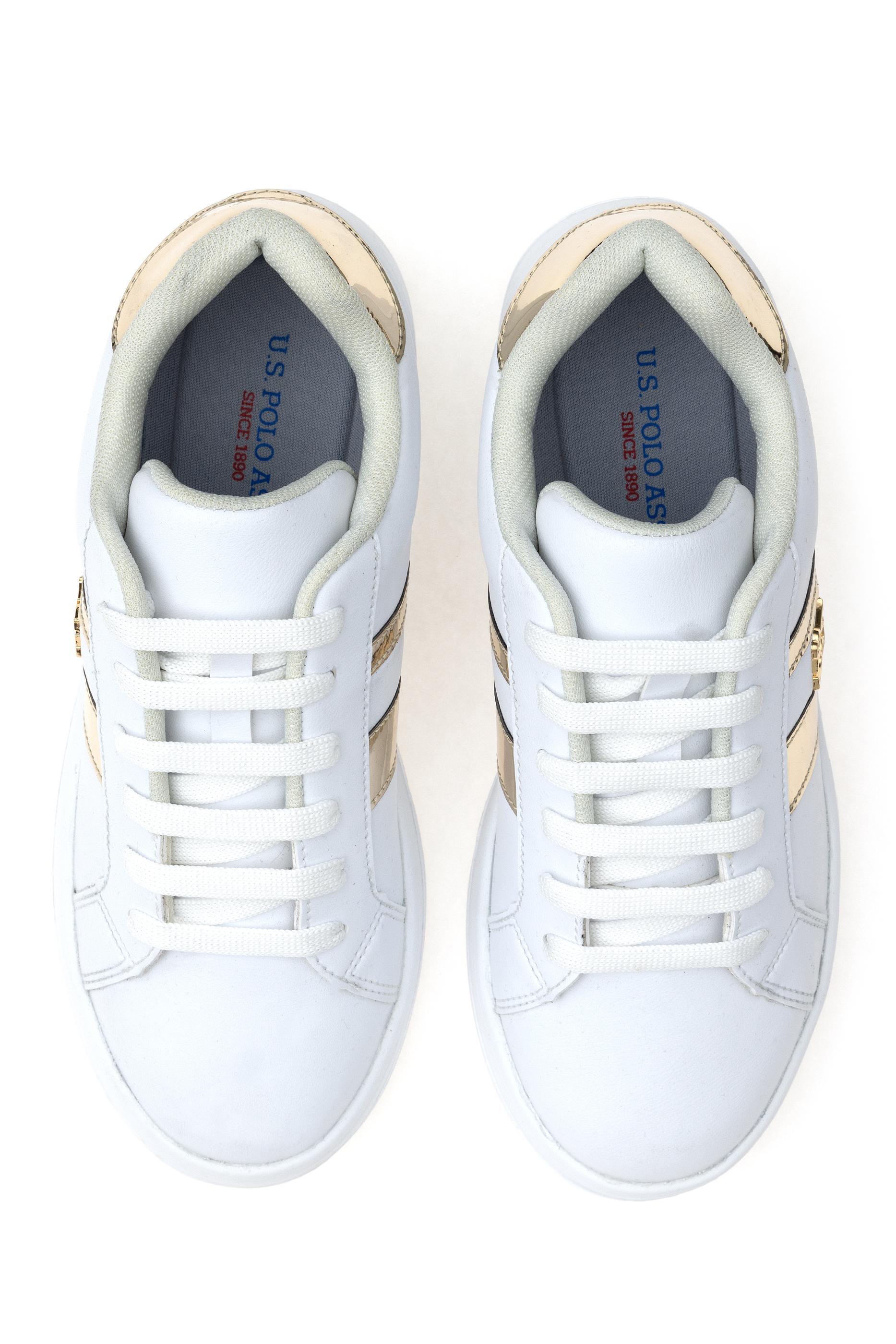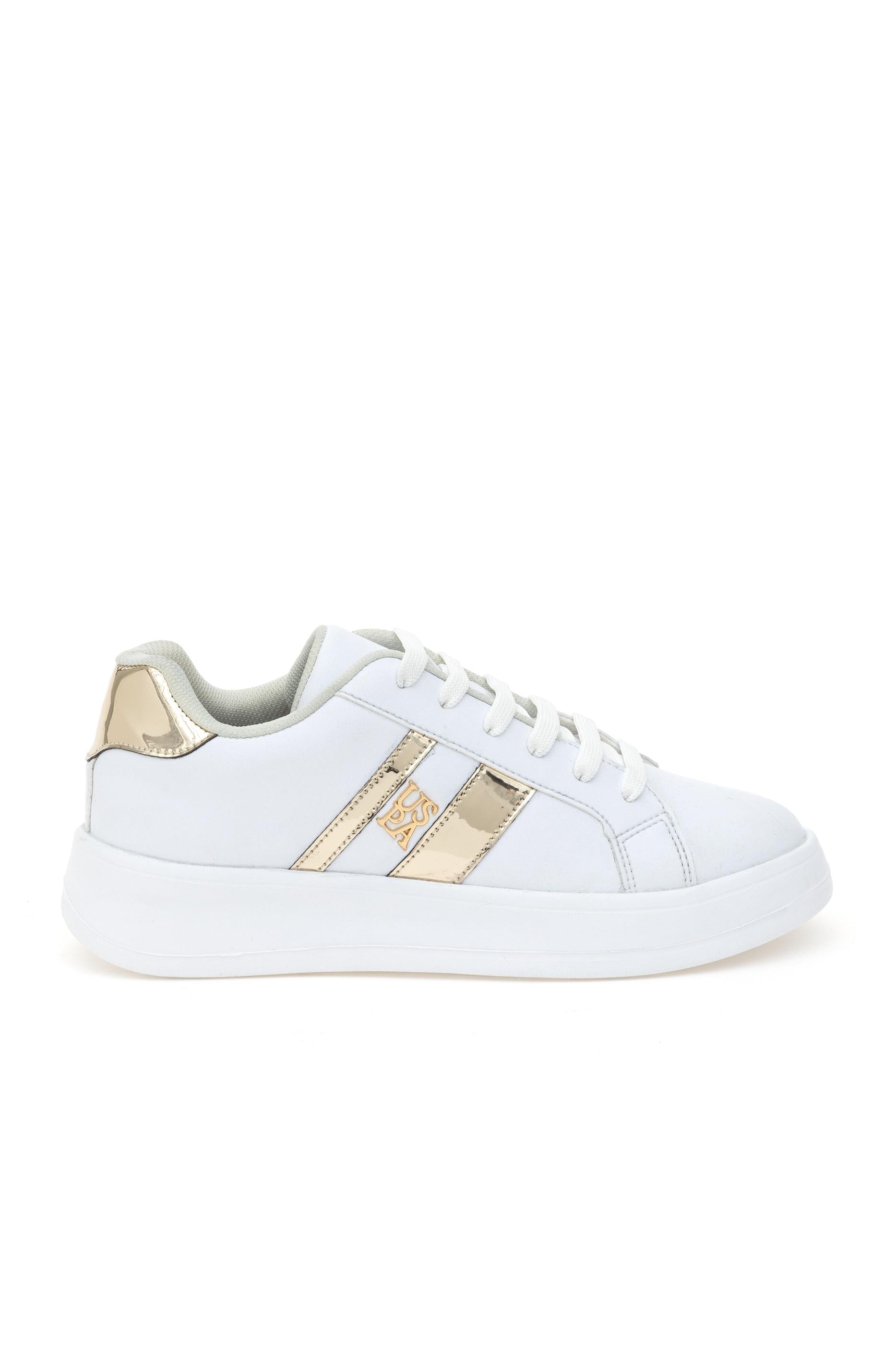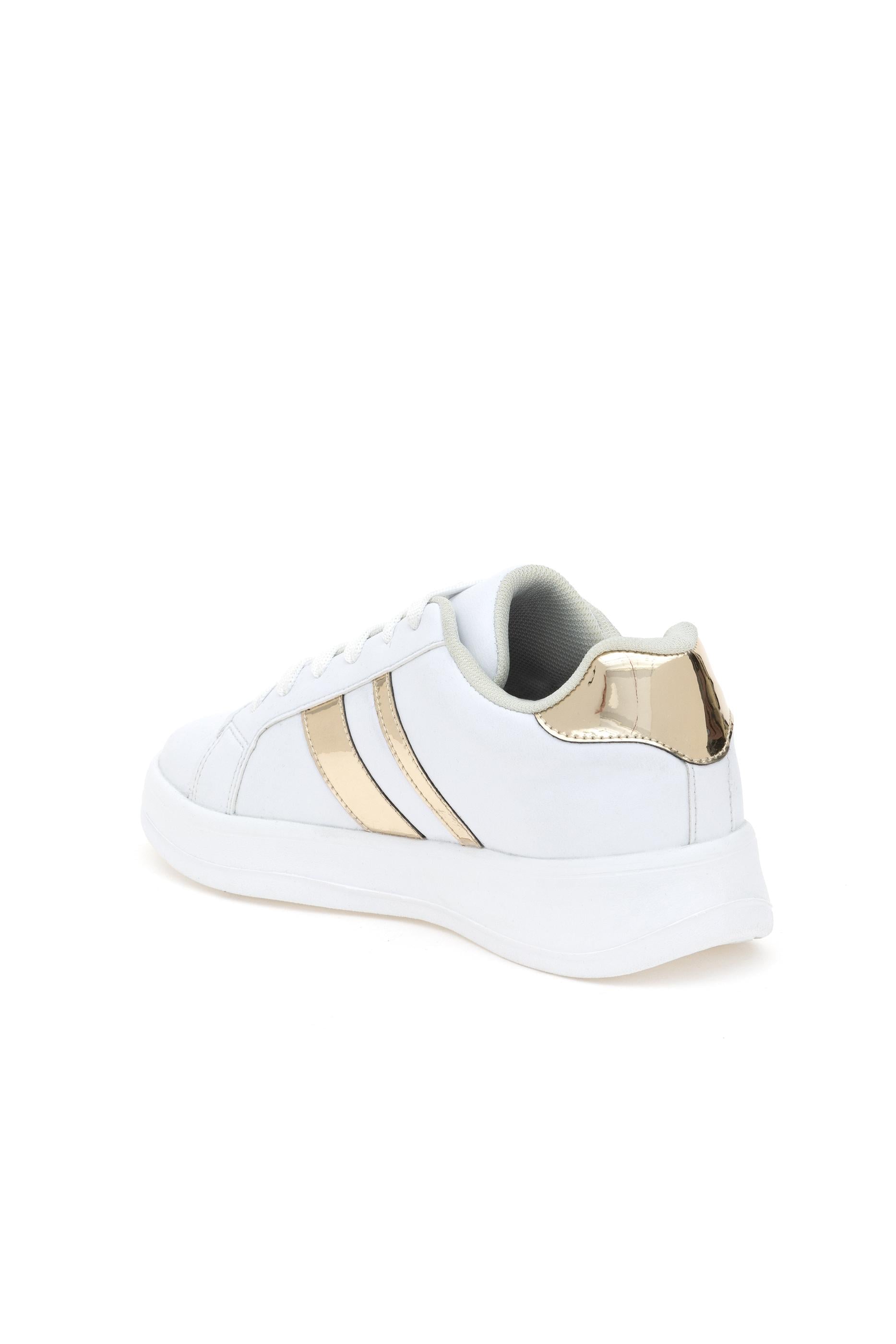 Hafifliği ve şık detaylarıyla dikkat çeken kadın sneaker, beyaz ve altın renk uyumuyla zarif bir görünüm sunar. Günlük kullanımda rahatlık sağlarken, modern tasarımıyla stil sahibi bir duruş kazandırır. Sneaker, yumuşak dokulu üst yüzeyiyle ayağı nazikçe sararak konforlu bir deneyim sunar. Deri görünümlü materyali, dayanıklılığı artırırken pürüzsüz bir his bırakır. Bağcıklı yapısı sayesinde ayağa tam uyum sağlayarak destekleyici bir yapı sunar. Yan kısımlarda yer alan altın rengi şerit detayları, modeli hareketlendirerek dinamik bir tarz oluşturur. Aynı zamanda küçük metal logo detayı, tasarıma şık bir dokunuş ekler. Taban kısmı, yürüyüş sırasında dengeyi koruyan hafif ve esnek bir yapıya sahiptir. Kalın ve yumuşak orta taban, ayağı yormadan uzun süreli konfor sunar. Beyaz renkli dış tabanı, zemin tutuşunu artıran özel bir malzemeyle üretilerek güvenli bir kullanım sağlar. İç astarı ise nefes alabilen bir yapıya sahip olup, gün boyu ferahlık hissi sunar. Altın detaylarla hareketlendirilen sneaker modeli, sade ama etkileyici bir tarz arayanlar için ideal bir seçenek sunar. Günlük kombinlerden sportif şıklığa kadar geniş bir kullanım alanına uyum sağlayarak, her adımda konfor ve estetik bir denge oluşturur.