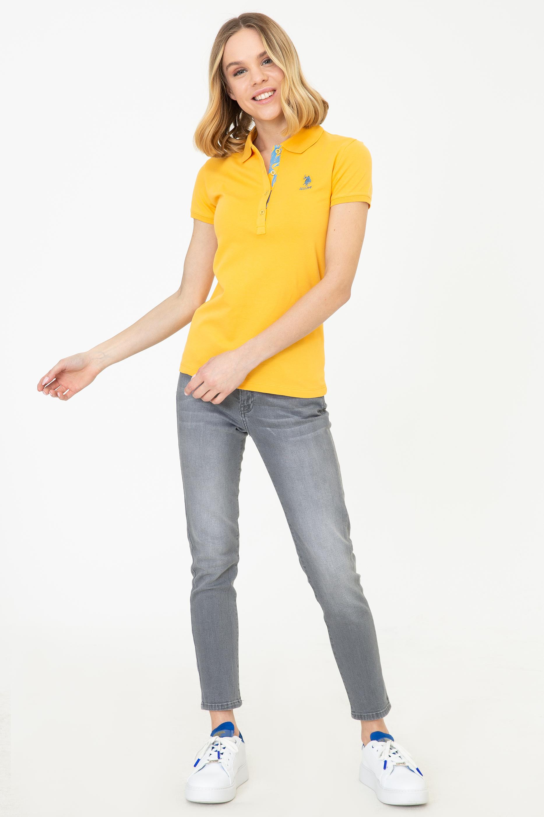 Kadın Sarı Basic Polo Yaka Tişört