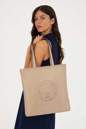 U.S. Polo Assn. altın kadın omuz çantası, sade tasarımı ve geniş iç hacmiyle günlük hayatın temposuna mükemmel uyum sağlar. Hafif ve yumuşak yapılı kumaşı sayesinde rahat taşınabilirken, omuz askıları ideal uzunluğuyla konfor sunar. Mat yüzey üzerinde yer alan kabartmalı büyük logo detayı, sadelikten ödün vermeden marka stilini yansıtır. Dosya, kitap, laptop gibi eşyalar için ideal alan sunan bu çanta; işe, alışverişe ya da hafta sonu programlarına eşlik edecek modern ve zamansız bir tamamlayıcıdır.