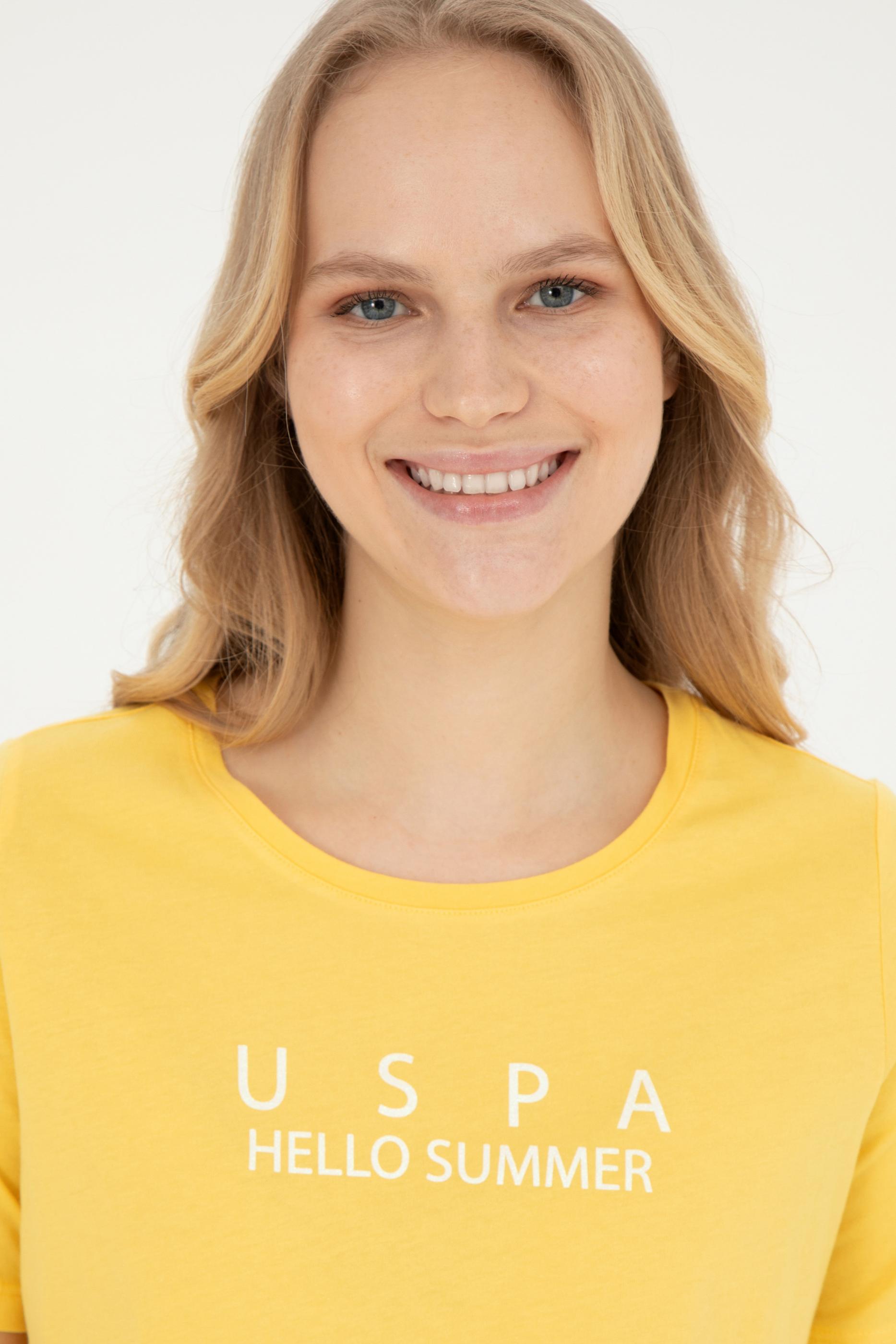 Kadın Sarı Bisiklet Yaka Tişört