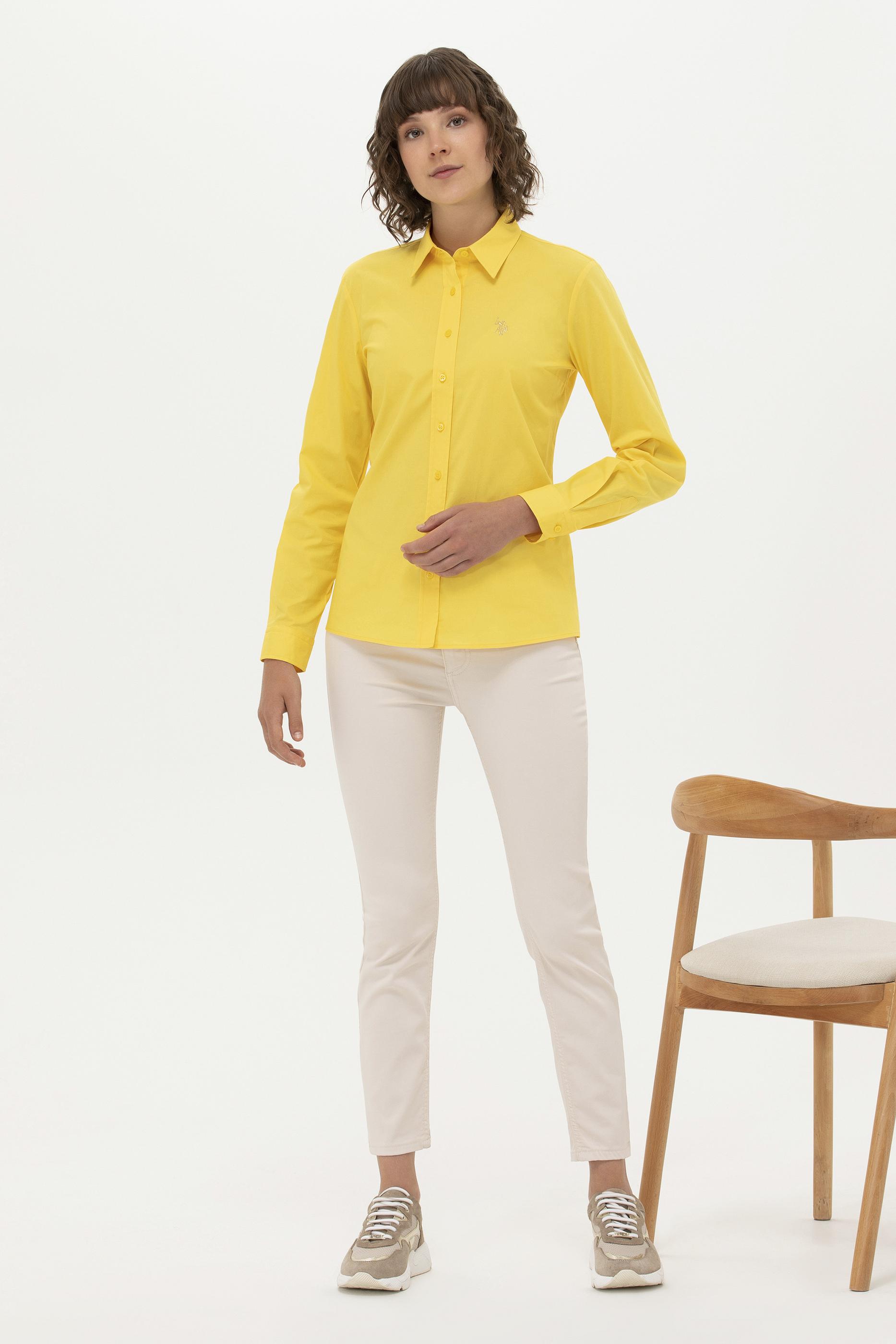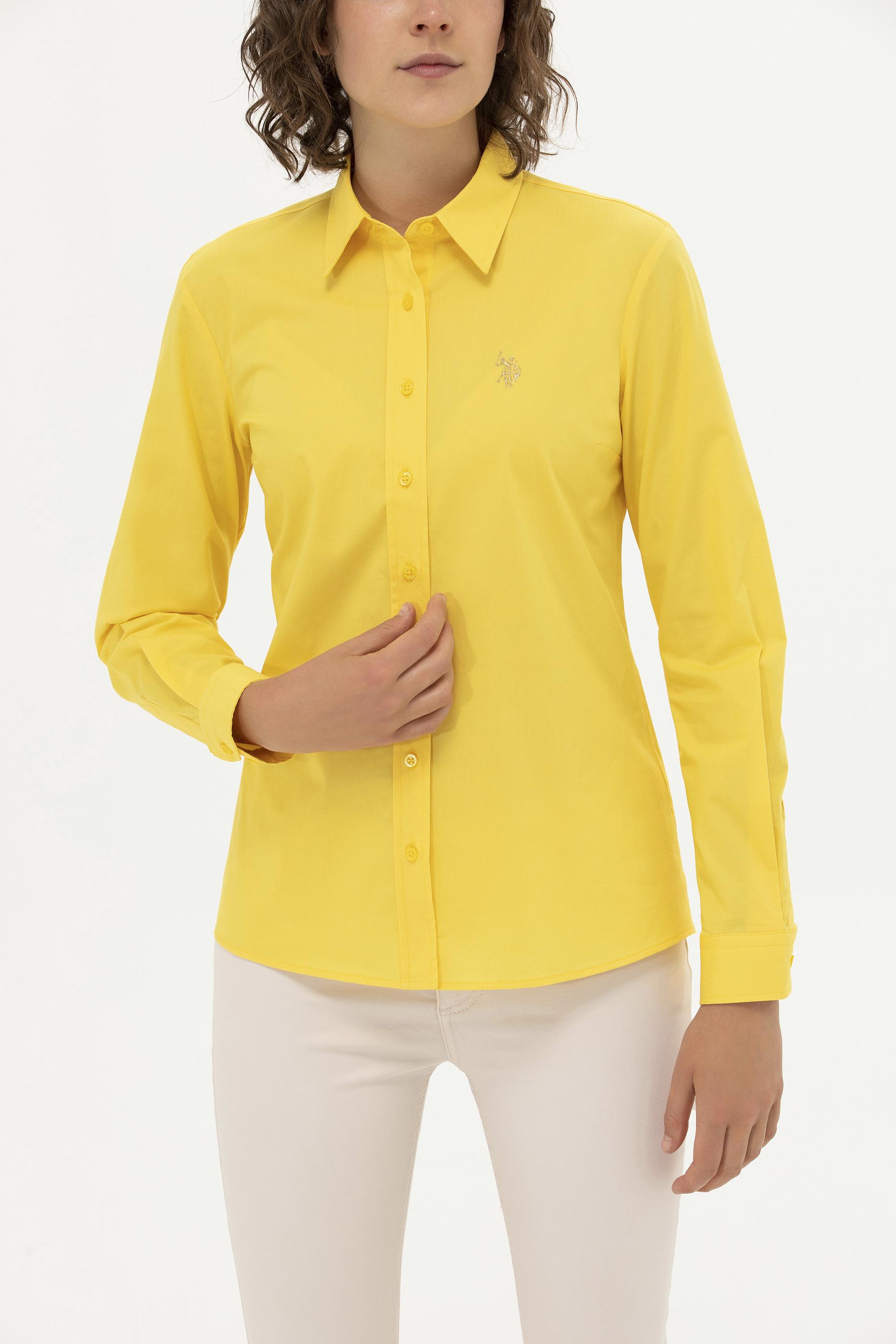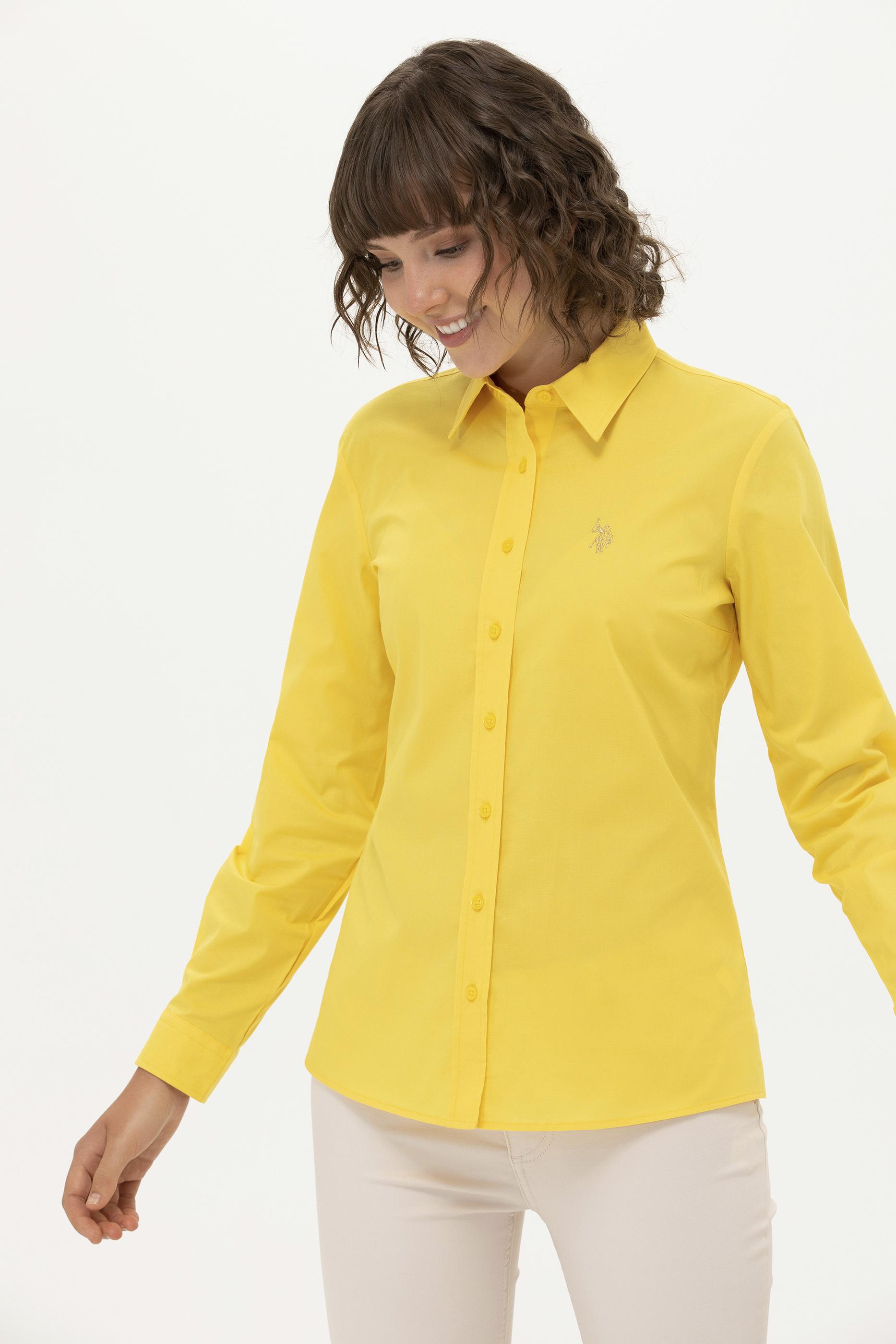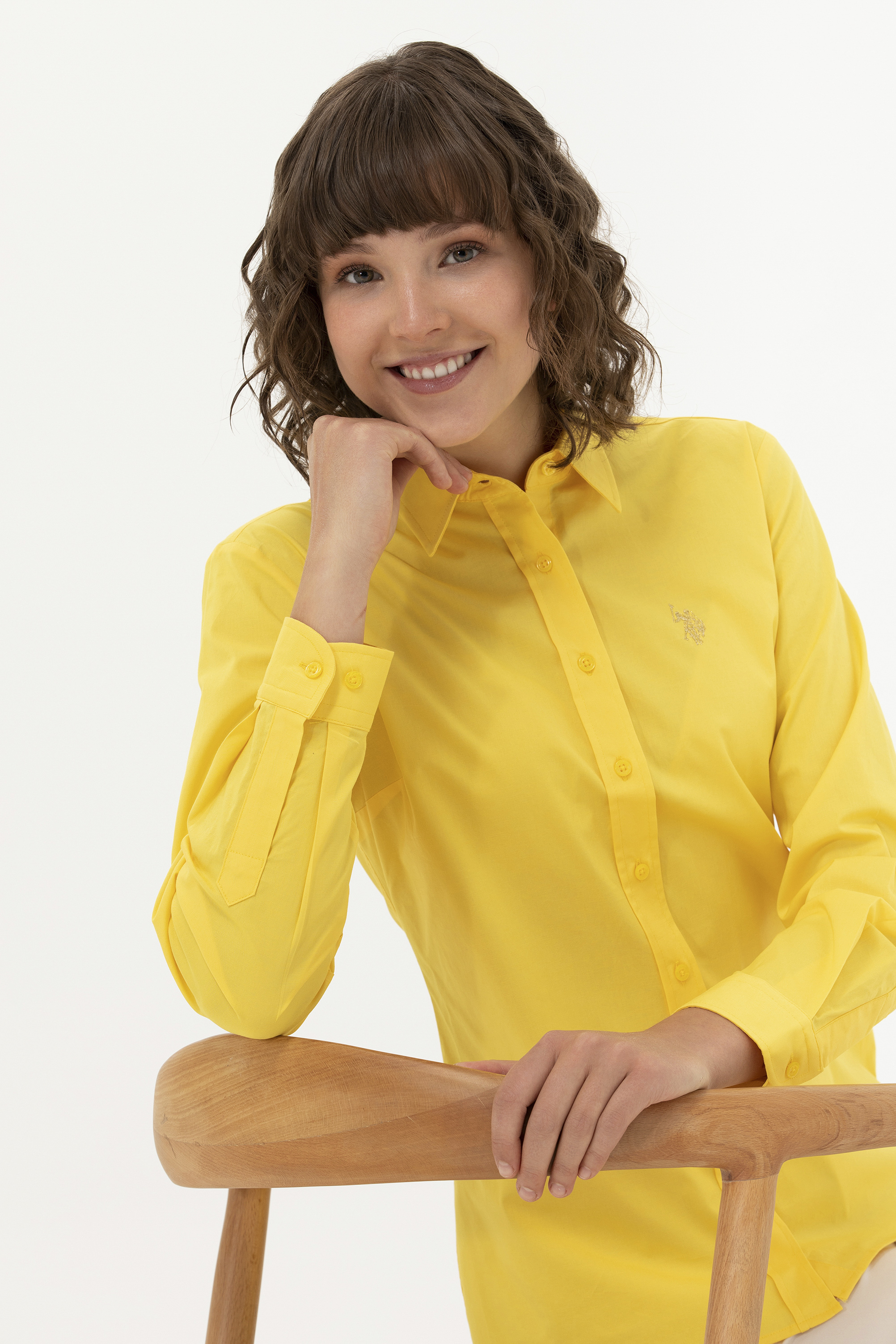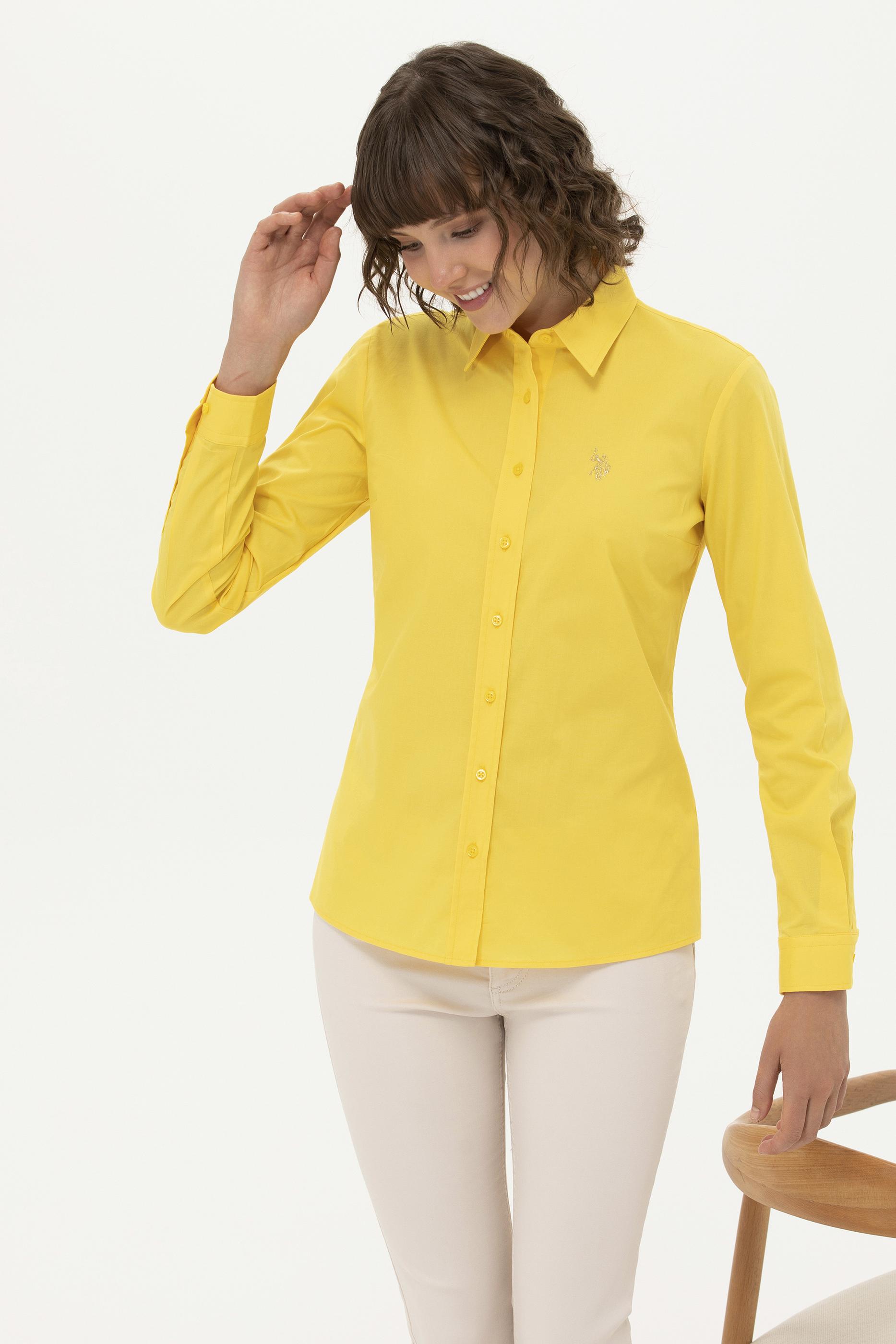 Kadın Sarı Uzun Kollu Basic Gömlek