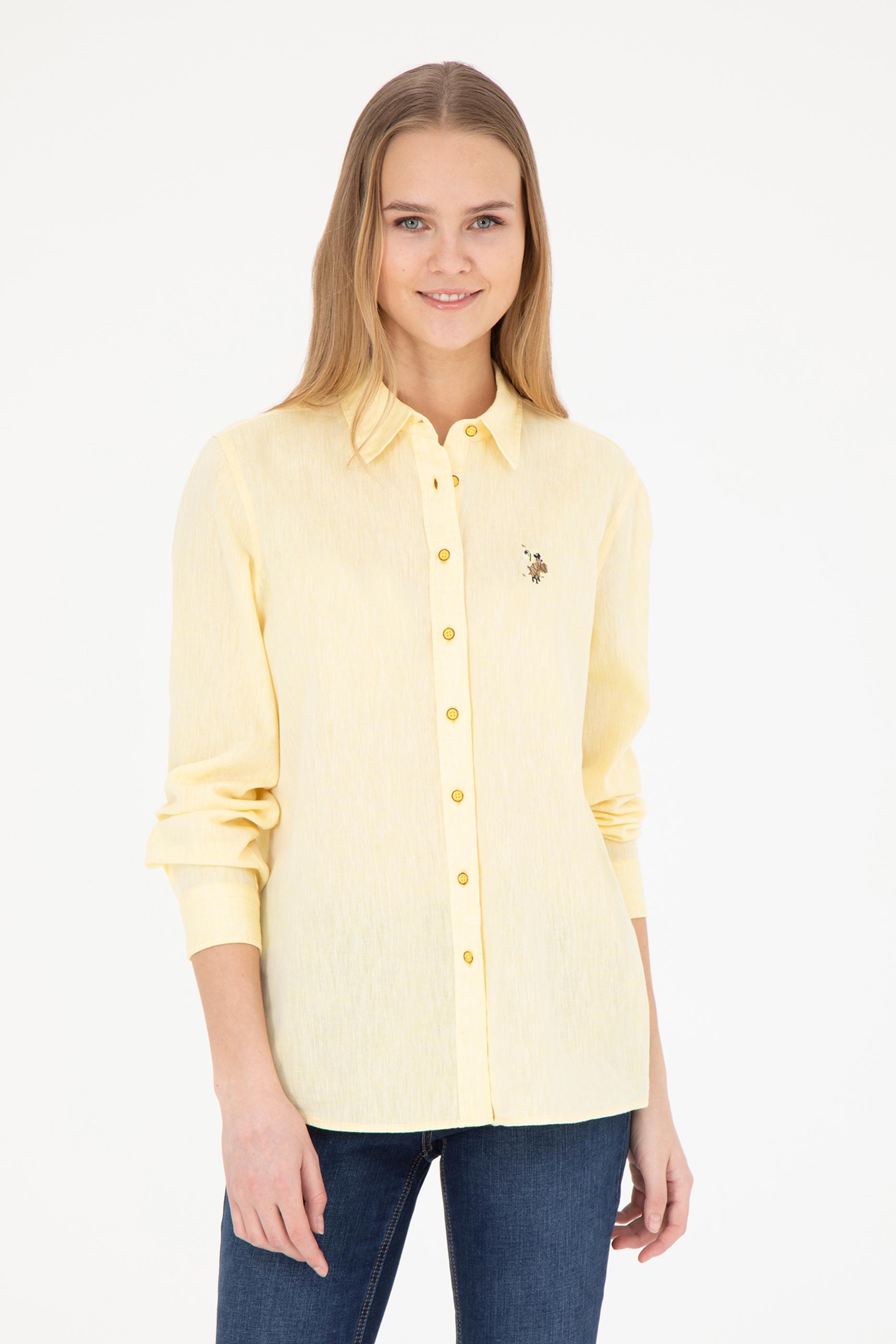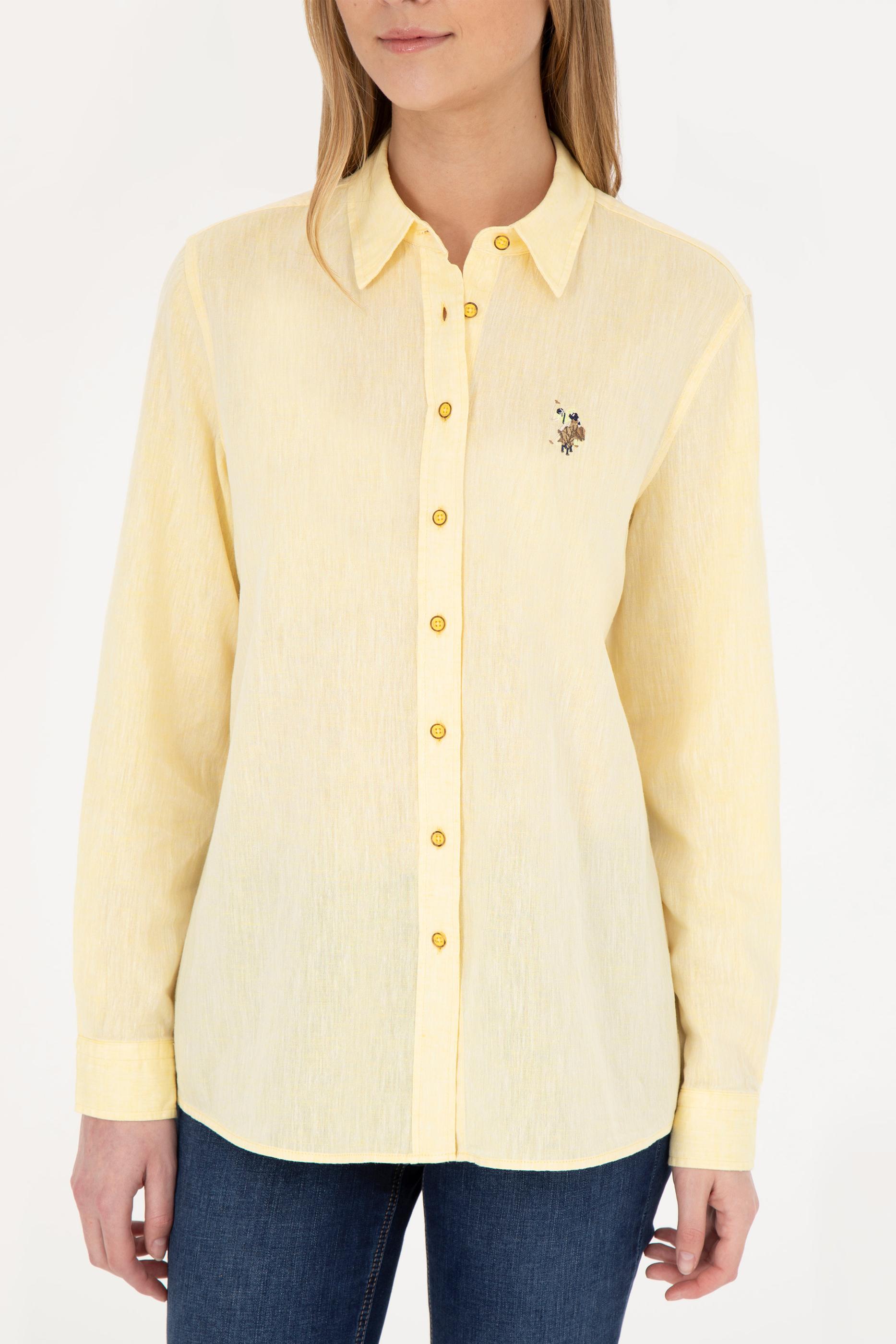 - Kadın Sarı Uzun Kollu Basic Gömlek