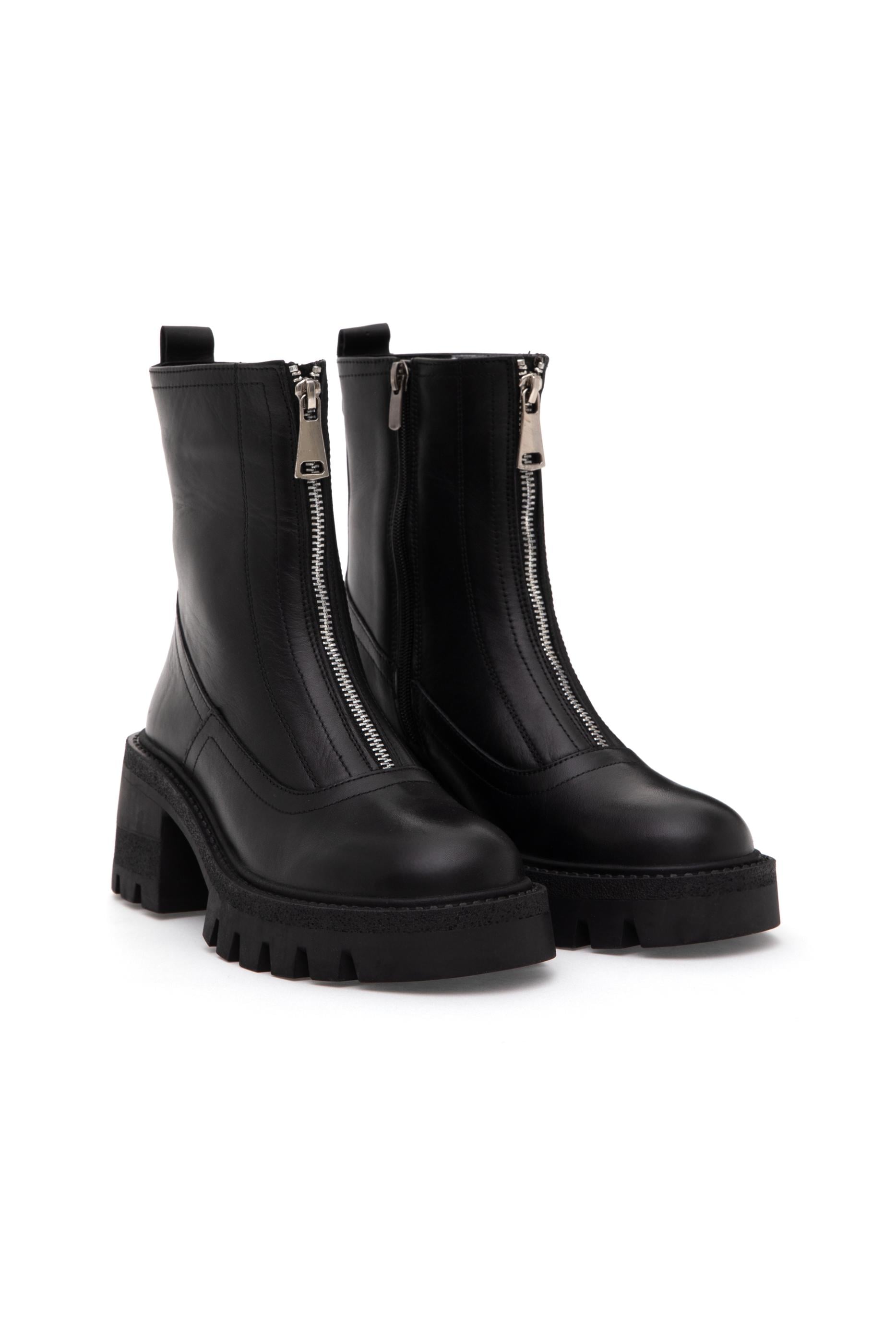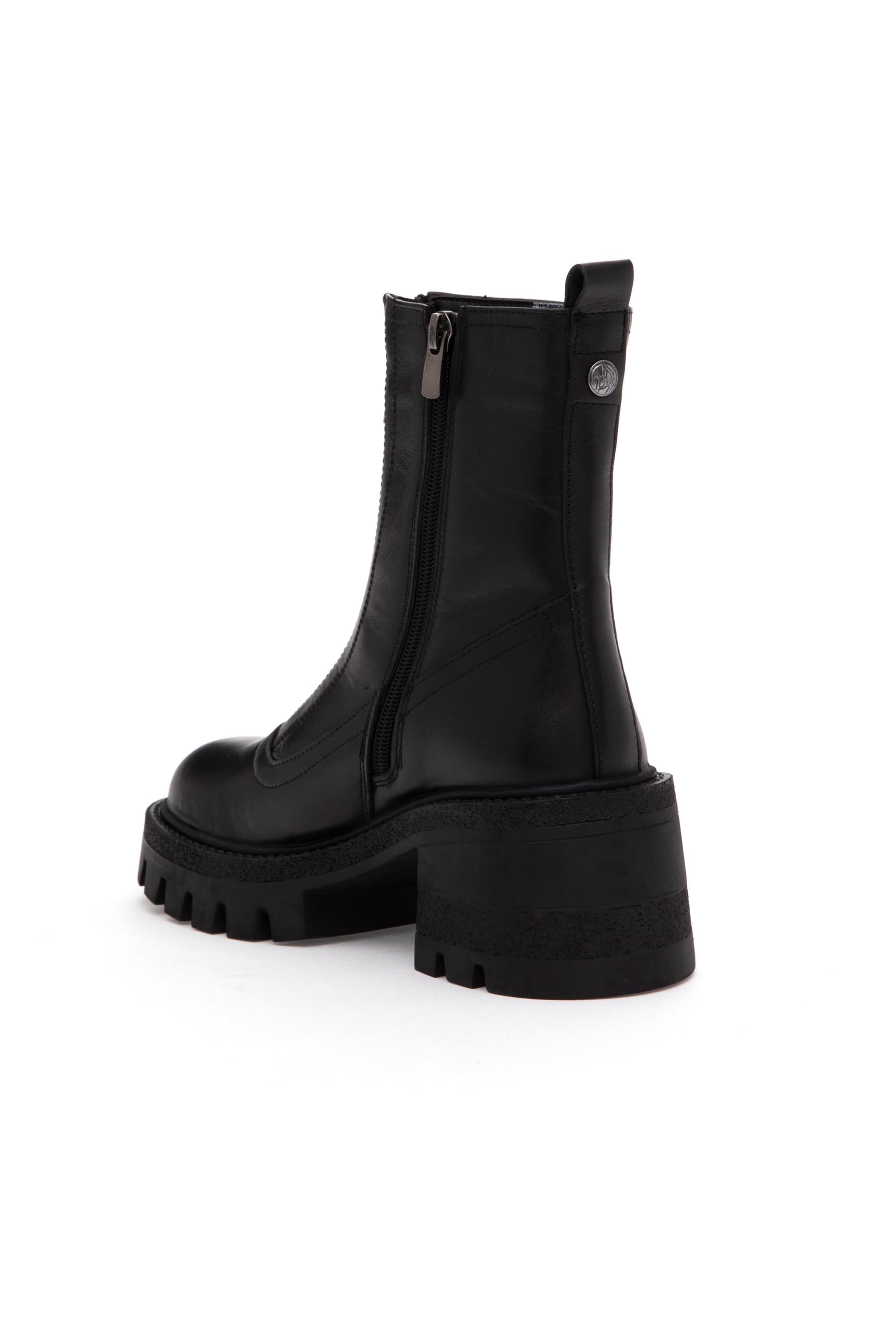 Bu siyah bot, modern şehir stilini fonksiyonel detaylarla buluşturuyor. Pürüzsüz deri görünümlü yüzeyi, minimal dikiş hatlarıyla zamansız bir duruş sergilerken, kalın dişli kauçuk tabanı sayesinde adımlarınıza sağlam bir zemin sağlıyor. Orta boy bilek yüksekliği, hem tayt hem de jean kombinleriyle dengeli bir görünüm yaratırken, fermuar detayı kullanım kolaylığı sunuyor. Hafif platform etkisi veren kalın taban, gün boyu konfor hissini korurken stile de güçlü bir ifade katıyor. Bu tasarım, günlük kullanımda hem rahat hem de iddialı görünmek isteyenler için pratik bir seçenek sunuyor.