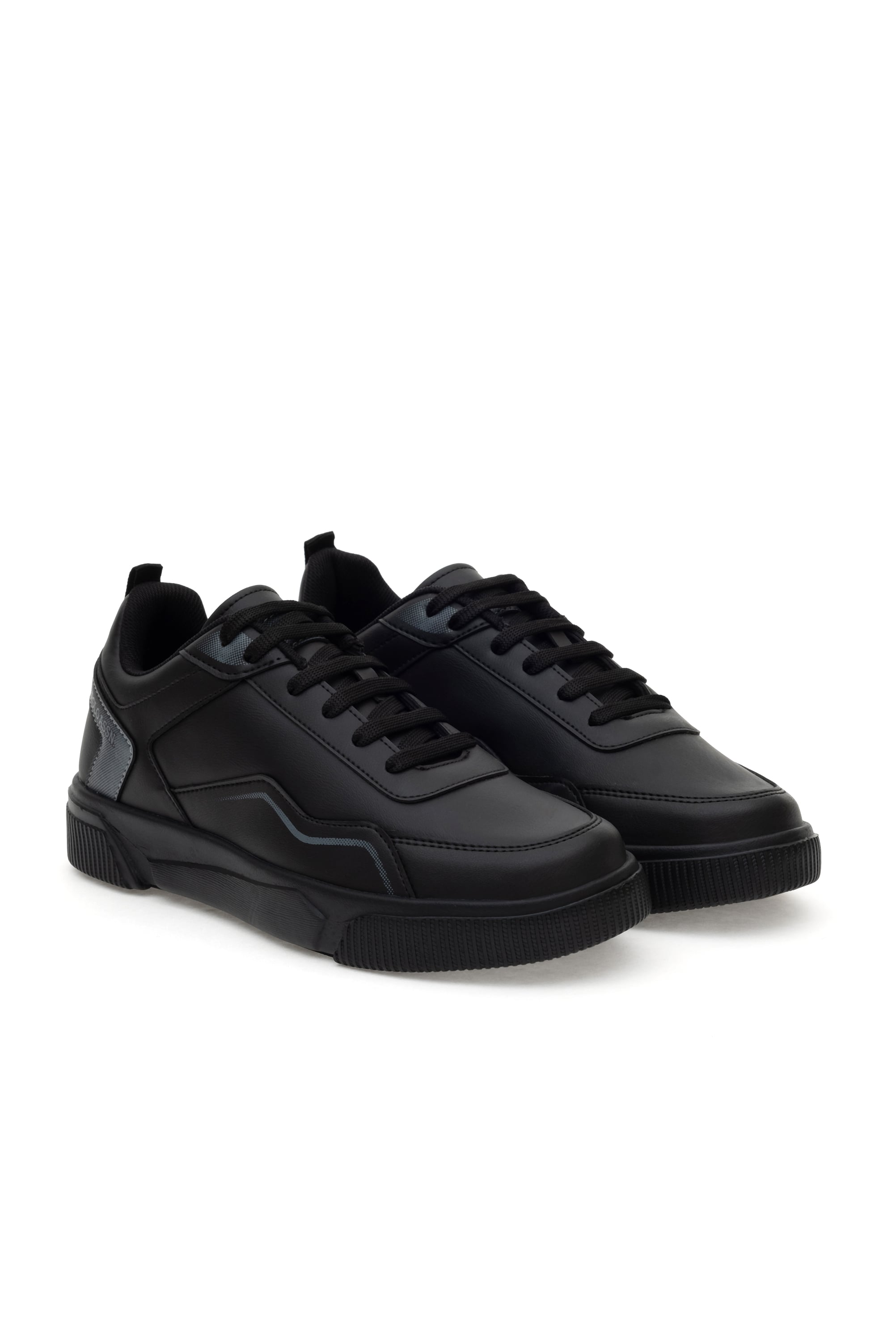Siyah tonların modern yorumuyla tasarlanan bu sneaker, tek renk görünümüyle sofistike ve zamansız bir stil sunuyor. Mat ve parlak dokuların dengeli kullanımı, tasarıma hem sportif hem de şehirli bir hava katarken, kalın taban yapısı gün boyu konfor sağlıyor. Yan panellerdeki ince hat detayları, modelin dinamik duruşunu öne çıkarıyor. Ayağı saran formuyla konforu artırırken, sağlam dış taban adımlarınıza güven katıyor. Hem günlük kombinlerde hem de sportif şehir stilinde rahatlıkla yer bulabilecek bu parça, minimalist tasarımıyla gardırobunuzun uzun ömürlü favorilerinden biri olmaya aday.