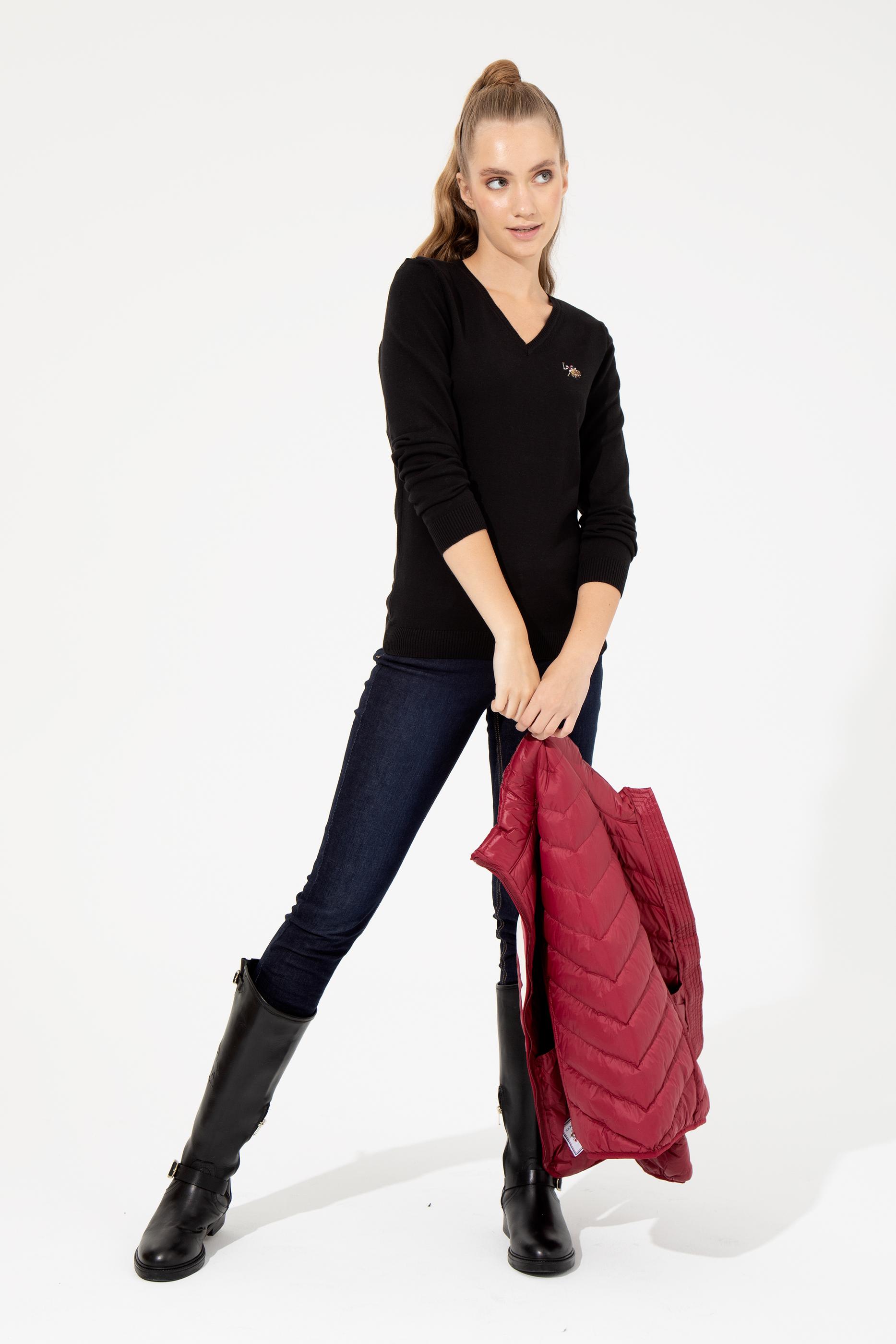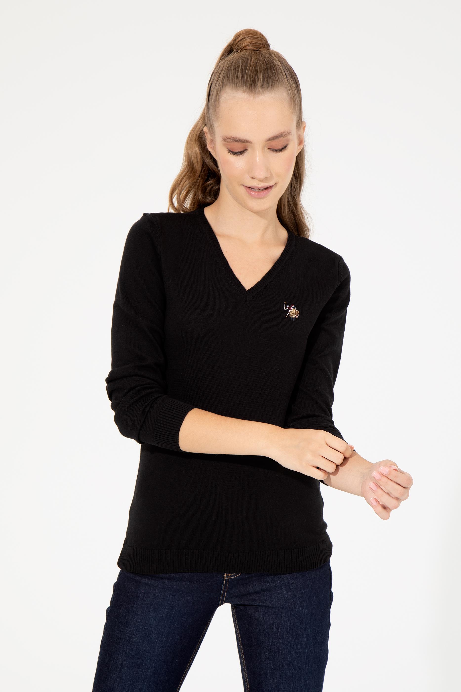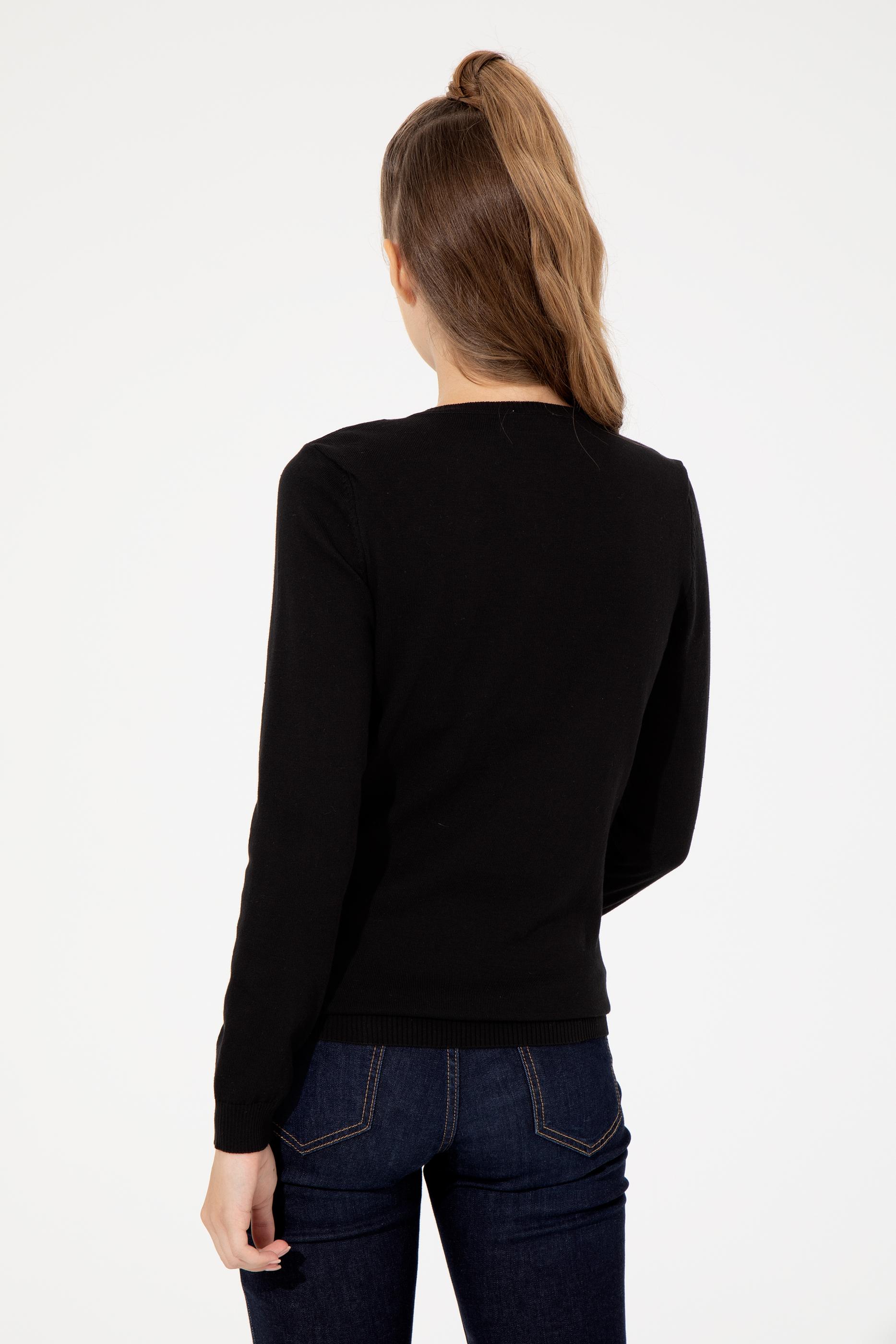 Kadın Siyah V Yaka Basic Kazak - 50255648021