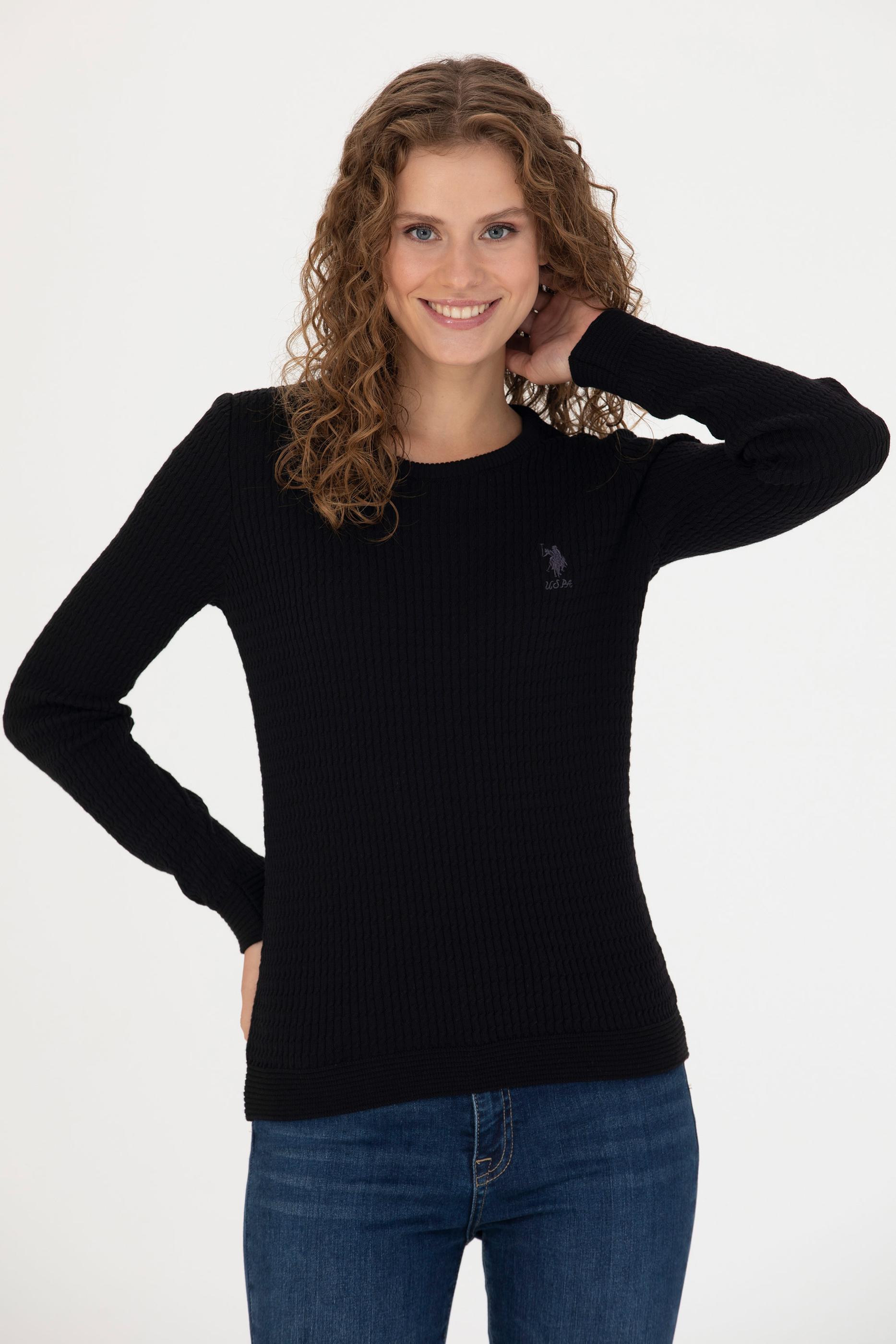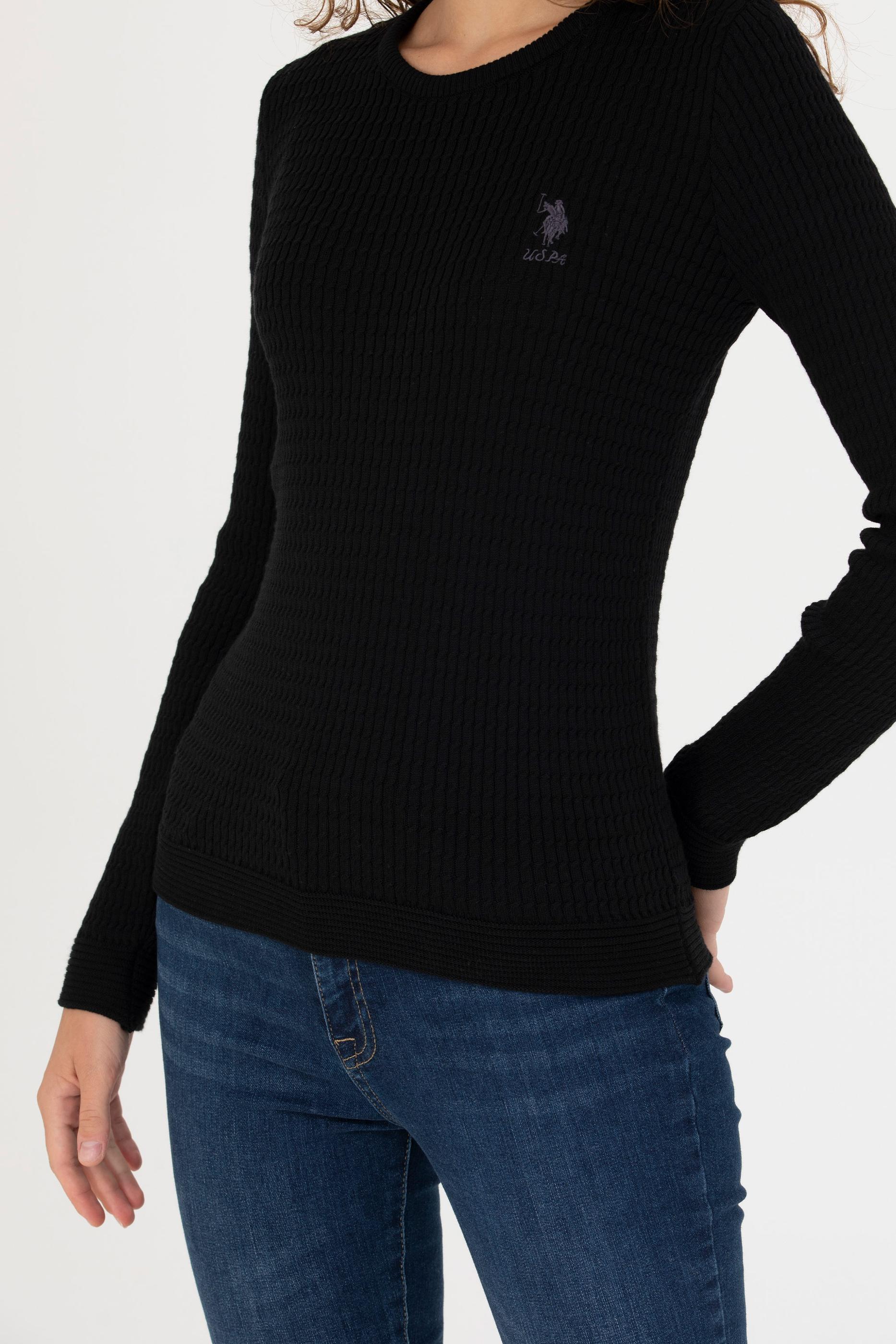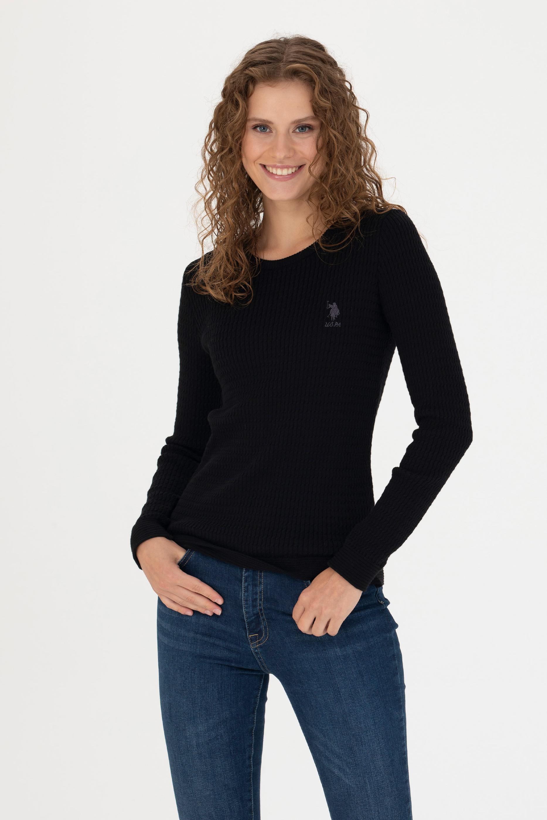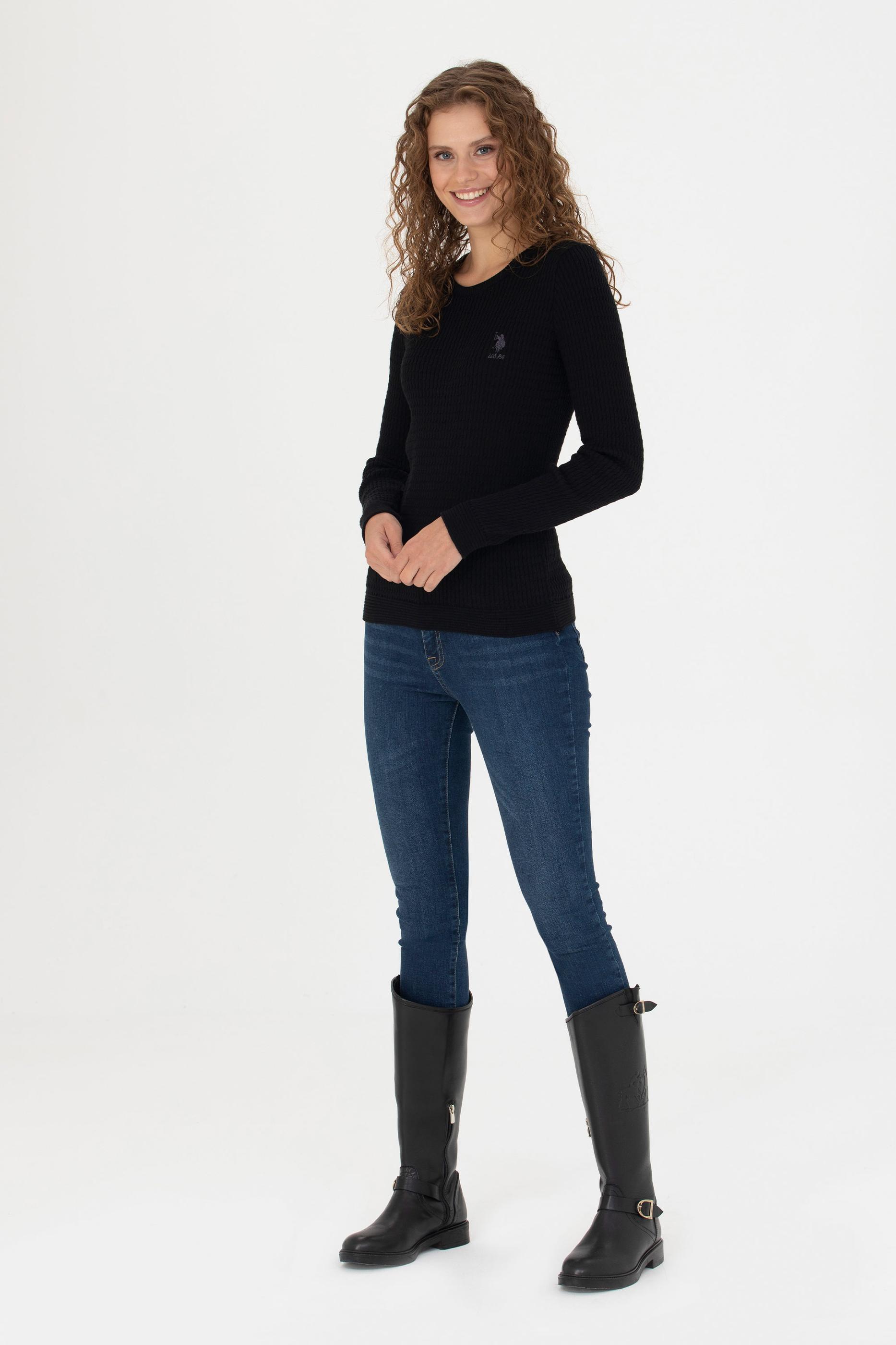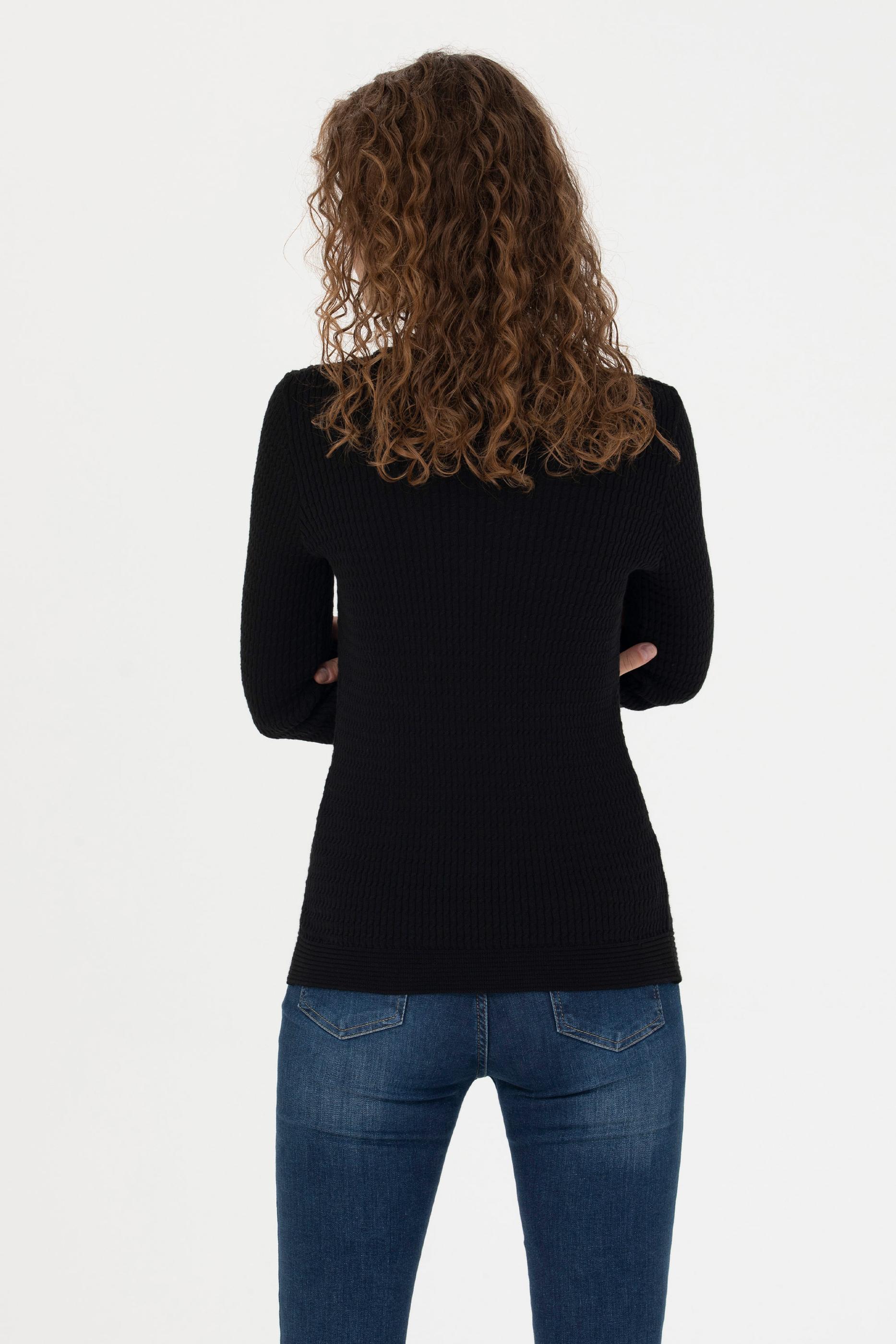 Kadın Siyah Bisiklet Yaka Basic Kazak