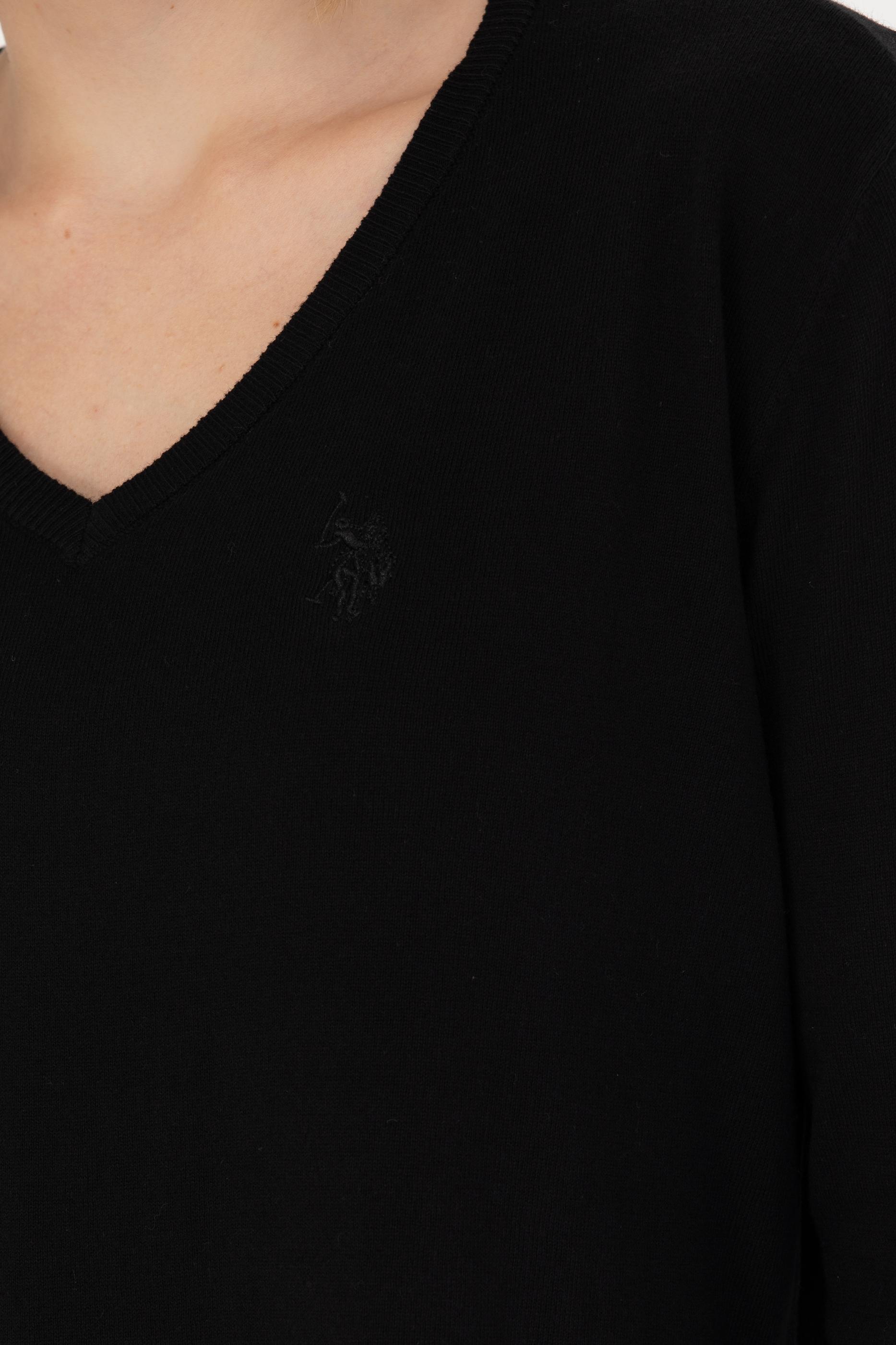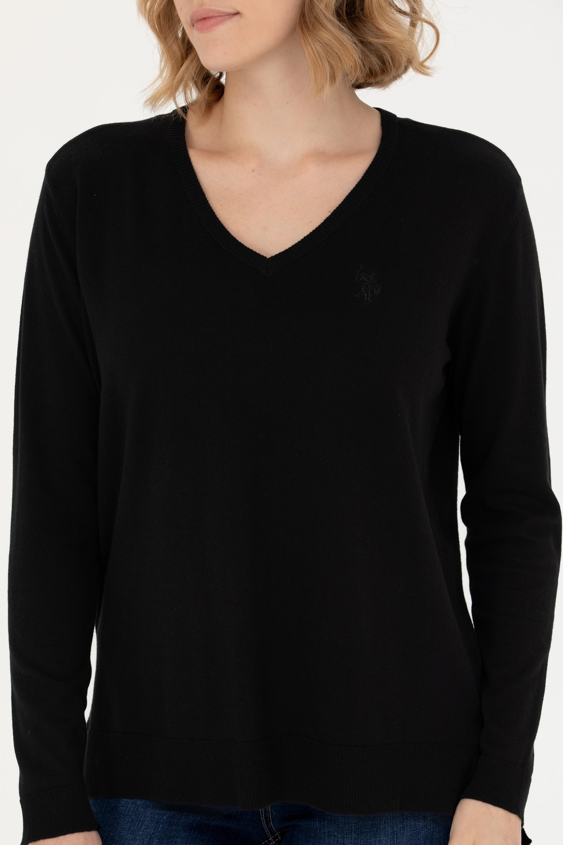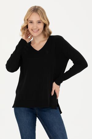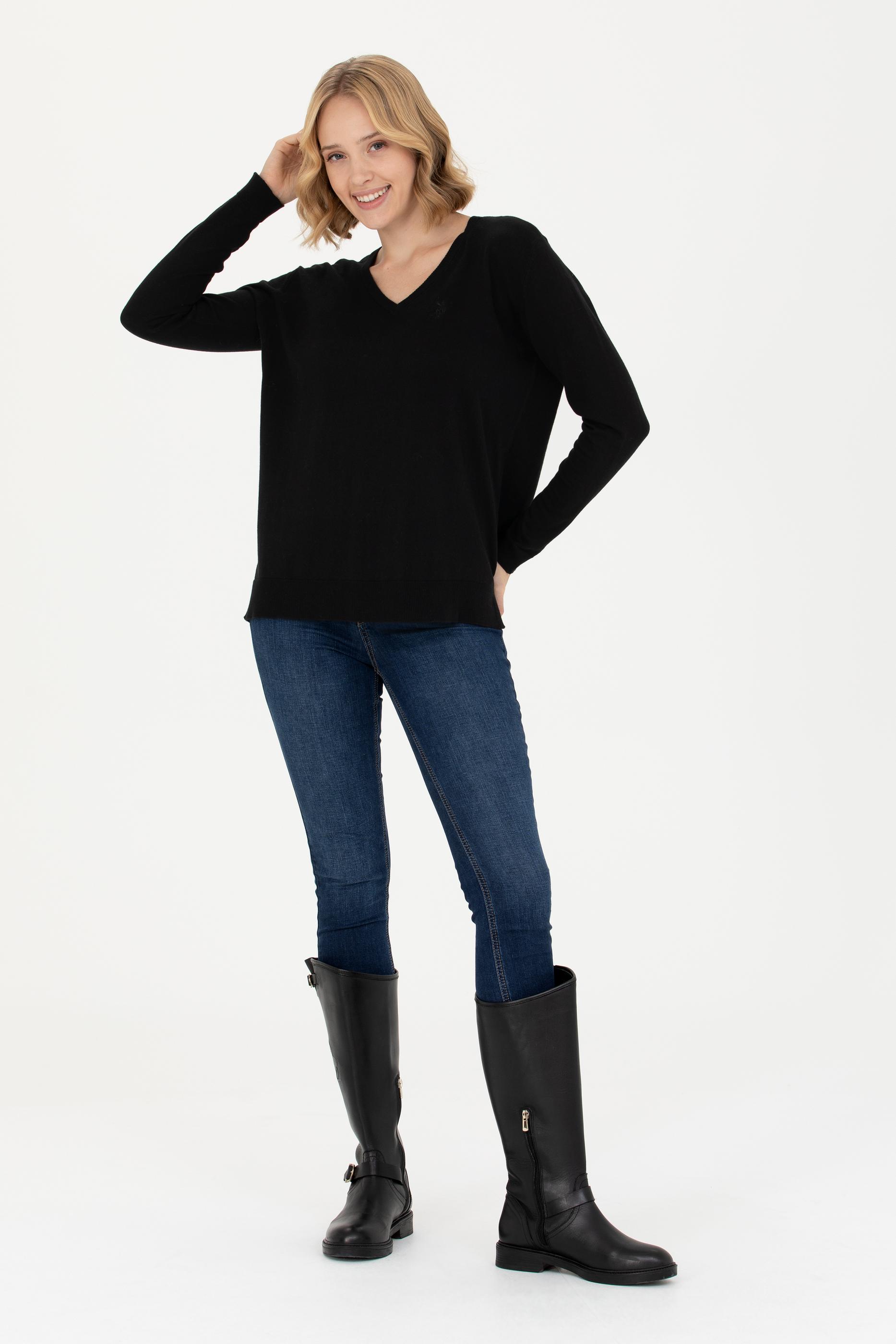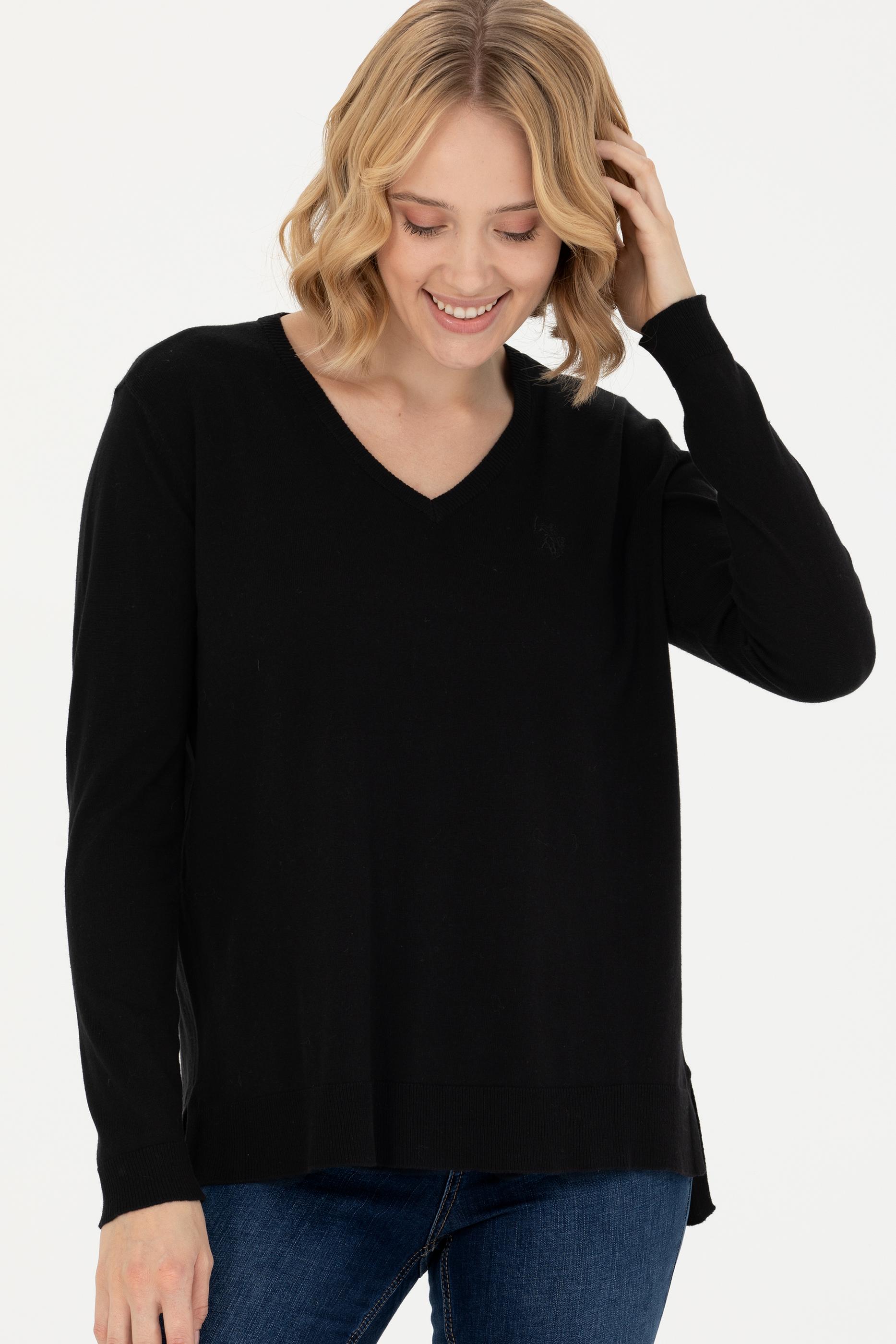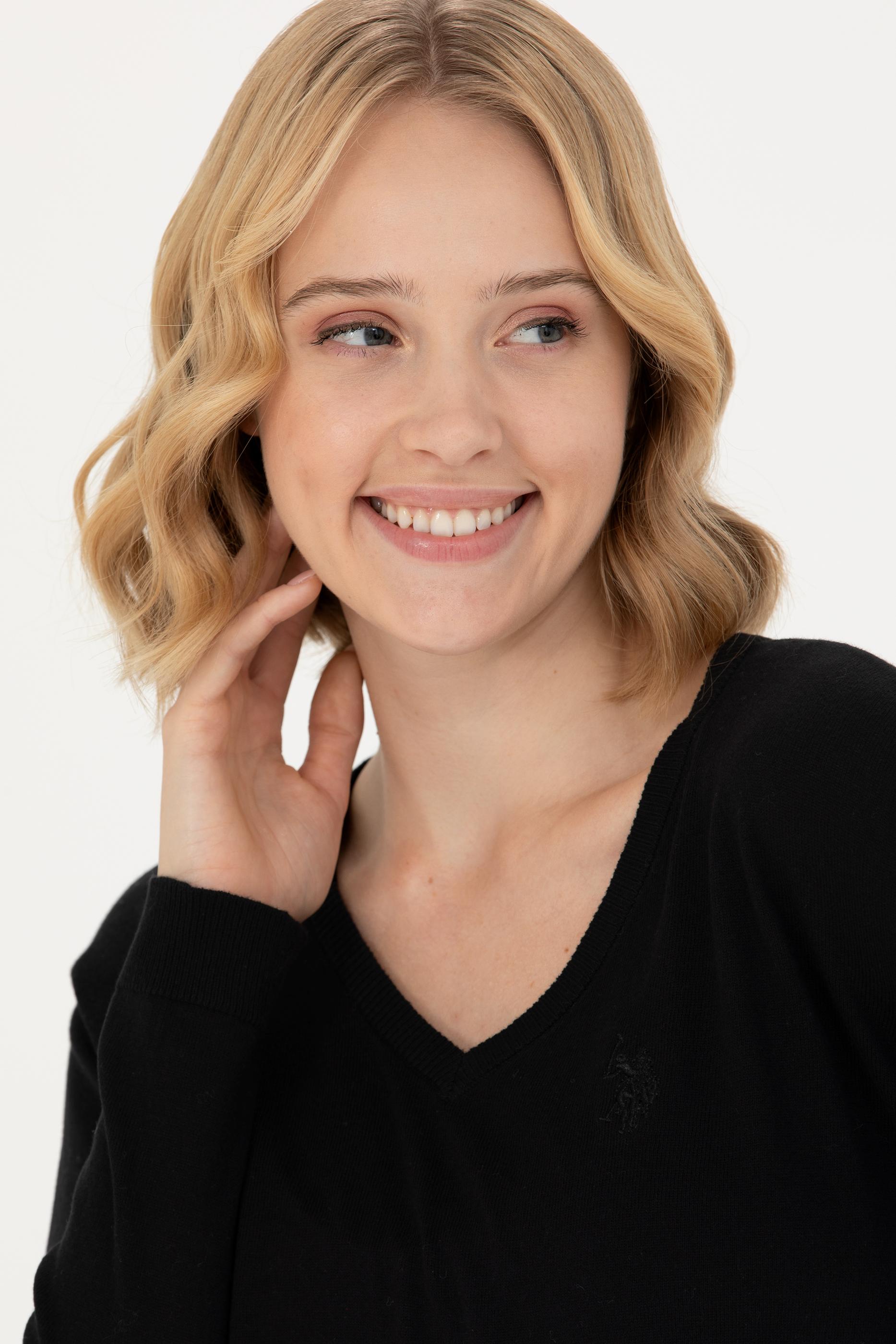 Kadın Siyah V Yaka Basic Kazak