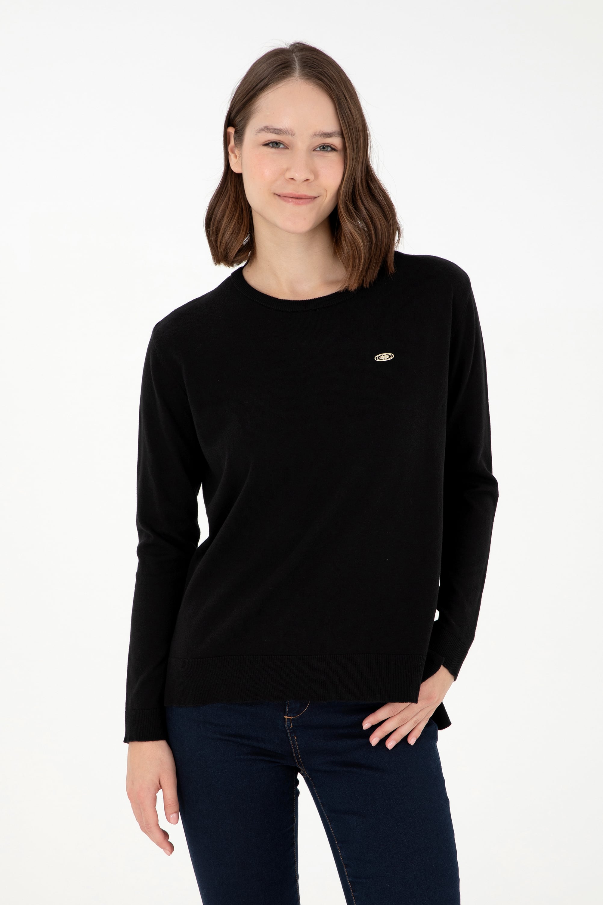 Kadın Siyah Basic Bisiklet Yaka Kazak