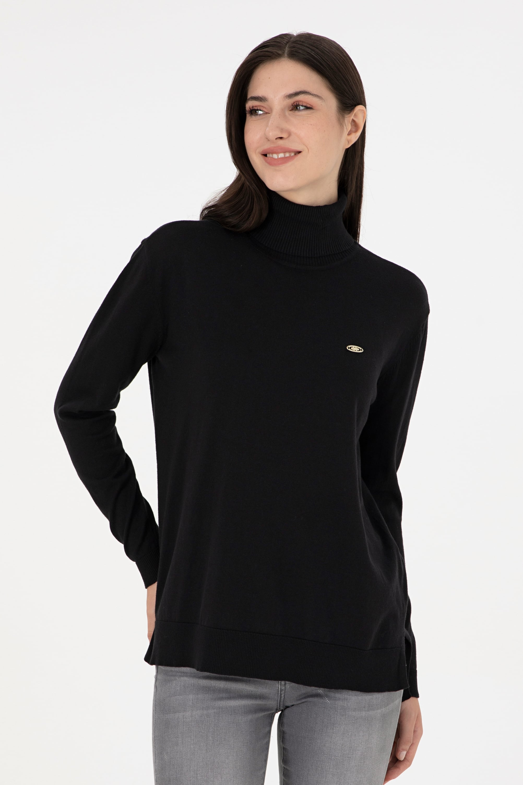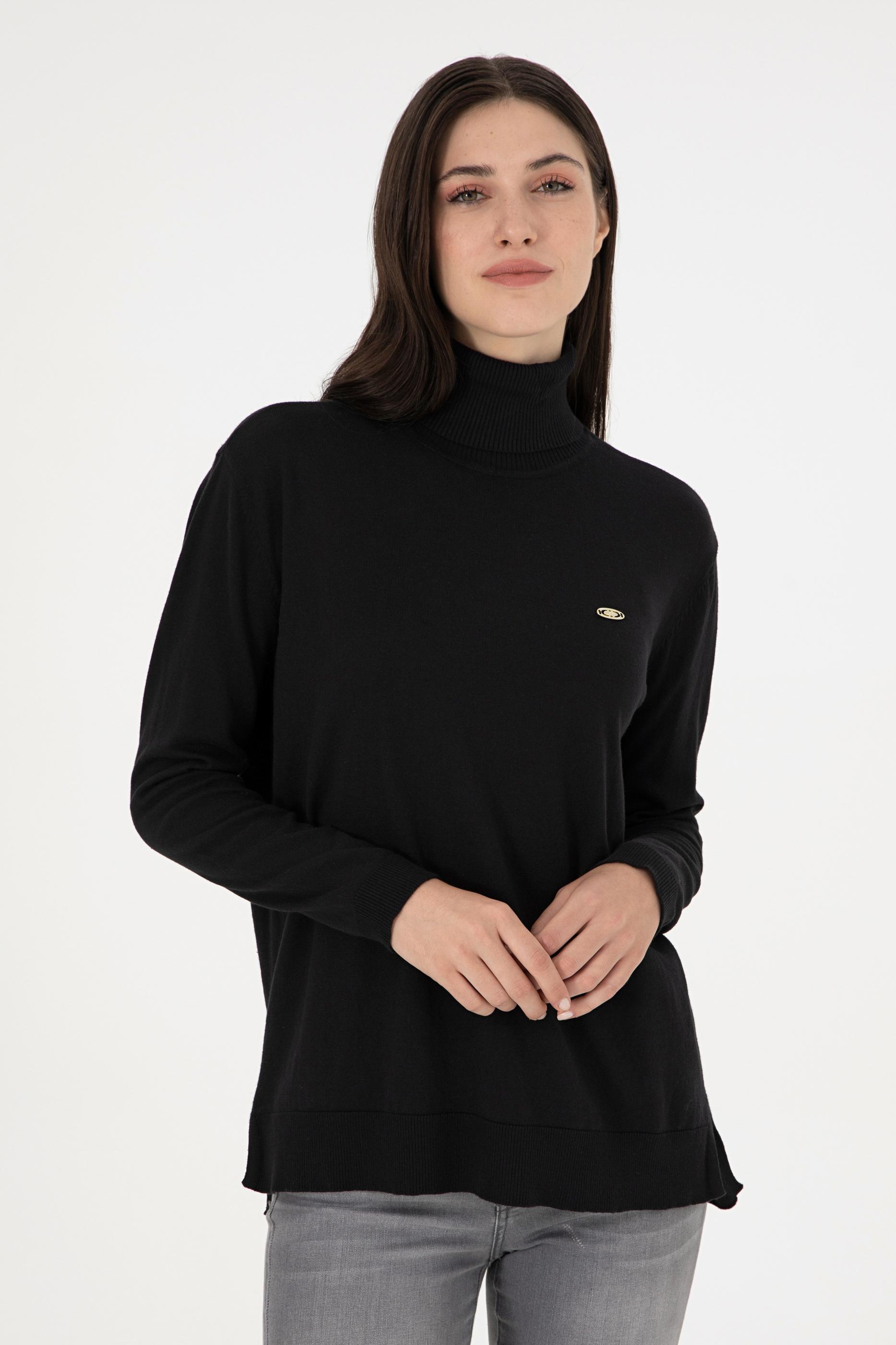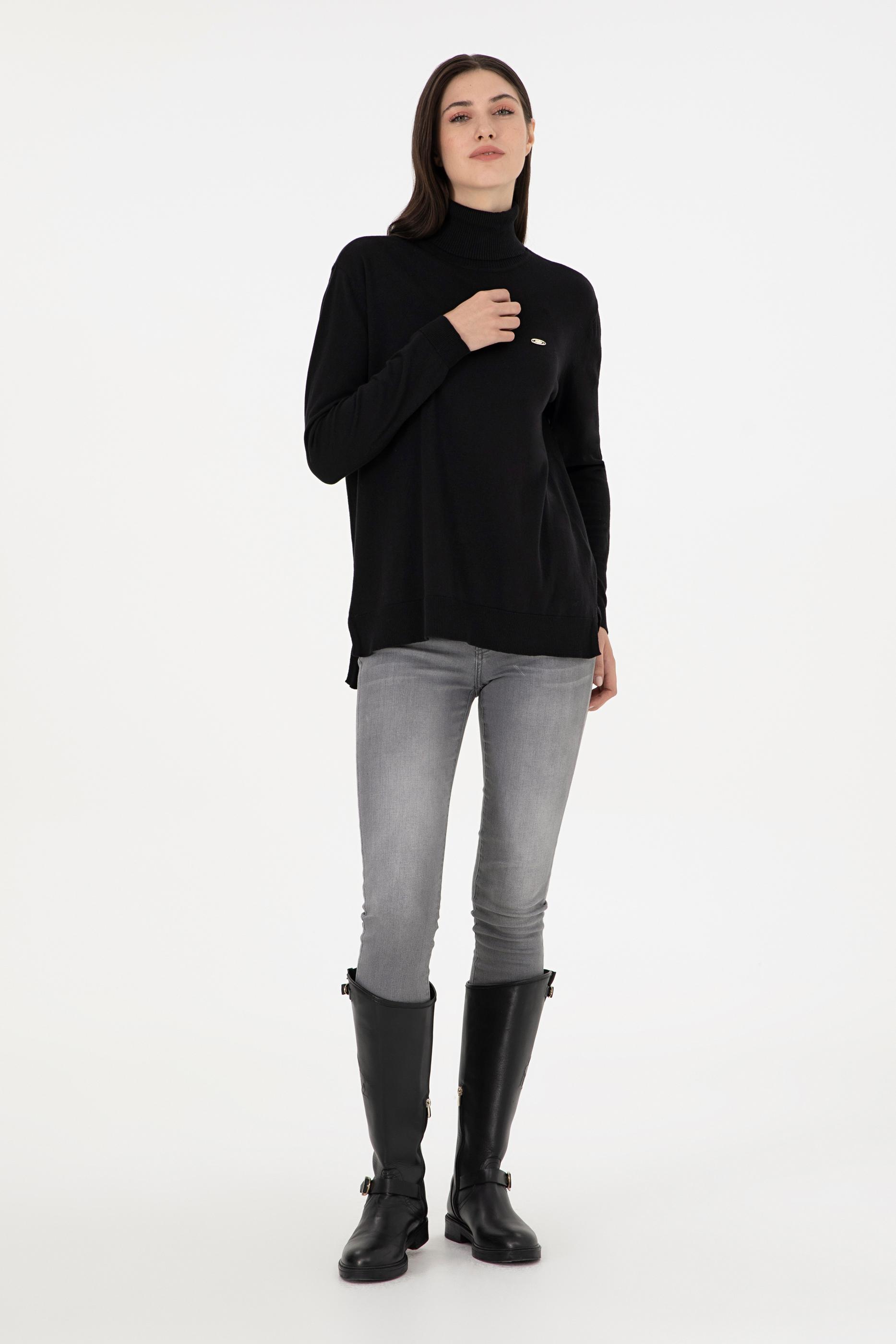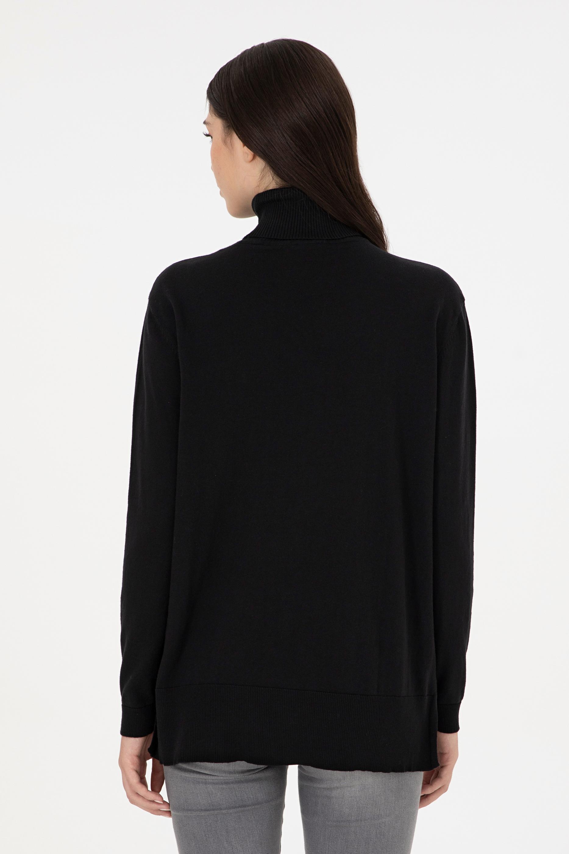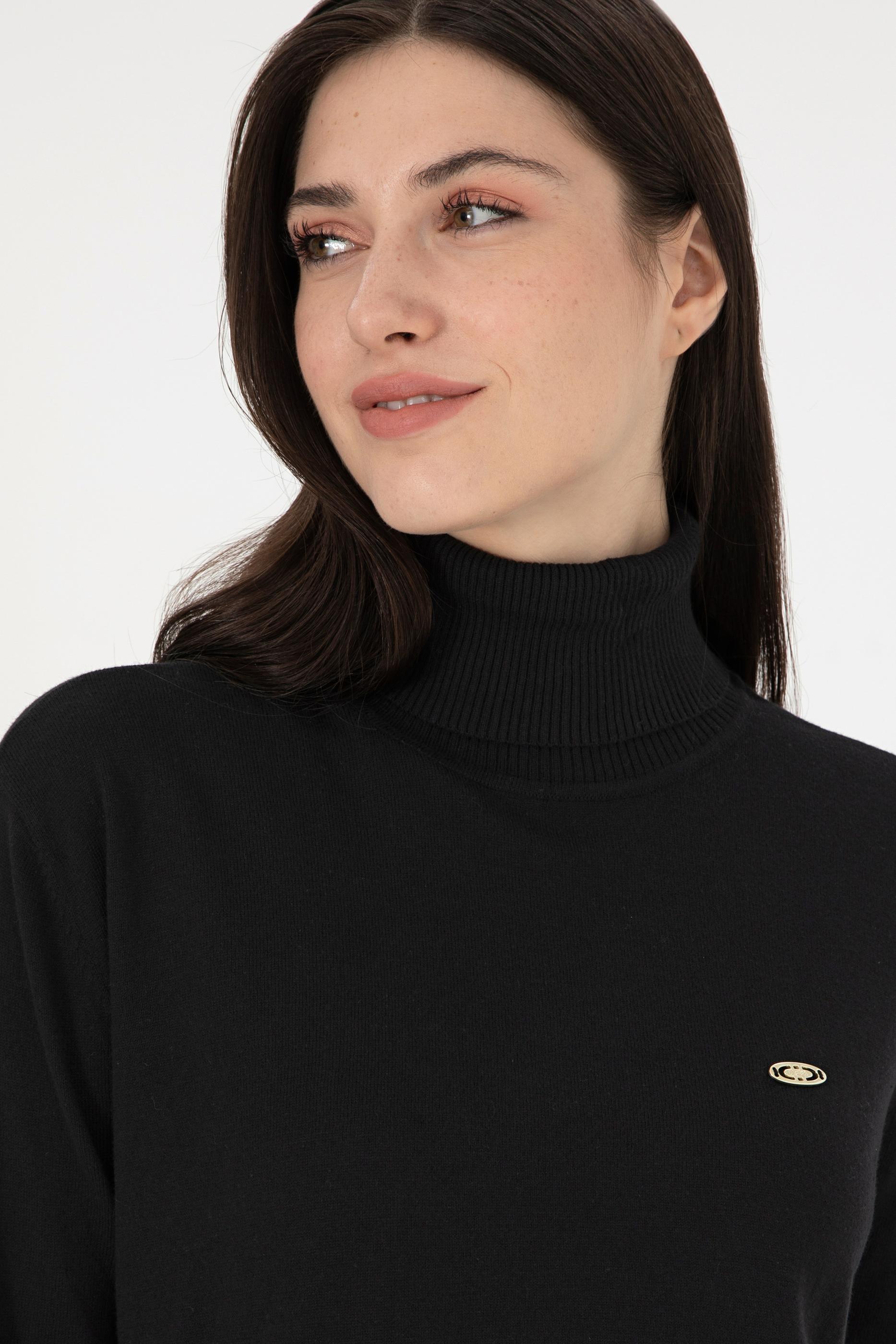 Kadın Siyah Basic Boğazlı Kazak