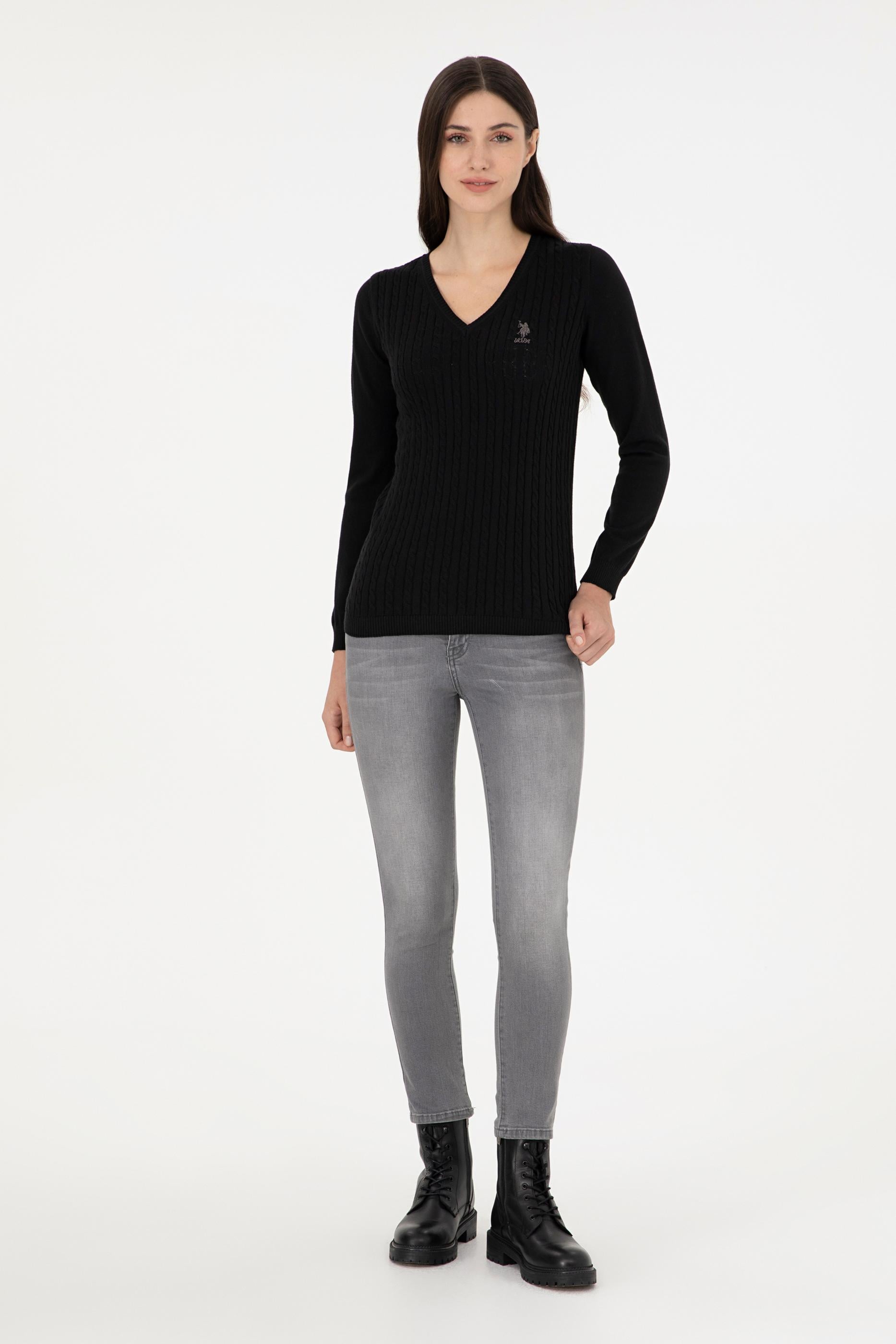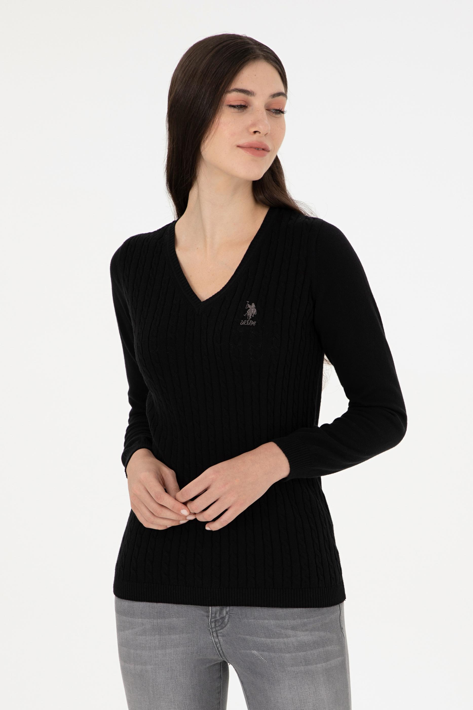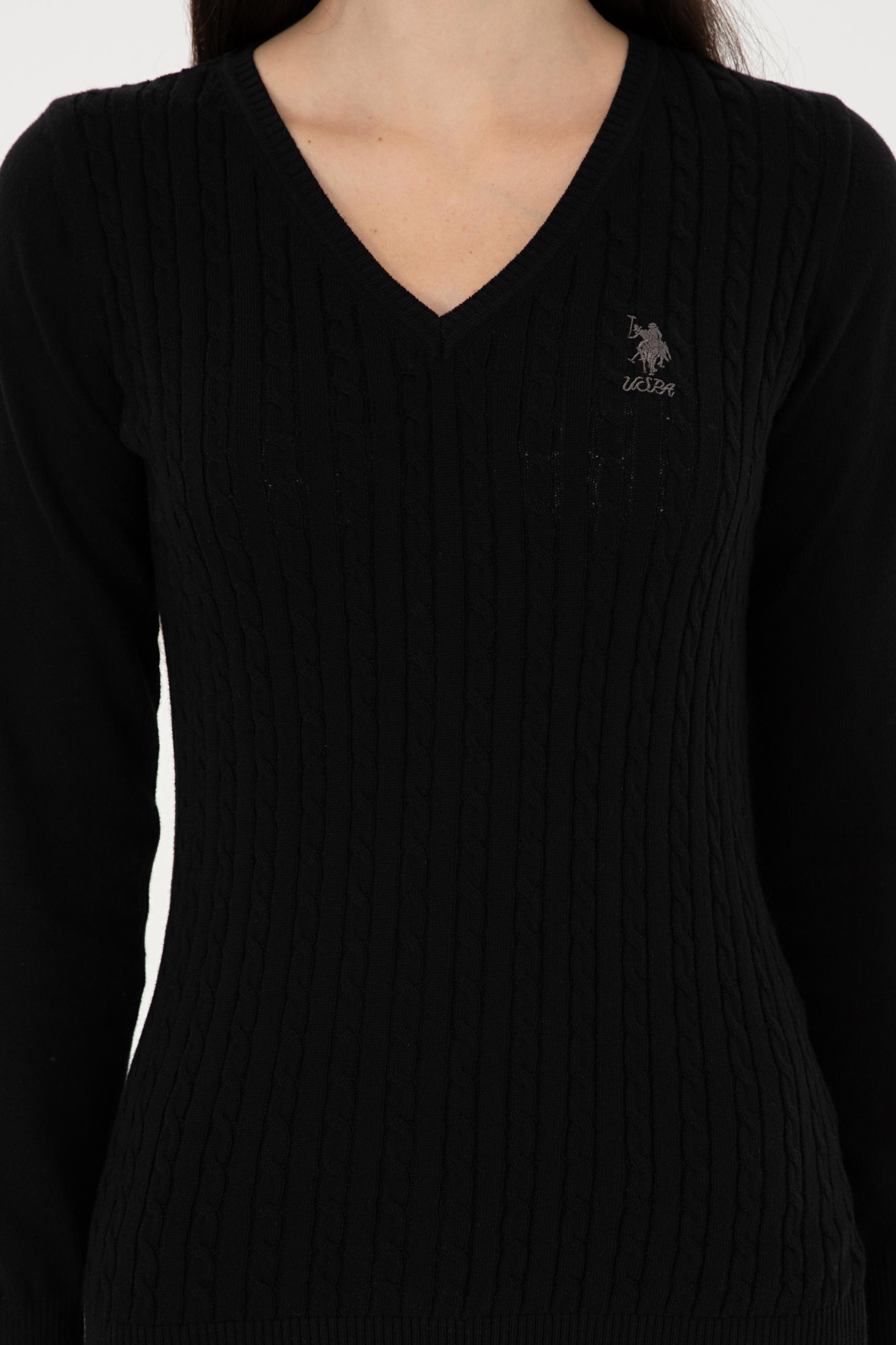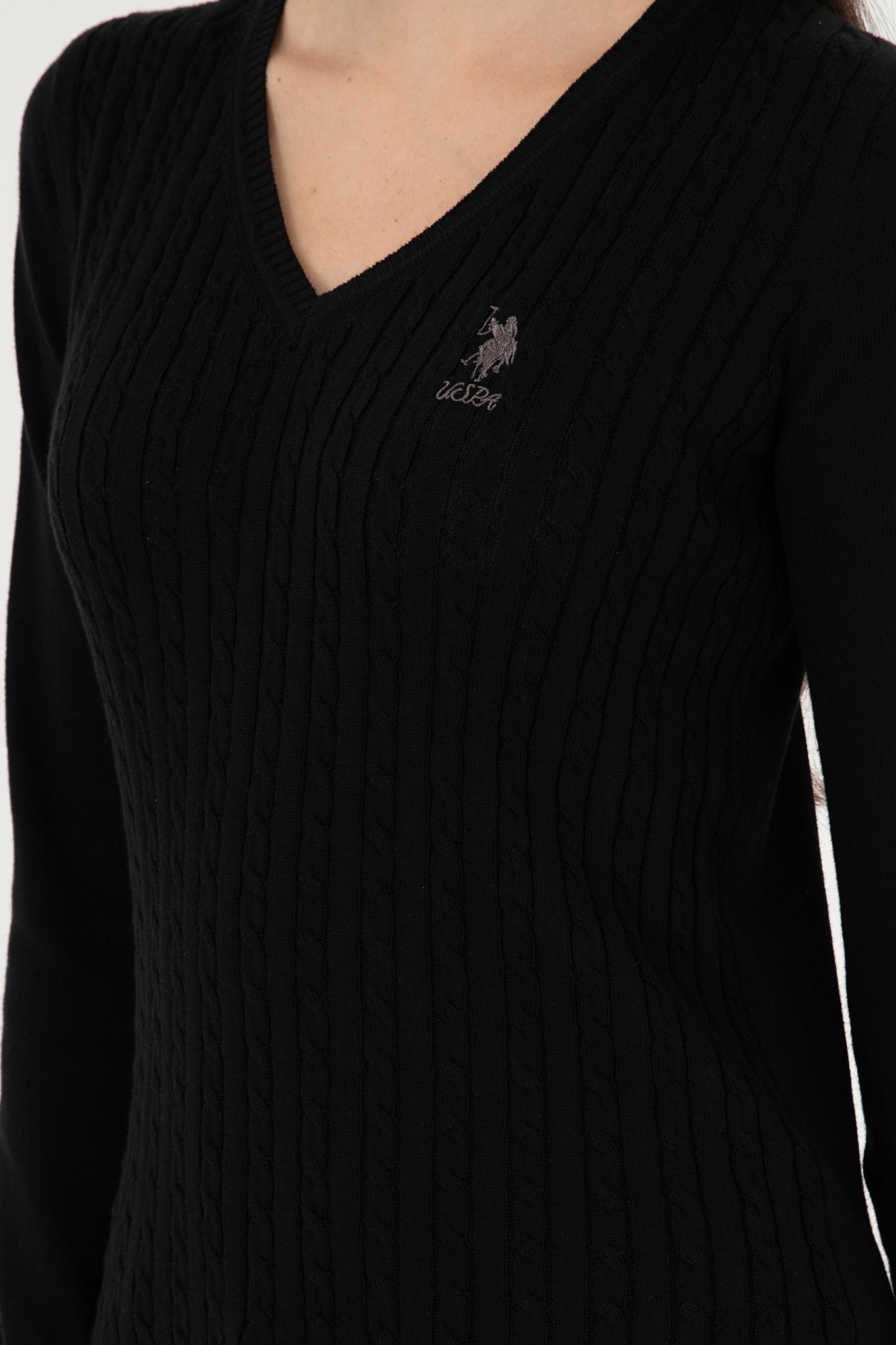 Kadın Siyah Basic V Yaka Kazak