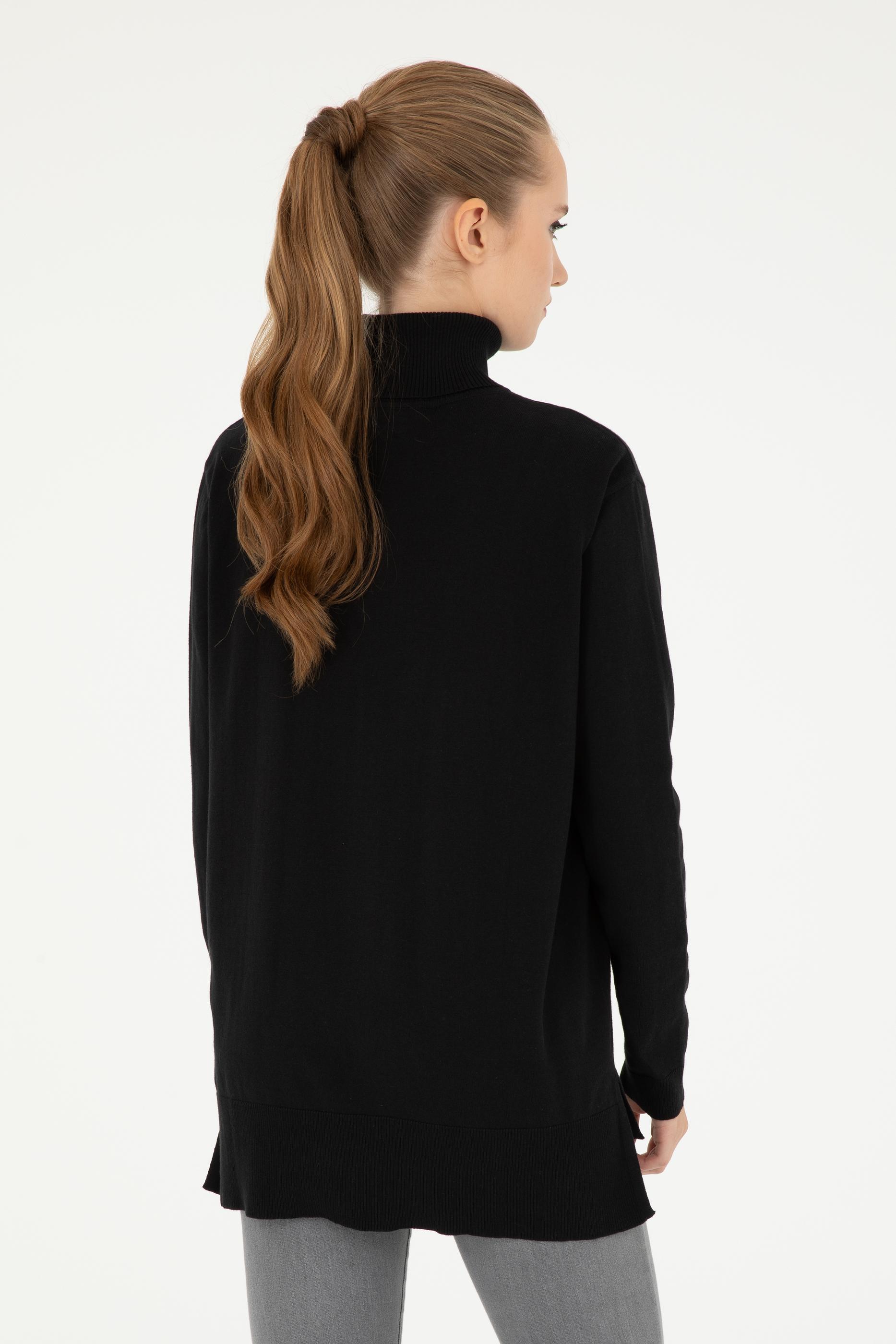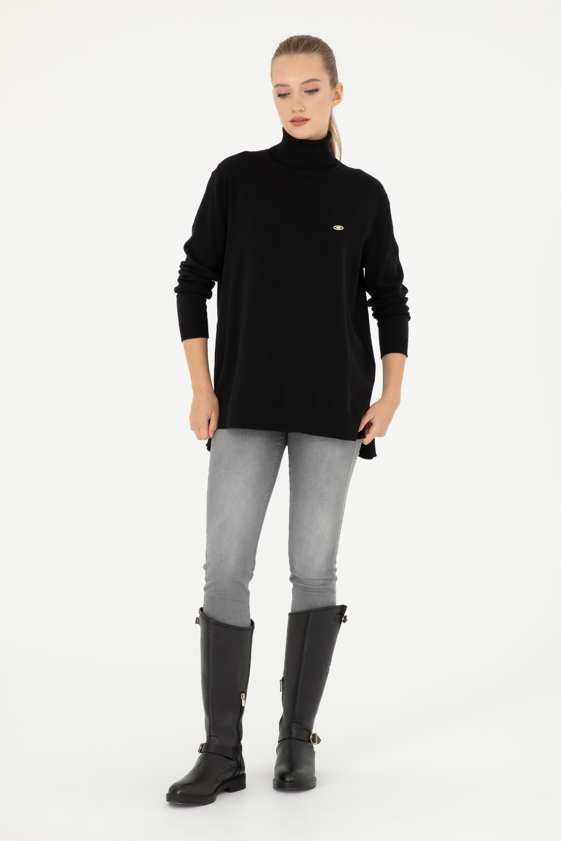Siyah, boğazlı kazaklarda hem zarafet hem de güç simgesi olarak öne çıkmaktadır. Koyu tonların derinliği, kış mevsiminin soğuk havalarında bile sıcak ve davetkar bir his yaratmaktadır. Hem klasik hem de modern bir görünüm sunarak her kadının gardırobunun vazgeçilmezi haline gelmektedir. %100 pamuk kumaşı, cilde nazik bir dokunuş yaparak gün boyu konfor sağlamaktadır. Boğazlı yaka tasarımı, soğuk günlerde sıcak tutma işlevi görmekte ve şık bir hava katmaktadır. Comfort fit kesimi, vücut hatlarını nazikçe sarmakta ve rahat hareket imkanı tanımaktadır. Siyah kazak, hem gündelik hayatta hem de özel davetlerde kullanılabilen çok yönlü bir parçadır. Jeanlerle rahat bir görünüm elde etmek ya da şık bir etekle şık bir stil yaratmak oldukça kolaydır. Kaliteli dikiş detayları, uzun ömürlü bir kullanım sunarak dayanıklılığı artırmaktadır. Stilinizi güçlendiren ve her durumda şıklığınızı vurgulayan bir seçenek olarak öne çıkmaktadır. Kış aylarında hem sıcak kalmayı hem de etkileyici görünmeyi sağlayan mükemmel bir parçadır. Gardırobunuzda bulunması gereken bir klasik haline gelmektedir.