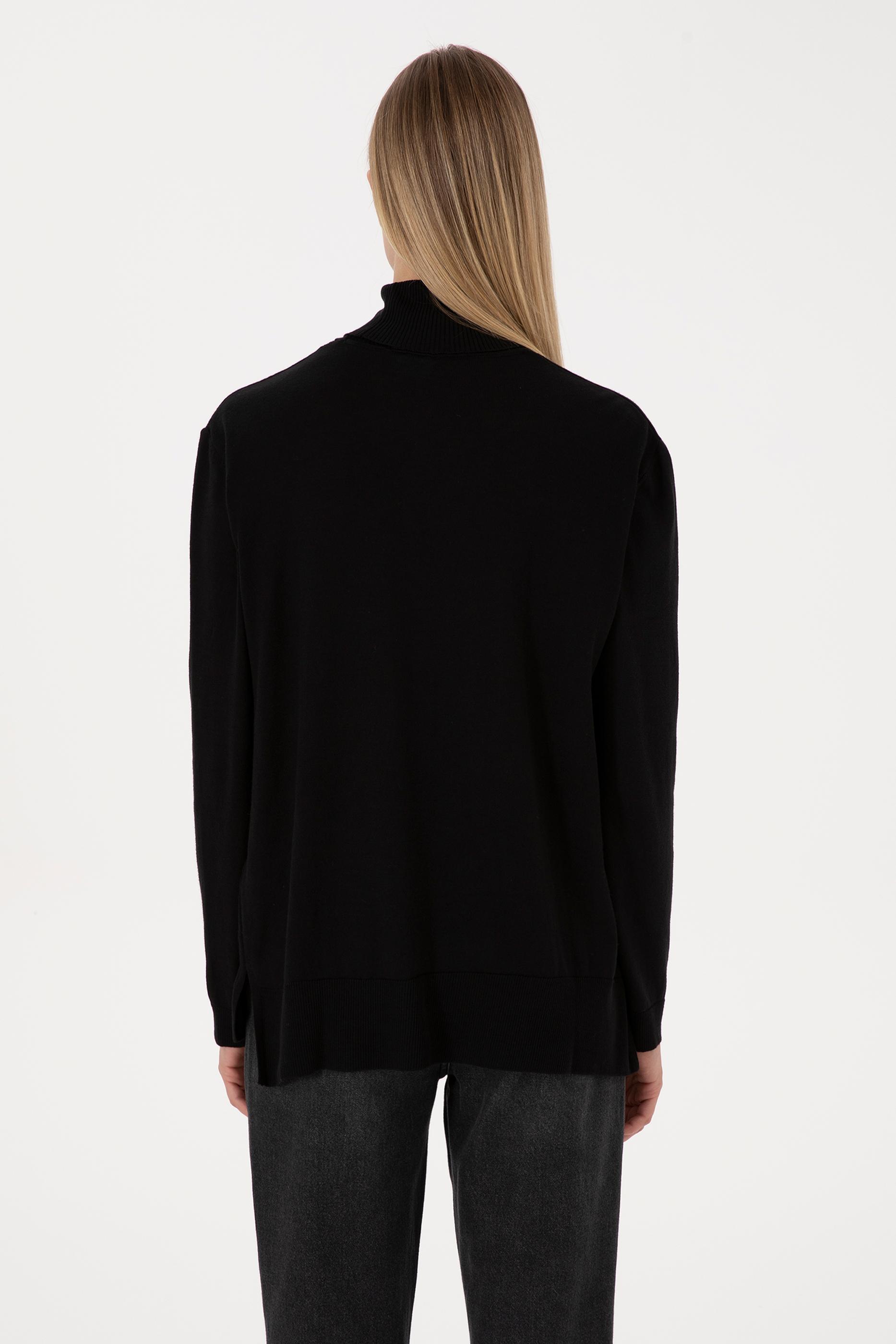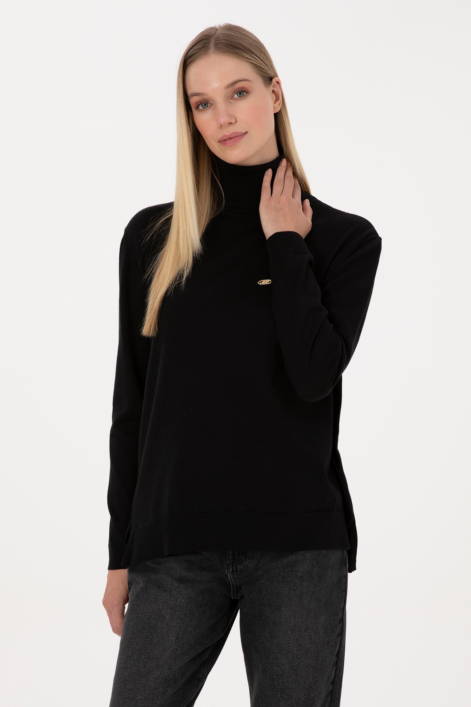 Kadın Siyah Basic Boğazlı Kazak