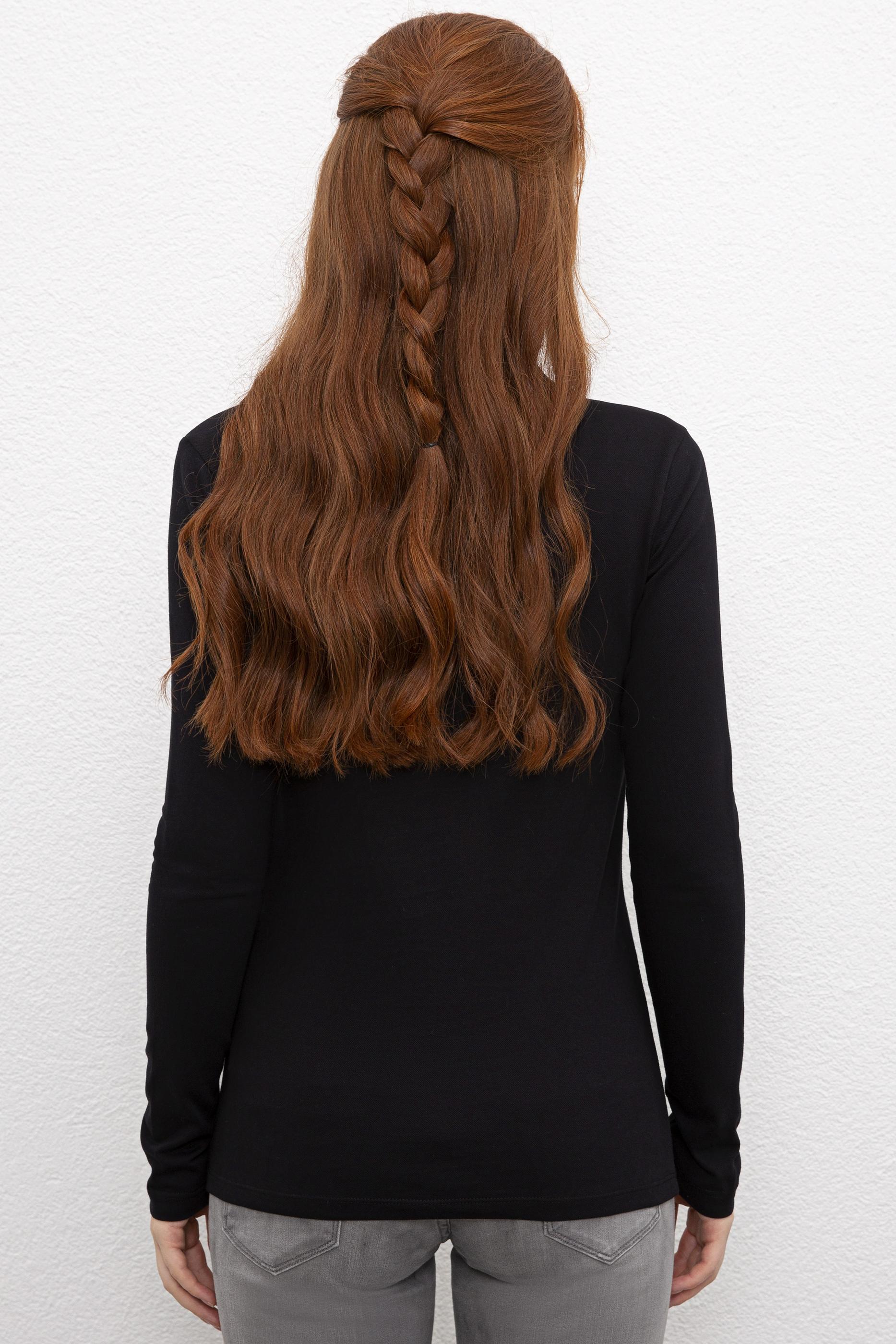 Kadın Siyah Basic Polo Yaka Sweatshirt