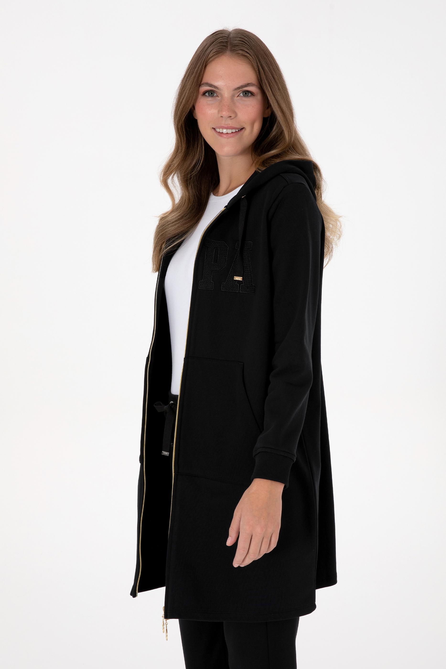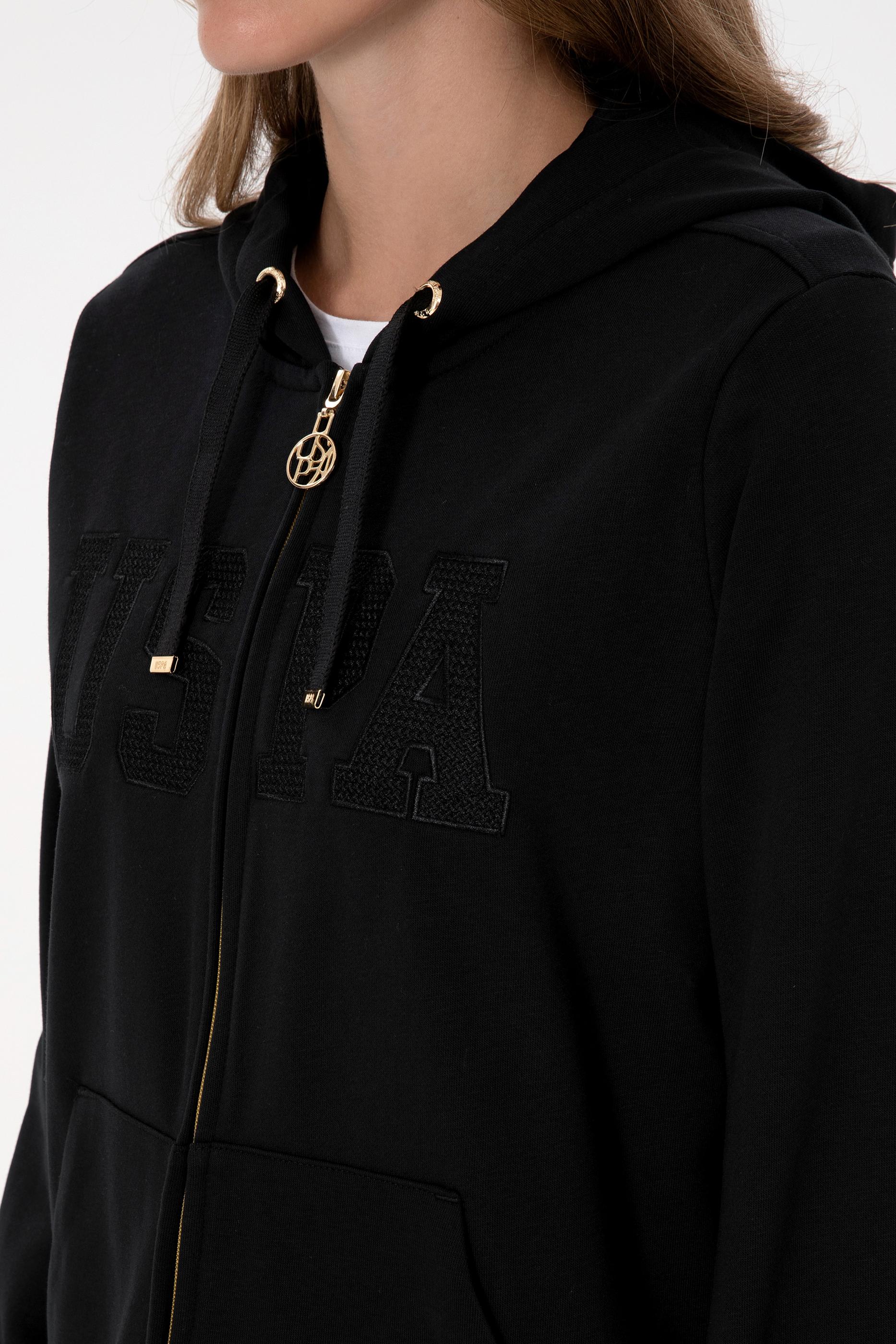- Kadın Siyah Uzun Fermuarlı Kapüşonlu Basic Sweatshirt