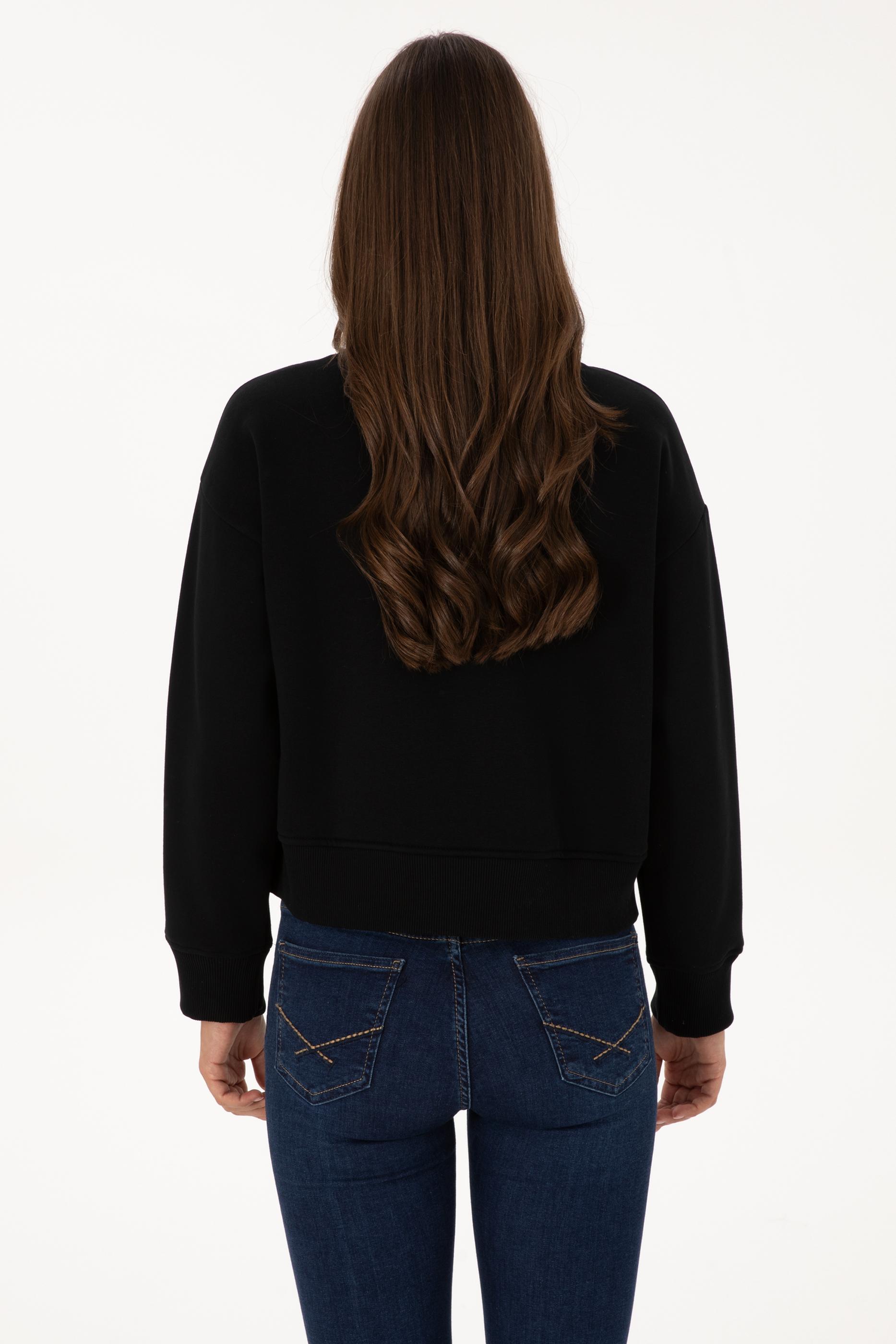 - Kadın Siyah Bisiklet Yaka Basic Sweatshirt