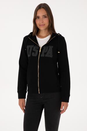 Kadın Siyah Fermuarlı Kapüşonlu Basic Sweatshirt