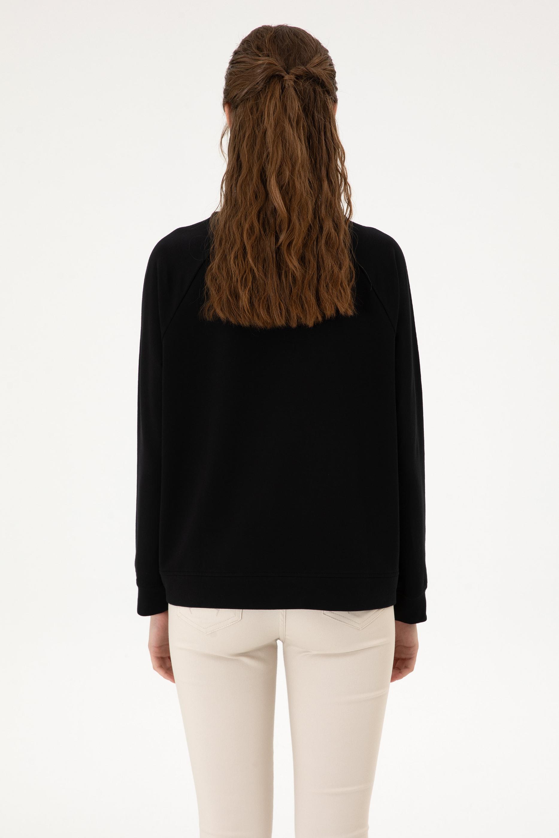 Kadın Siyah Regular Bisiklet Yaka Basic Sweatshırt
