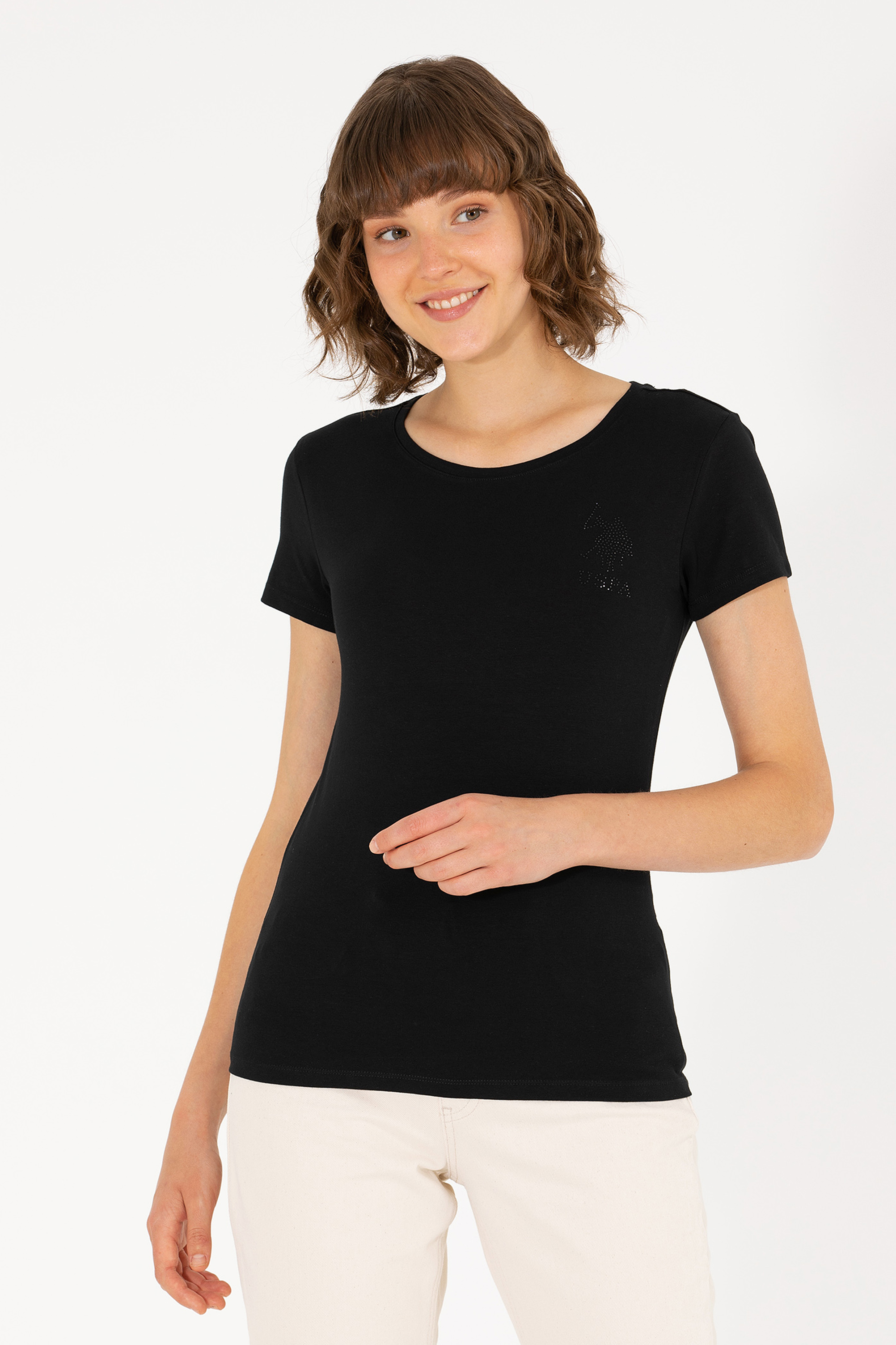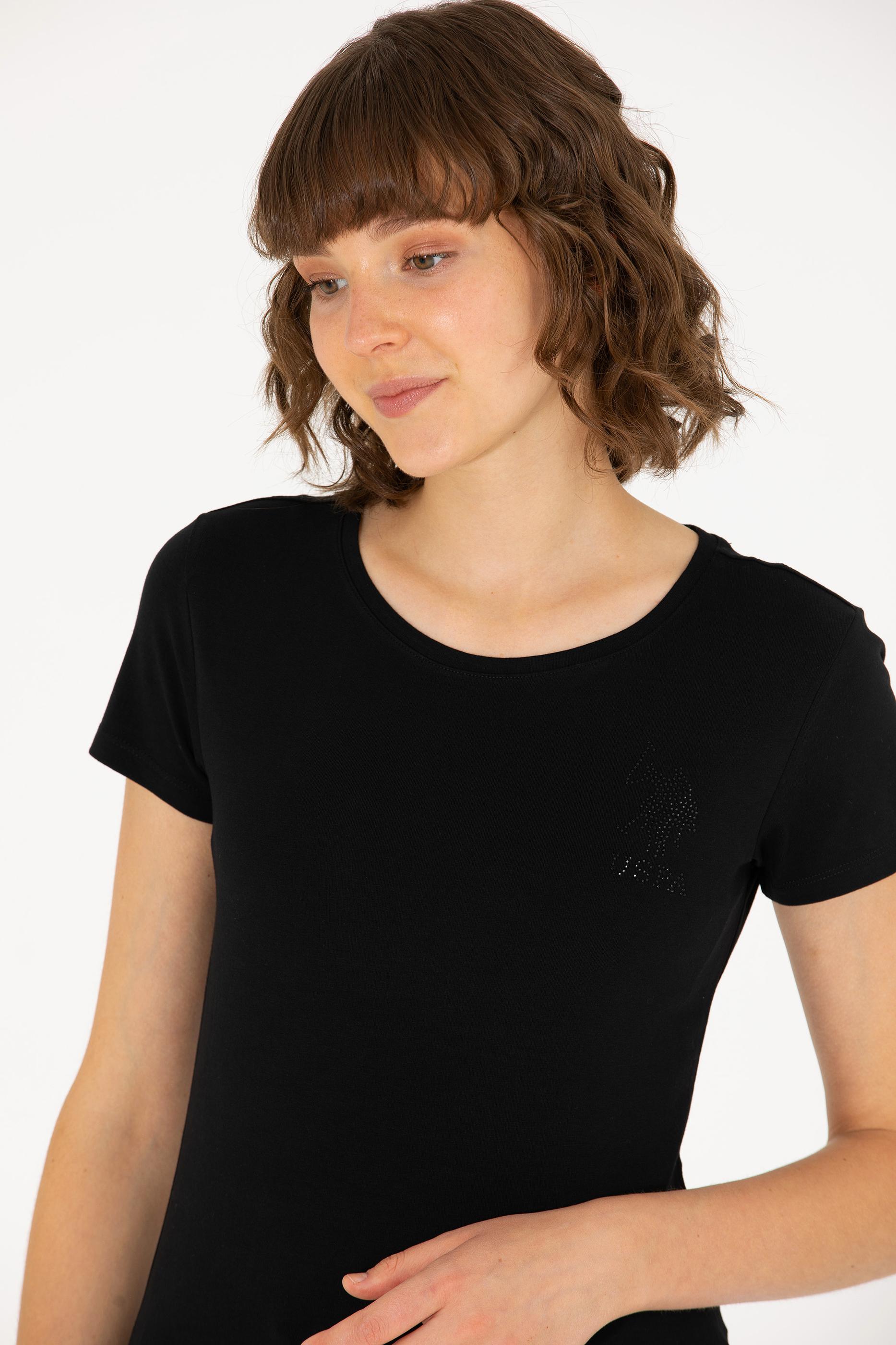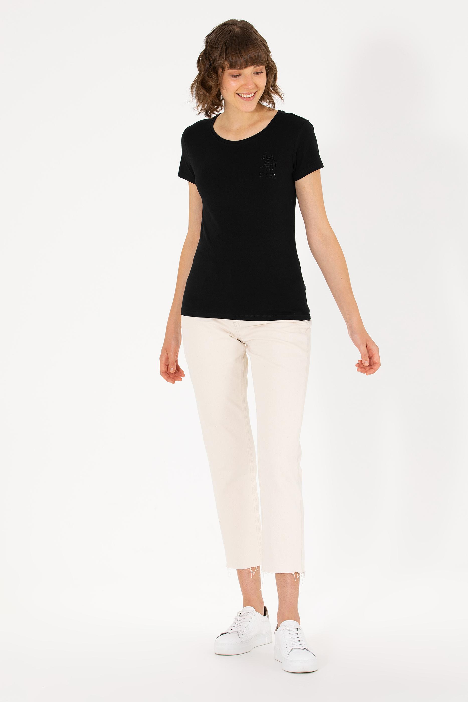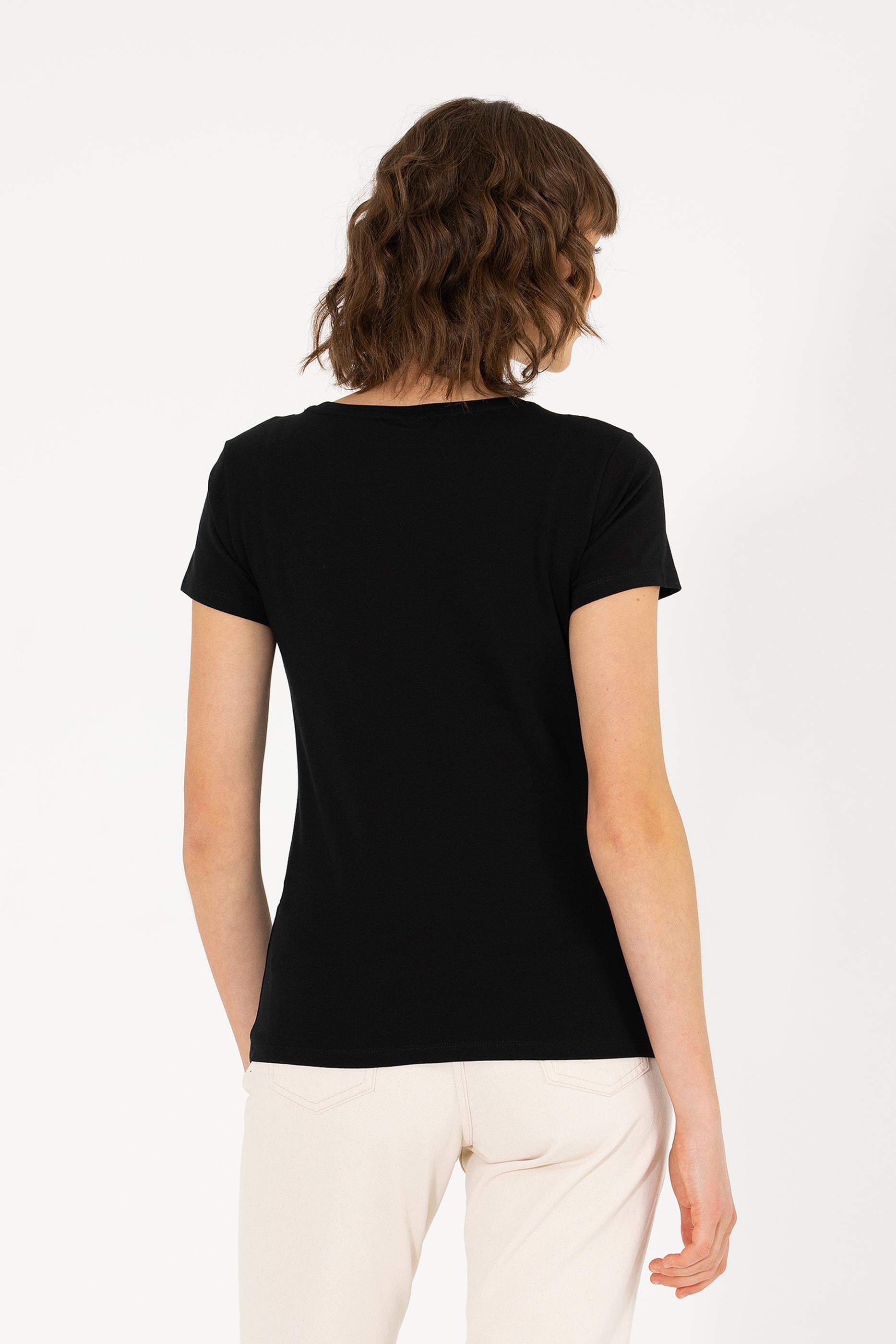 Kadın Siyah Bisiklet Yaka Basic Tişört