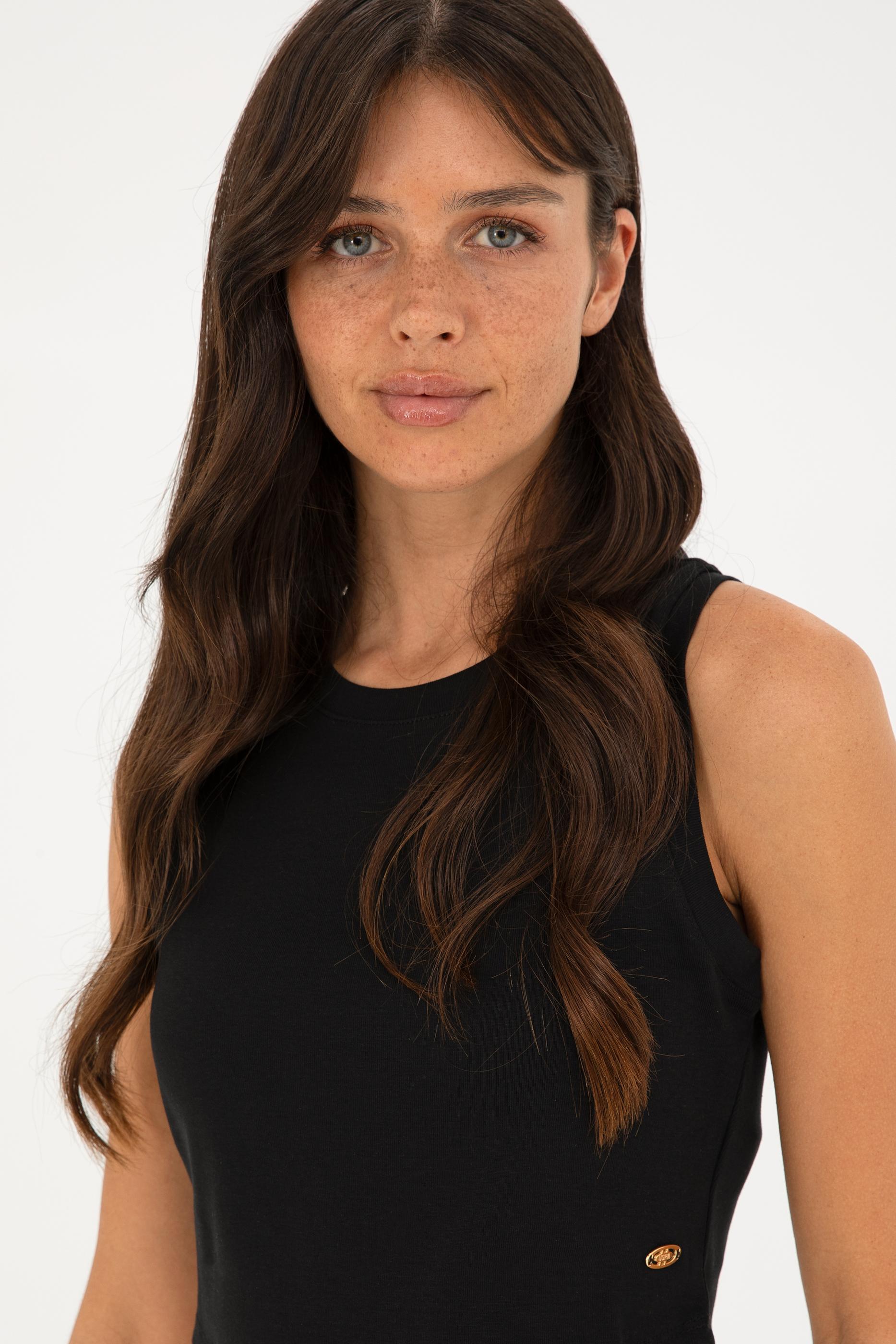 Kadın Siyah Bsiklet Yaka Crop Basic Tişört