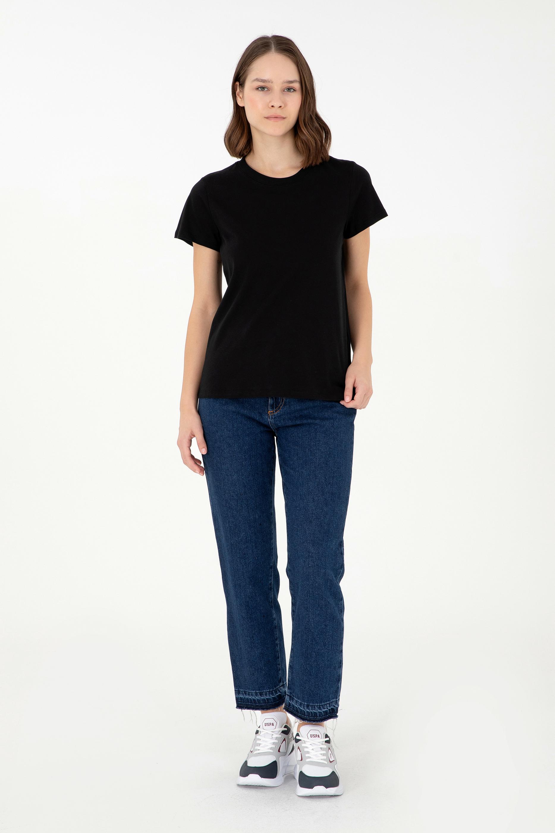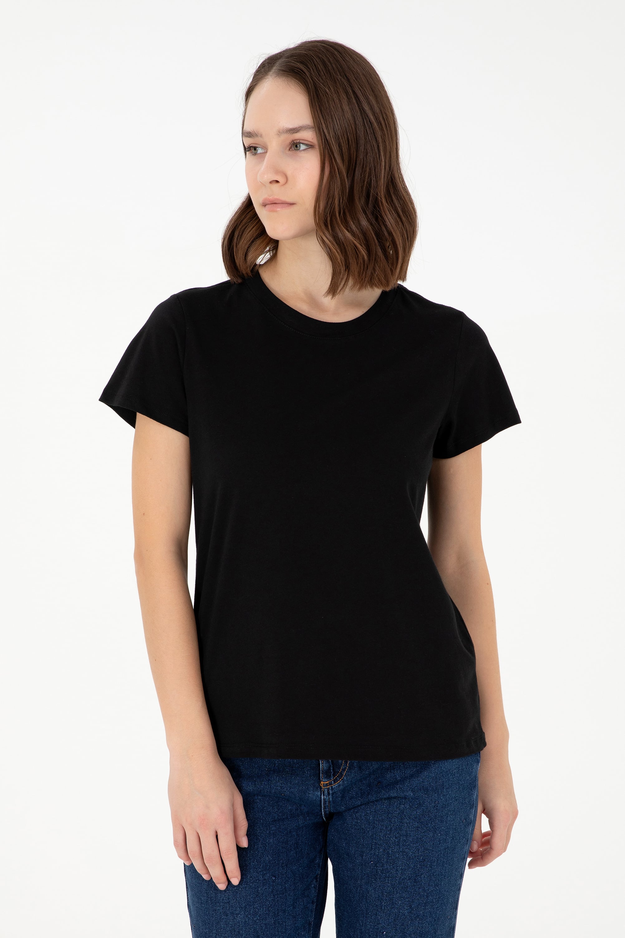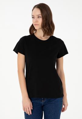 Kadın Siyah Bisiklet Yaka Basic Tişört