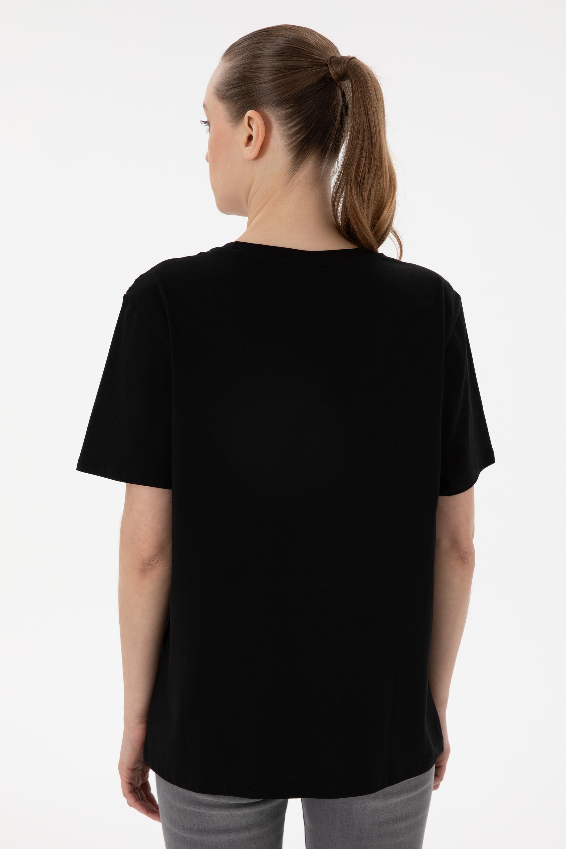 Kadın Siyah Bisiklet Yaka Basic Tişört