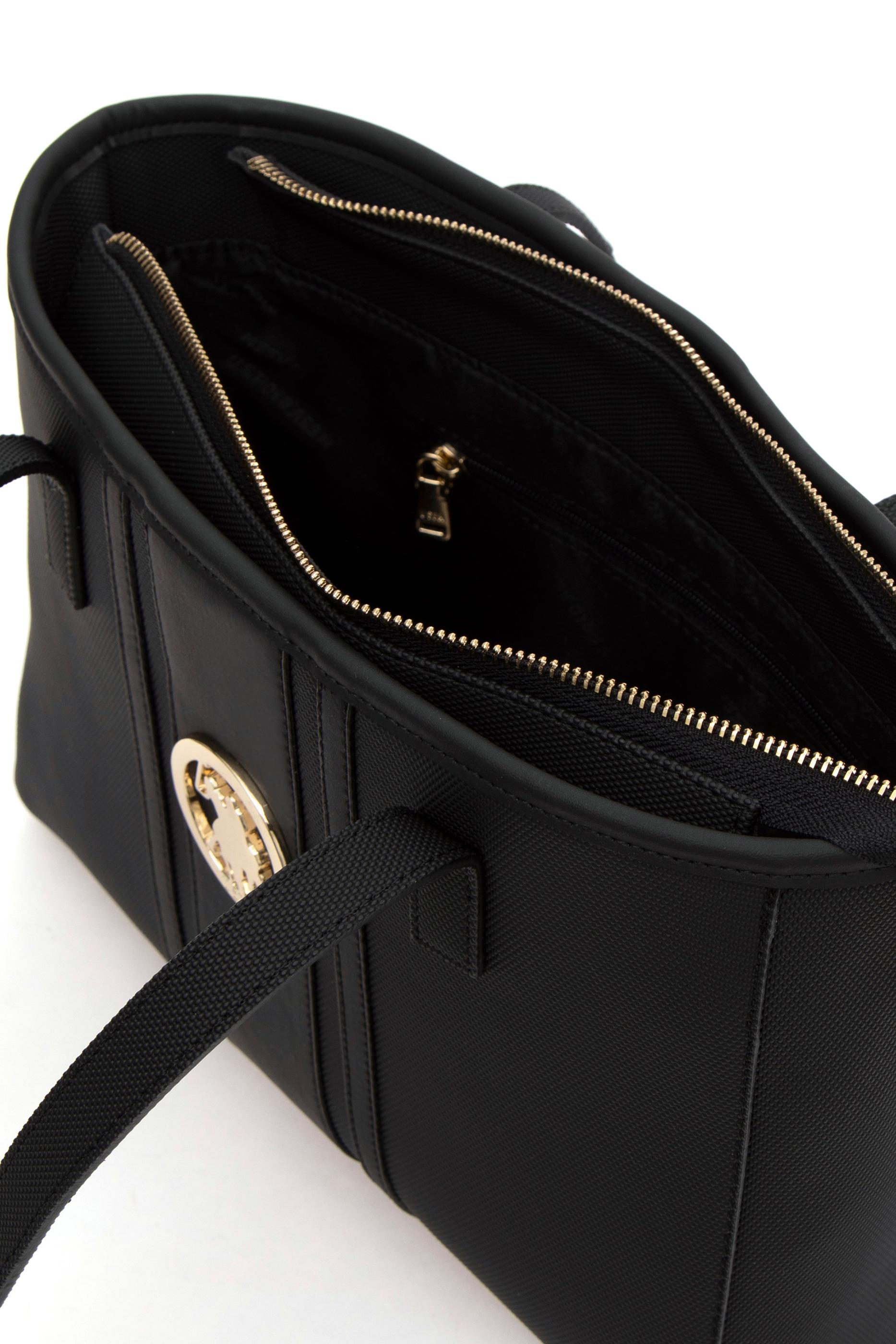 U.S. Polo Assn. siyah kadın kol çantası, ortadan geçen siyah şerit detayıyla sade tasarımına modern ve sportif bir dokunuş katıyor. Yapılandırılmış formu sayesinde her zaman düzenli bir görünüm sunarken, geniş iç hacmi günlük eşyalarınızı kolayca taşımanıza imkân tanır. Çift saplı omuz yapısı konforlu kullanım sağlarken, mat yüzey üzerinde yer alan altın tonlu logo rozeti çantanın zarif duruşunu tamamlar. ofis stilinden hafta sonu kombinlerine kadar her ortama zahmetsizce uyum sağlar.