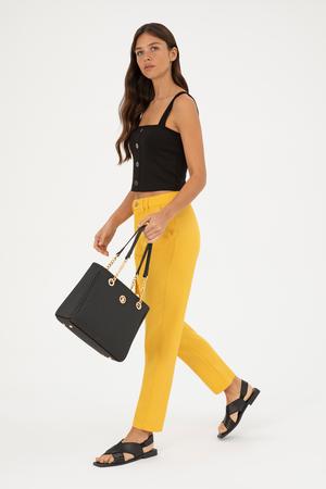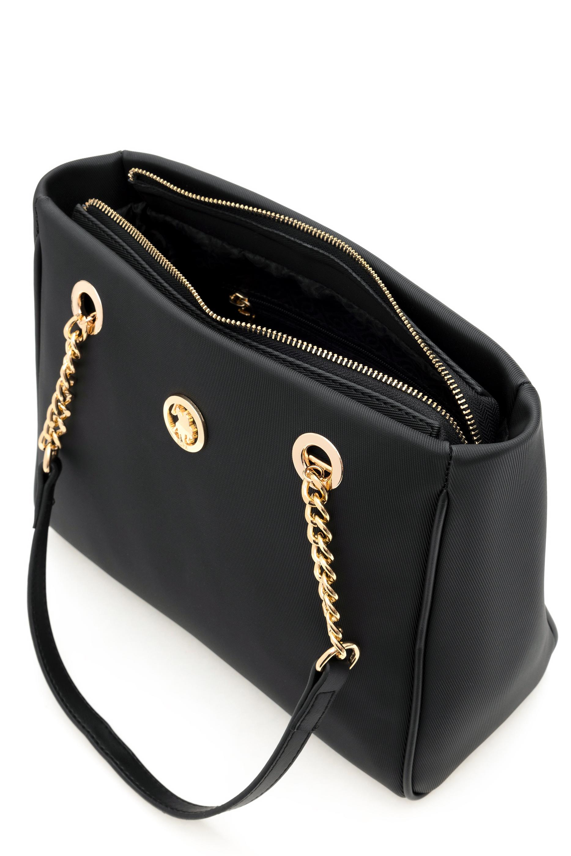 U.S. Polo Assn. siyah omuz çantası, net hatlara sahip güçlü bir tasarım sunar. Düz formu sayesinde her zaman şık ve düzenli görünür. Gold zincir detaylı sapları çantaya zarif bir ışıltı katar. Geniş iç hacmiyle günlük ihtiyaçlara rahatlıkla cevap verir. Altın renkli logo rozetiyle markanın klasik duruşunu yansıtır. Ofis stilinden hafta sonu kombinlerine kadar pek çok tarza kolayca uyum sağlar.