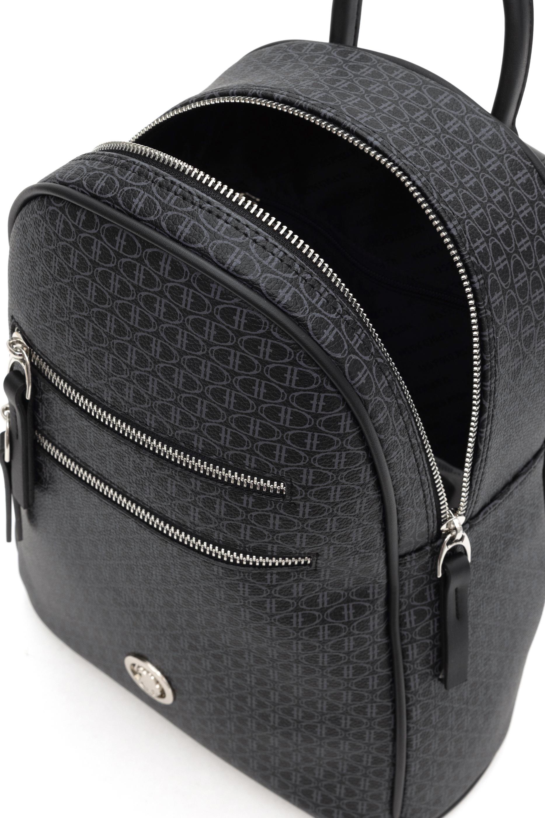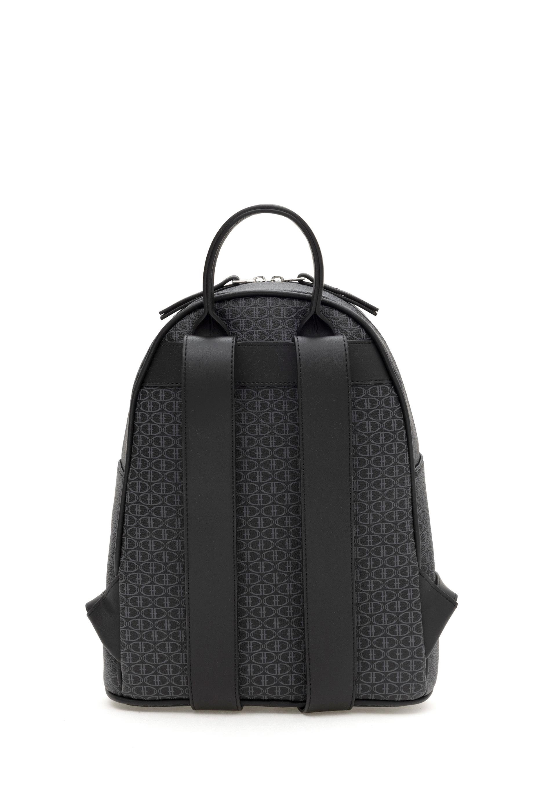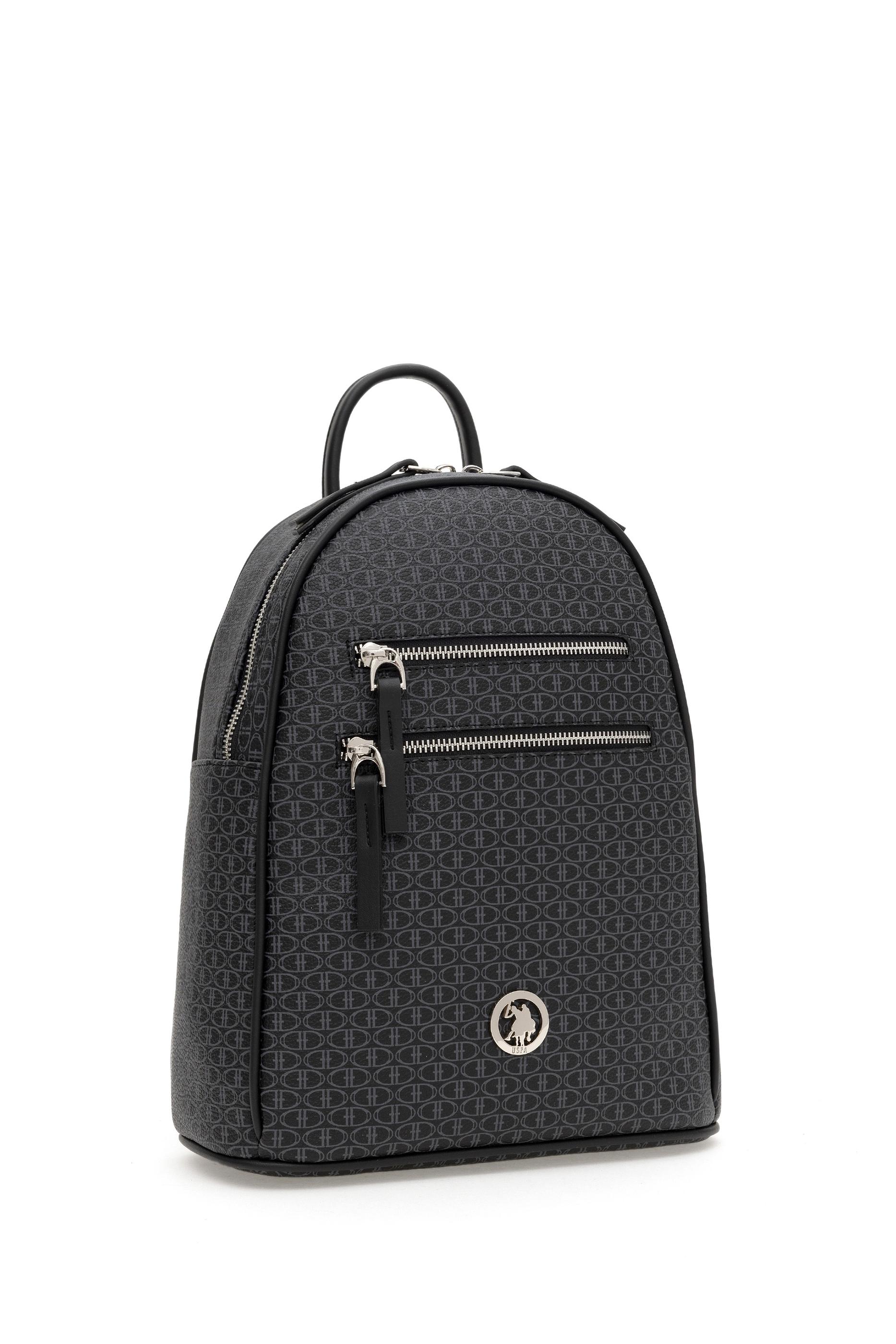 U.S. Polo Assn. siyah sırt çantası, klasik sırt çantası formunu zarif detaylarla buluşturan kompakt bir modeldir. Tüm yüzeyi açık tonlu geometrik desenlerle kaplı olup, ön bölümde altın renkli yuvarlak metal logo yer alır. İki adet fermuarlı ön cep ve fermuarlı ana bölme sayesinde düzenli kullanım imkânı sunar. Fermuar uçlarında siyah deri görünümlü şerit detaylar bulunur. Üst kısmında kısa bir tutma sapı yer alırken, ayarlanabilir omuz askıları sayesinde çanta konforlu bir şekilde taşınabilir. modeli hem sade hem de dikkat çekicidir.