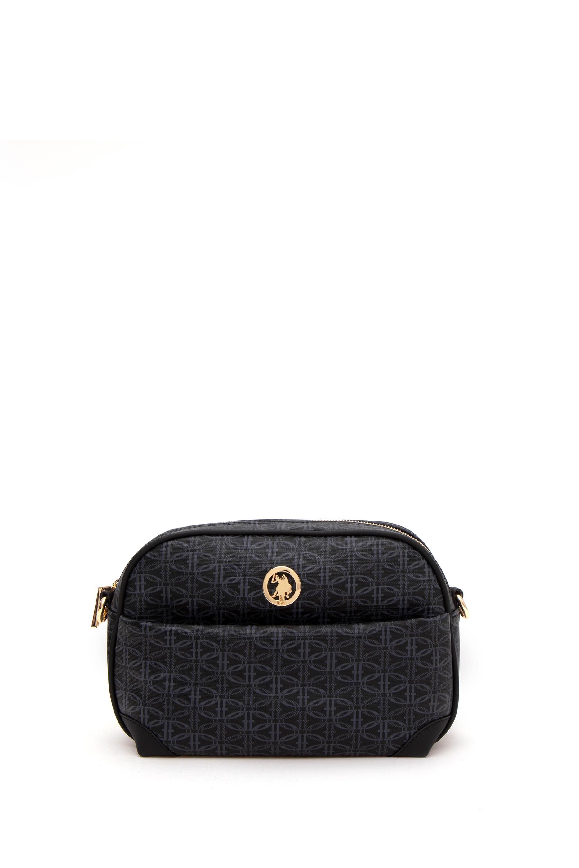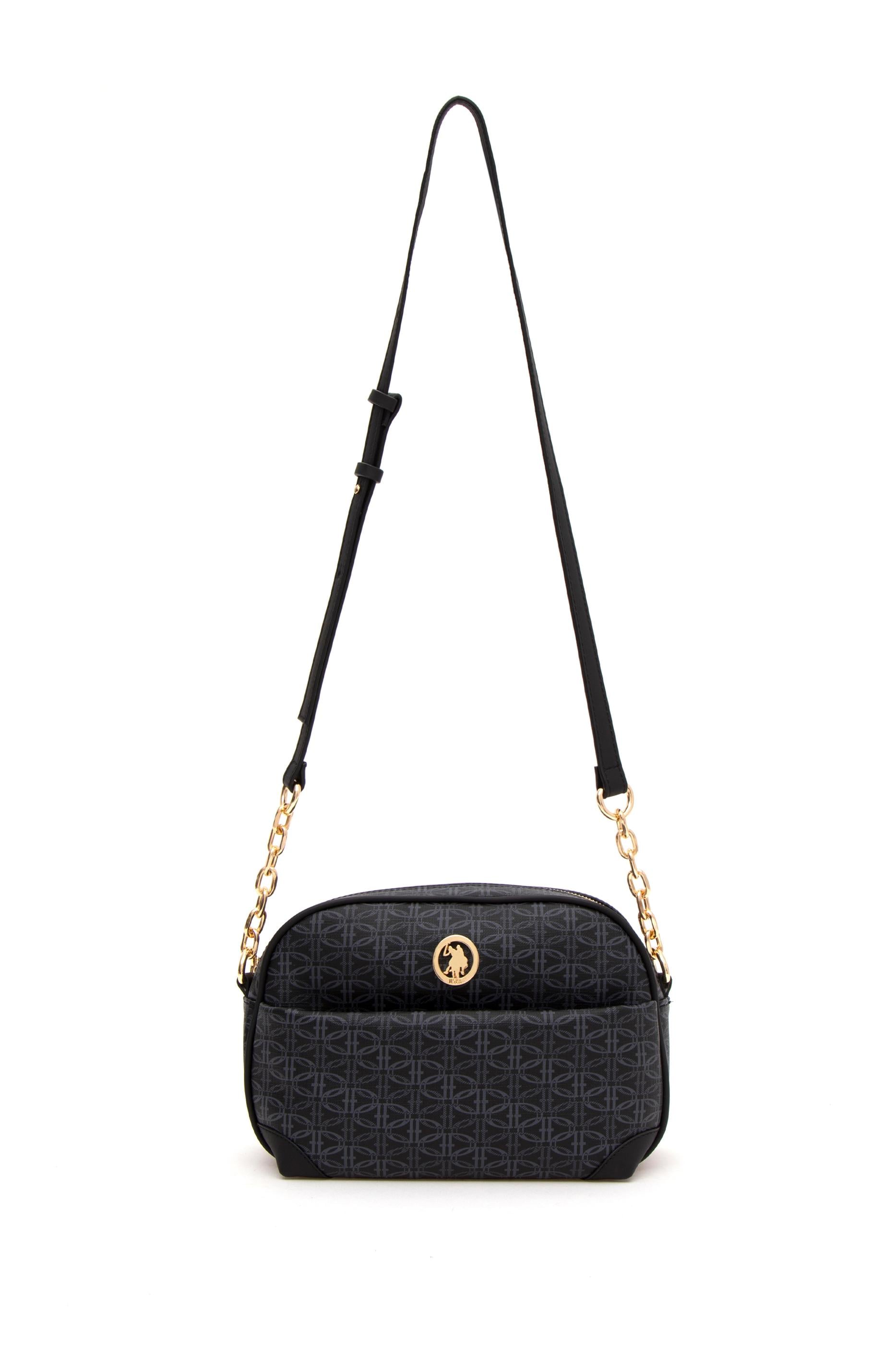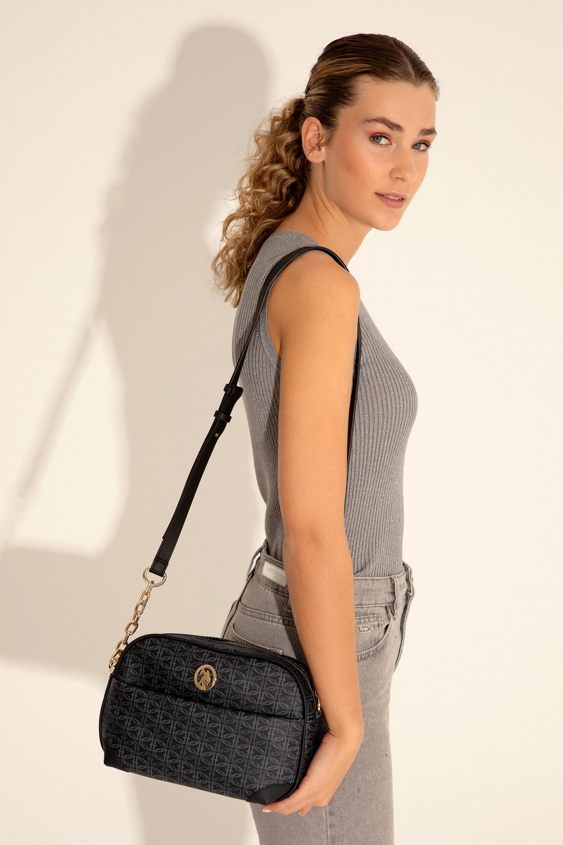 U.S. Polo Assn. siyah çapraz çanta, yumuşak tonlardaki monogram desenli yüzeyiyle doğal ve dengeli bir görünüm sunar. Kavisli üst hatları, kenarlardaki deri görünümlü tamamlayıcı parçalarla bütünleşir. Ön yüzeyde yer alan altın renkli arma tasarıma sade bir vurgu katar. Ayarlanabilir omuz askısına ek olarak zincir detaylı kısa sap, çantaya hem şıklık hem çok yönlü kullanım kazandırır. Hafif yapısı ve ideal boyutuyla günlük stilin tamamlayıcısı olmaya uygundur.