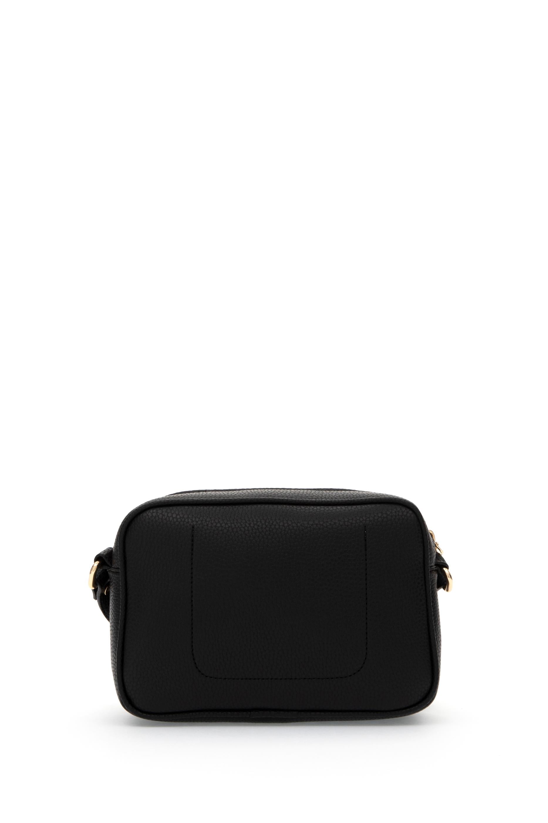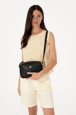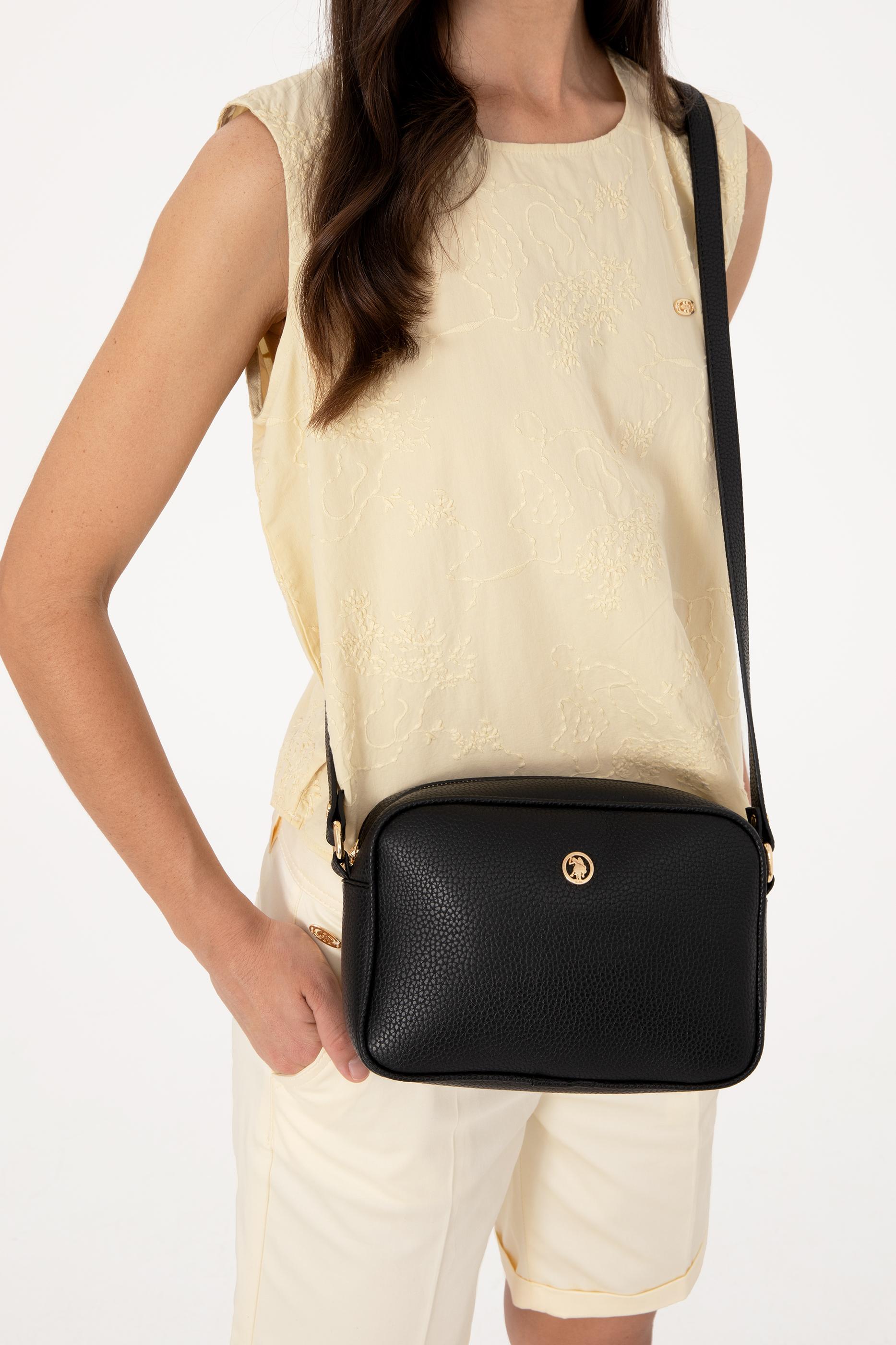 Yuvarlatılmış dikdörtgen formu ve hafif dokulu yüzeyiyle öne çıkan bu siyah çapraz çanta, günlük kullanım için hem konforlu hem stil sahibi bir seçenek sunar. Ayarlanabilir ince askısı sayesinde omuzda ya da çapraz taşımaya uygun olan model, altın renkli yuvarlak logo detayıyla şıklığını tamamlar. Kompakt yapısına rağmen temel eşyaları rahatça taşıyabilecek iç hacmiyle, kapsül dolaplarda kendine yer bulacak zamansız bir parça.