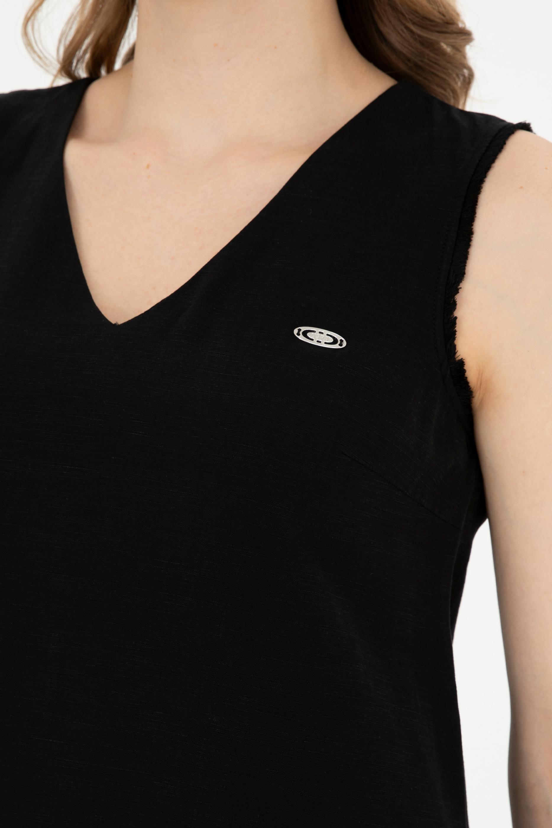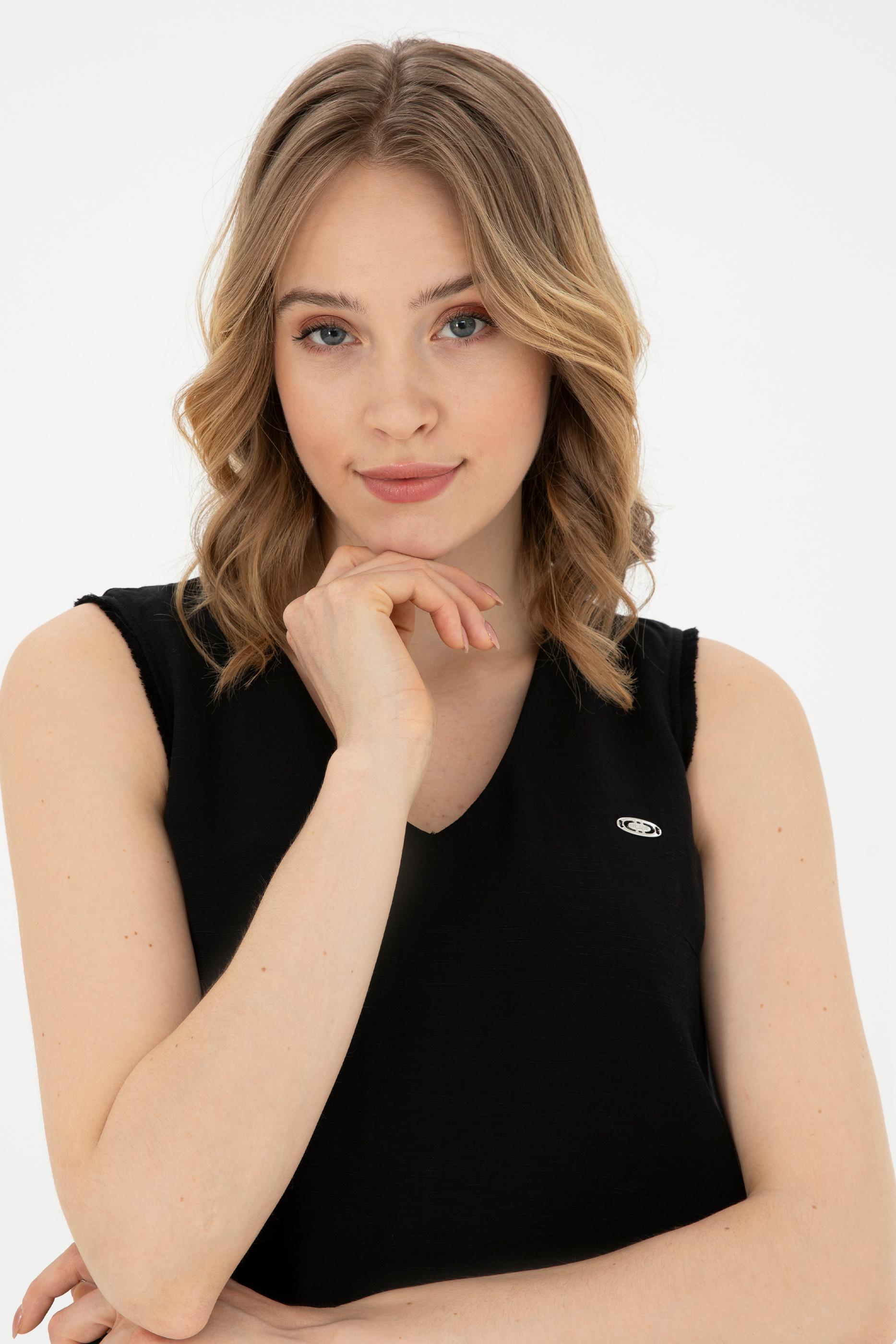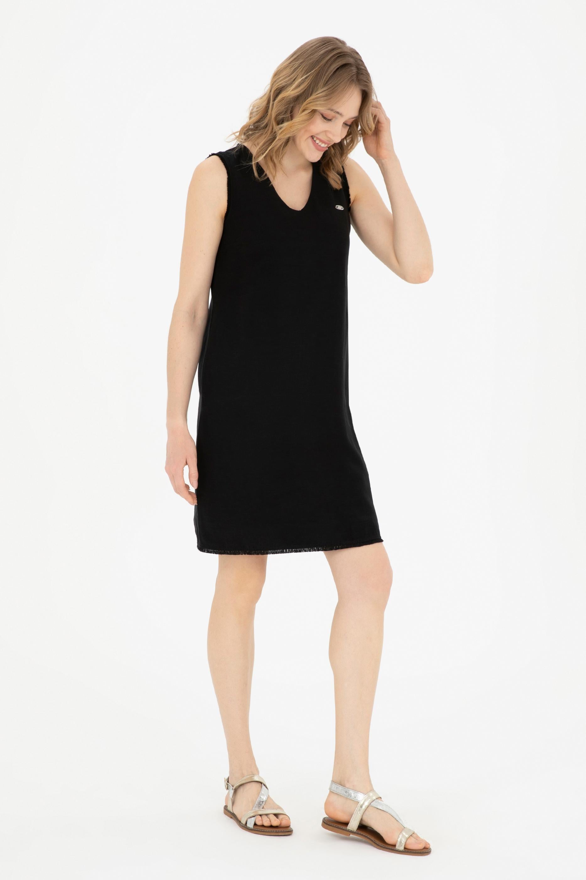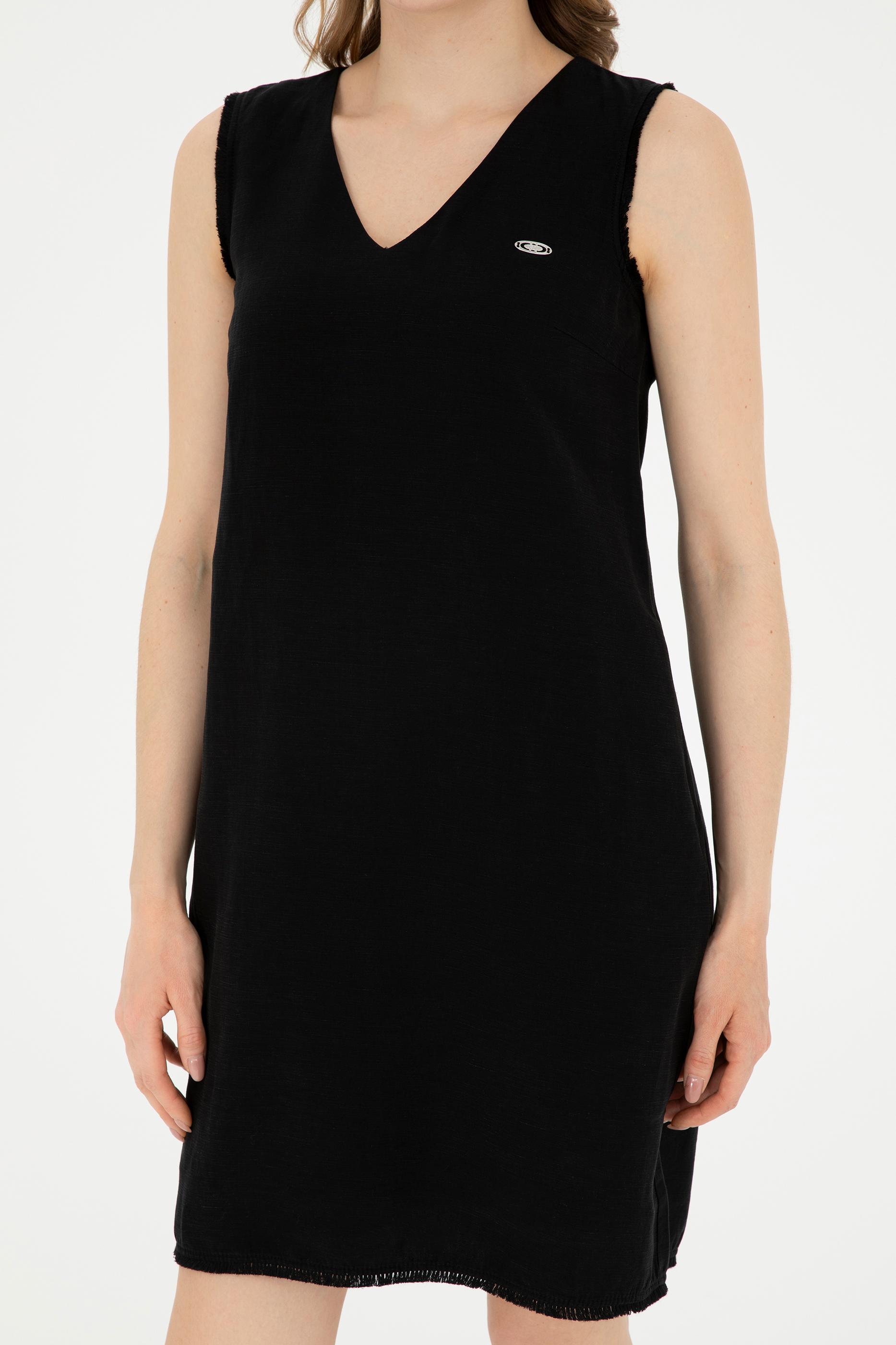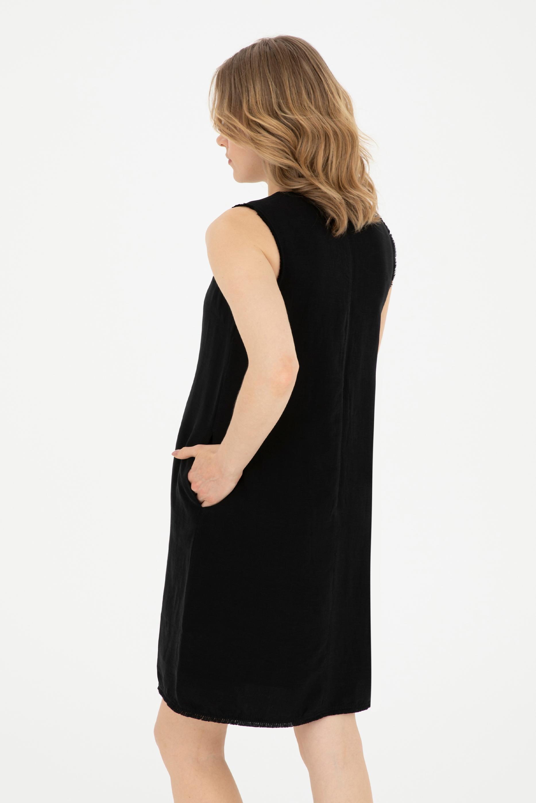 Kadın Siyah Bisiklet Yaka Dokuma Elbise
