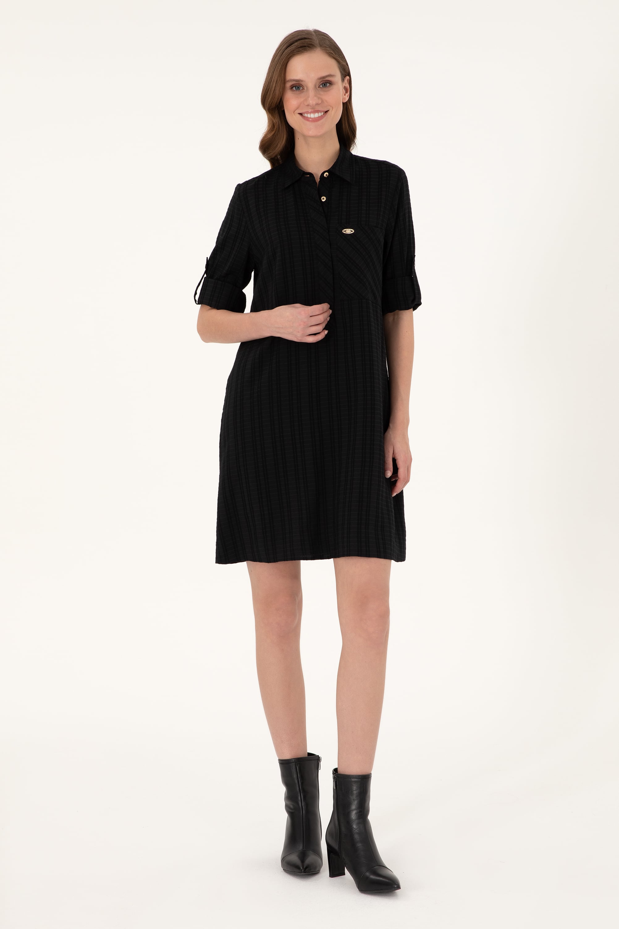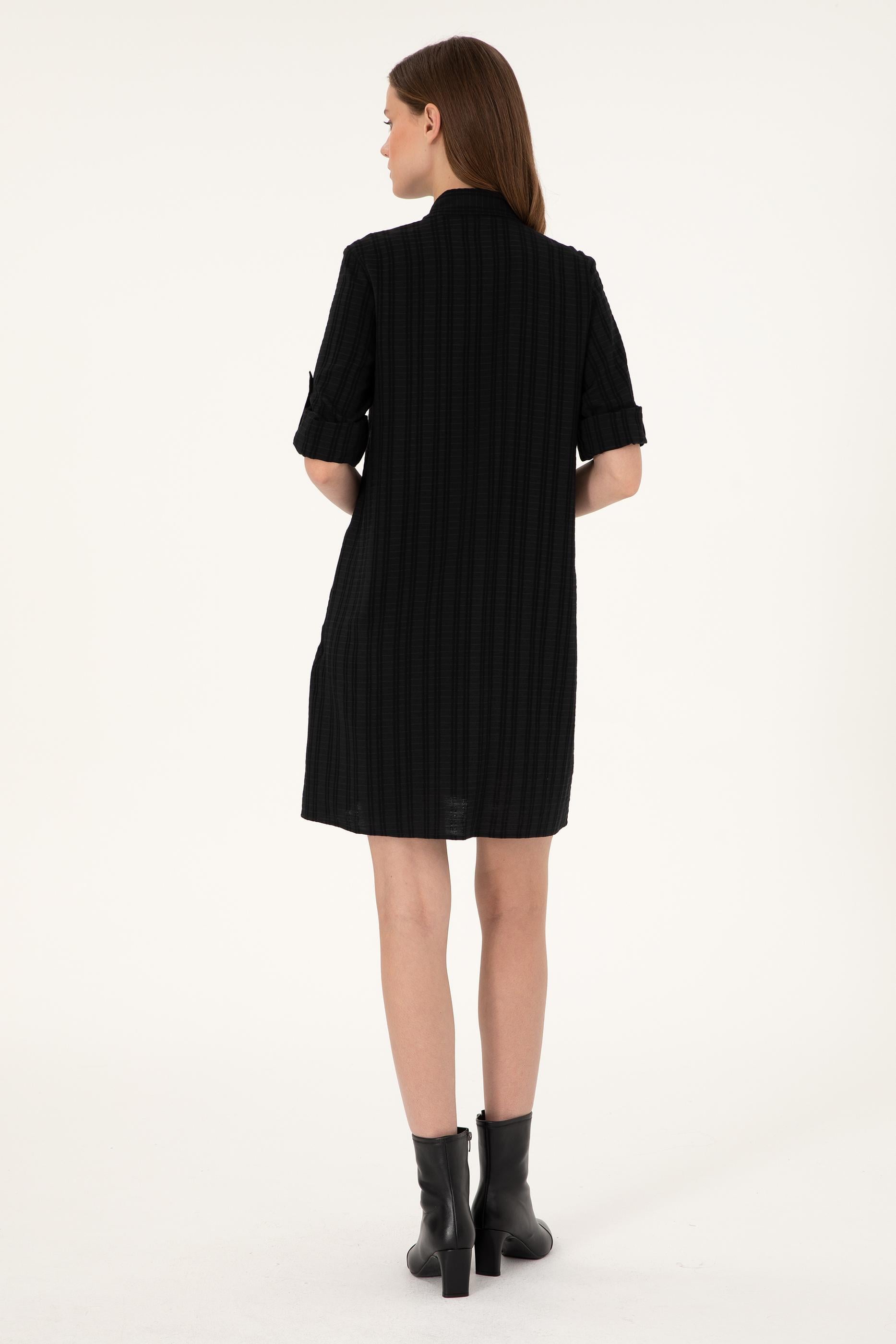 Kadın Siyah Mini Boy Dokuma Elbise