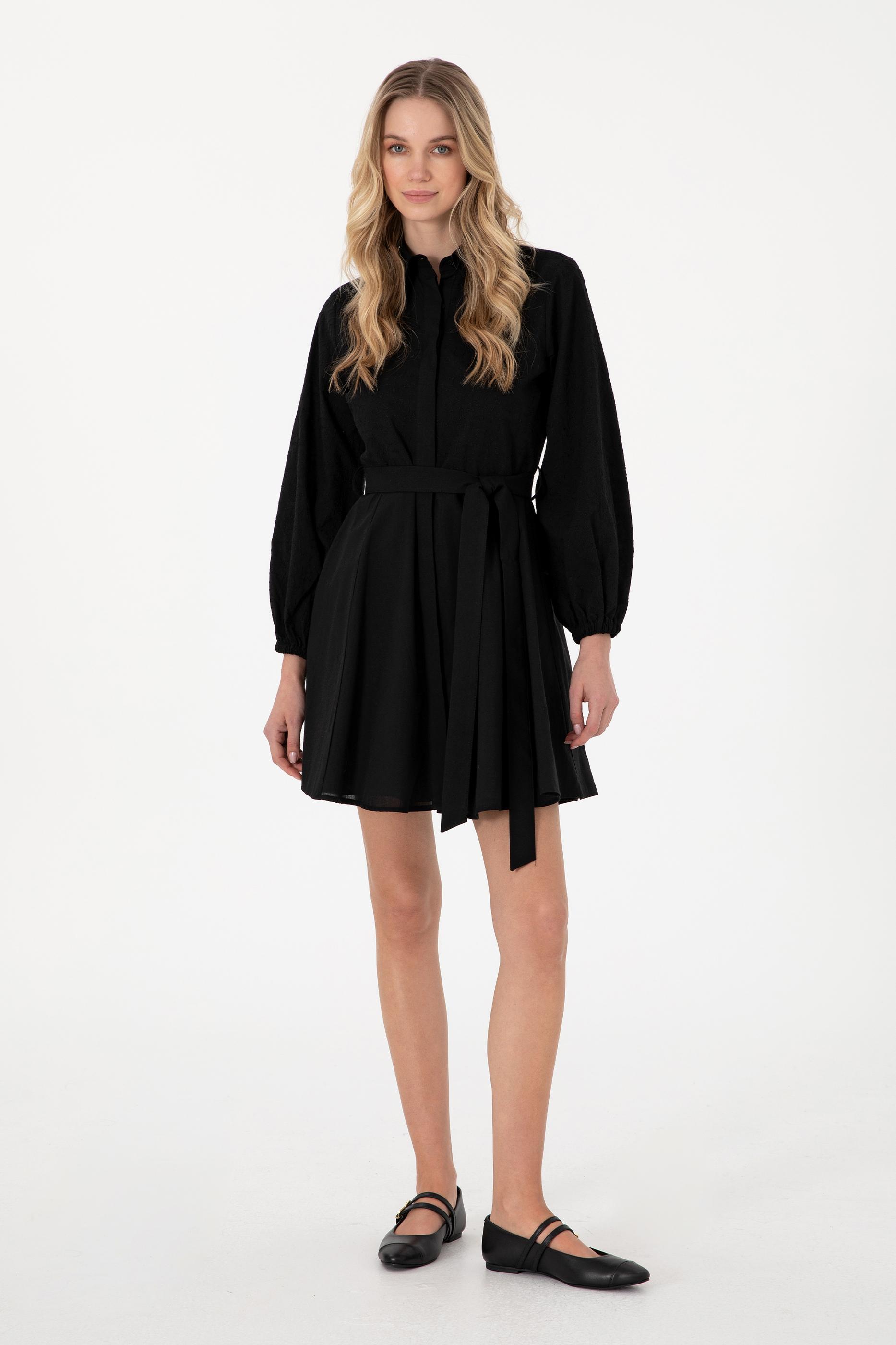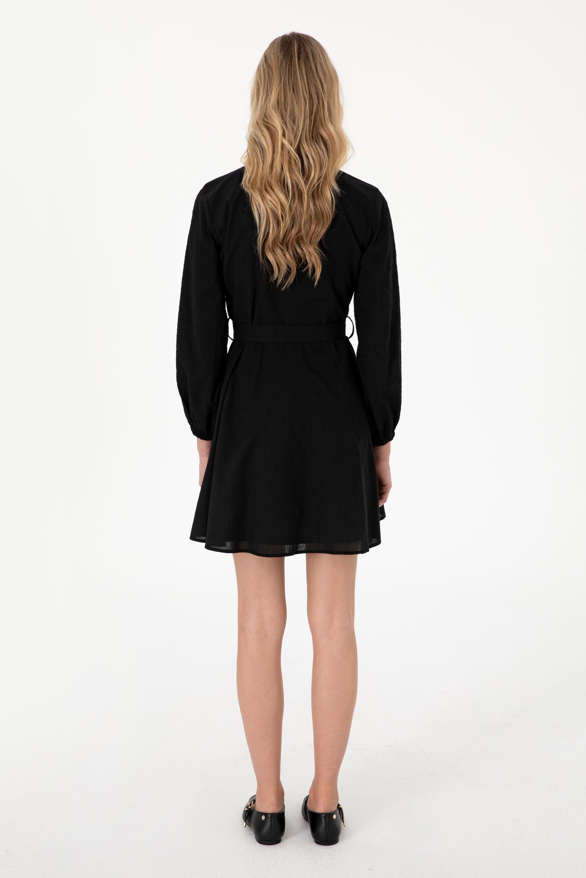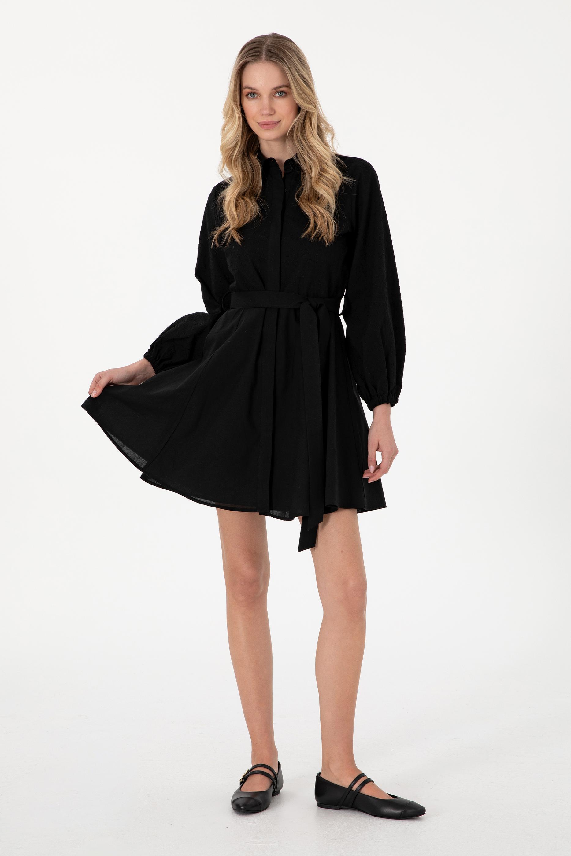 Kadın Siyah Mini Boy Dokuma Elbise