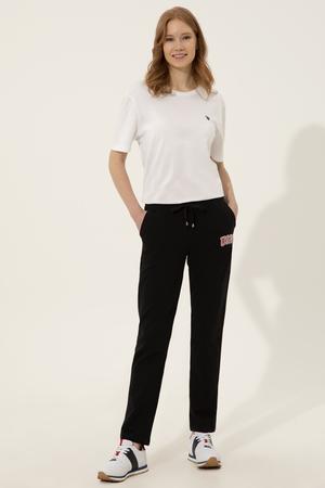 Eşofman altı kadın spor severlerin ve spor kombin tutkunlarının ilk tercihleri arasında yer alıyor. Farklı kıyafetlerle kombinleyerek şık bir örme pantolon olarak da kullanabileceğiniz model, USPA nakış detayı, ayarlanabilir bel özelliyle dikkat çekiyor. Boru paça pantolon modelimiz kaliteli kumaşıyla uzun ömürlü bir kullanım imkanı sunuyor. Lacivert eşofman altı modelimizi koyu ya da açık birçok renkle uyumlu şekilde kombinleyebilirsiniz.