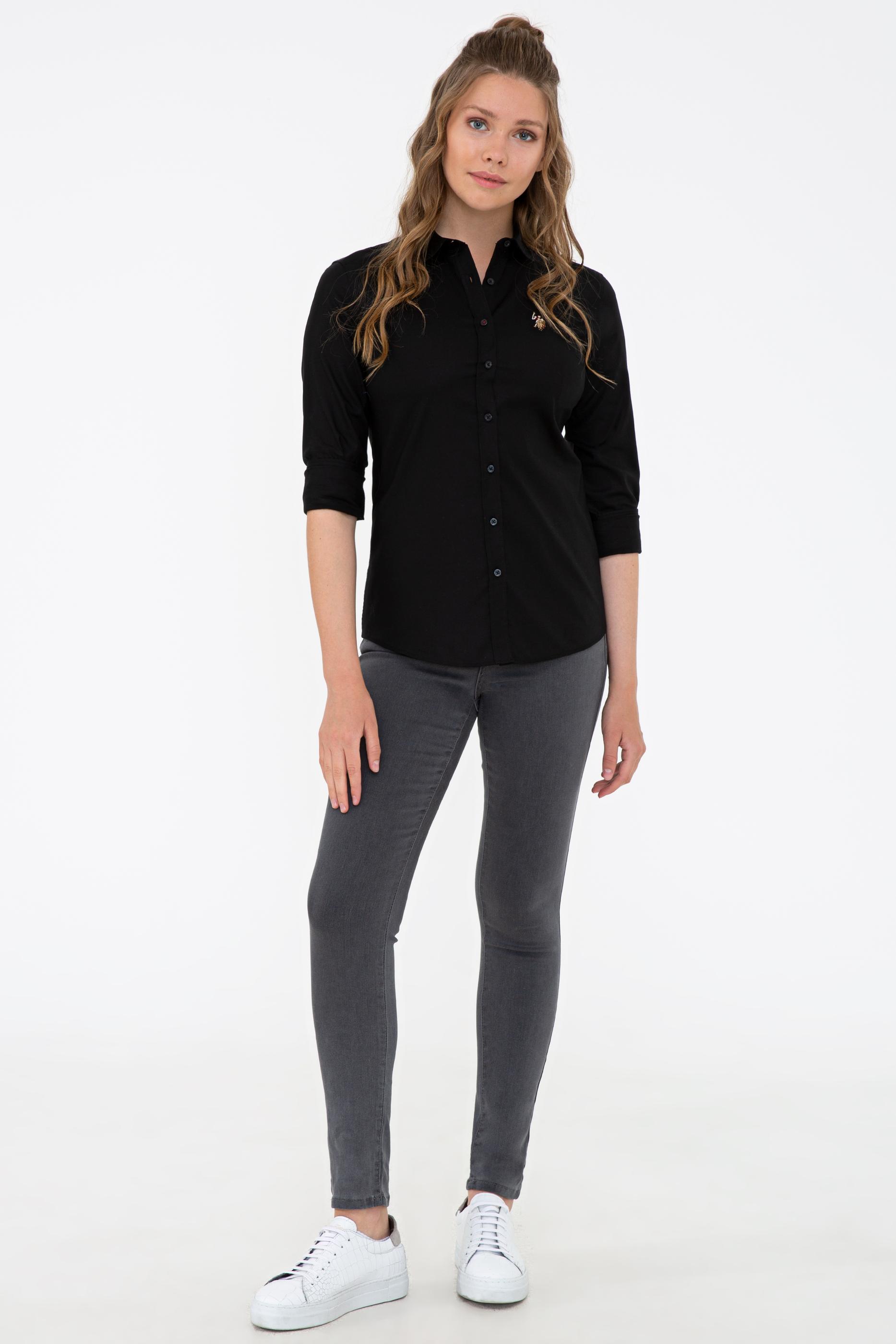 - Kadın Siyah Gömlek Uzunkol Basic