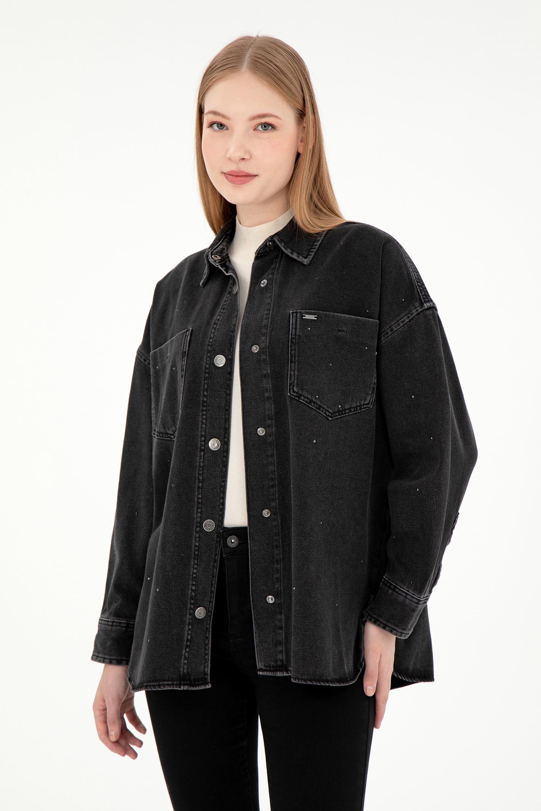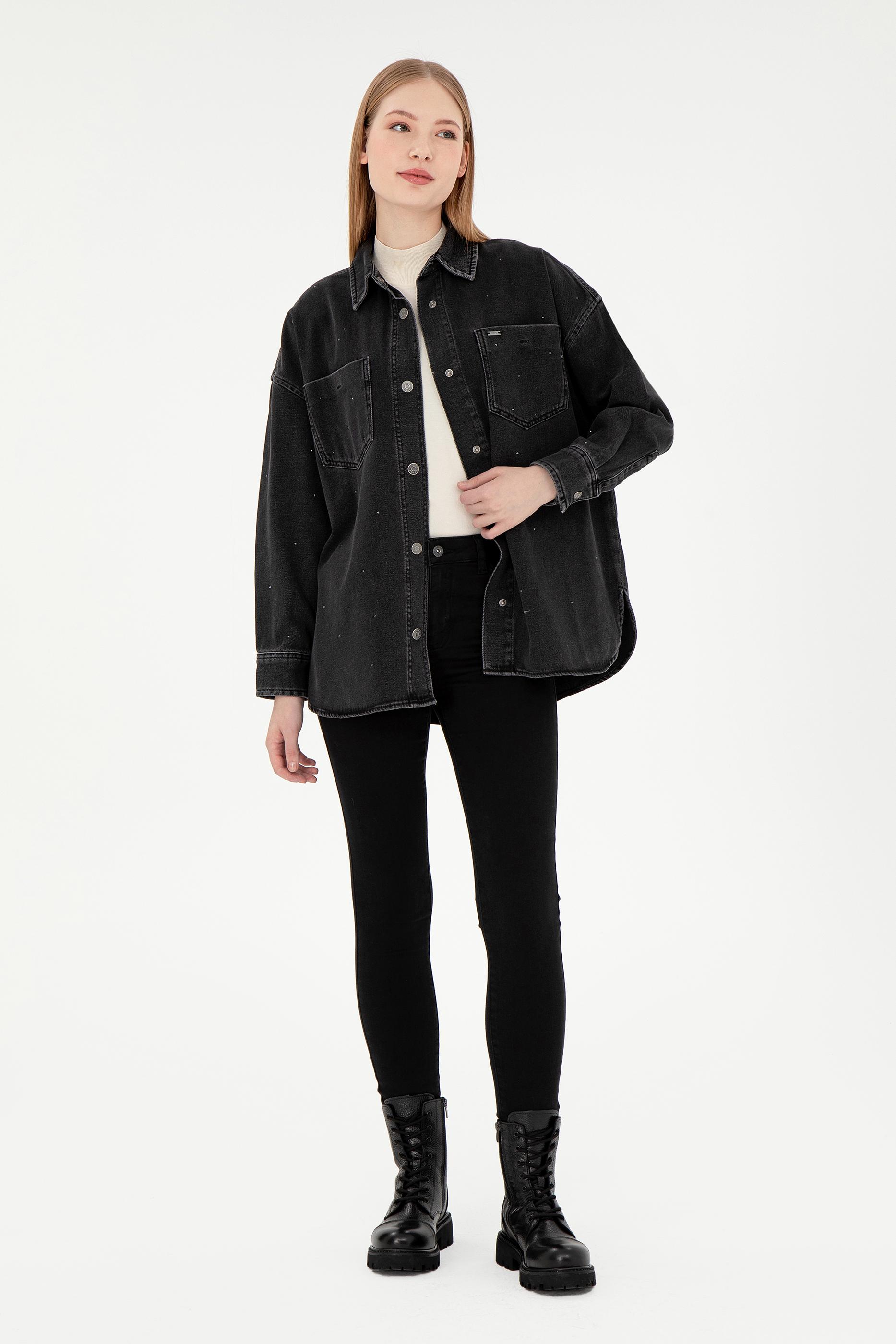 Kadın Siyah Jean Gömlek