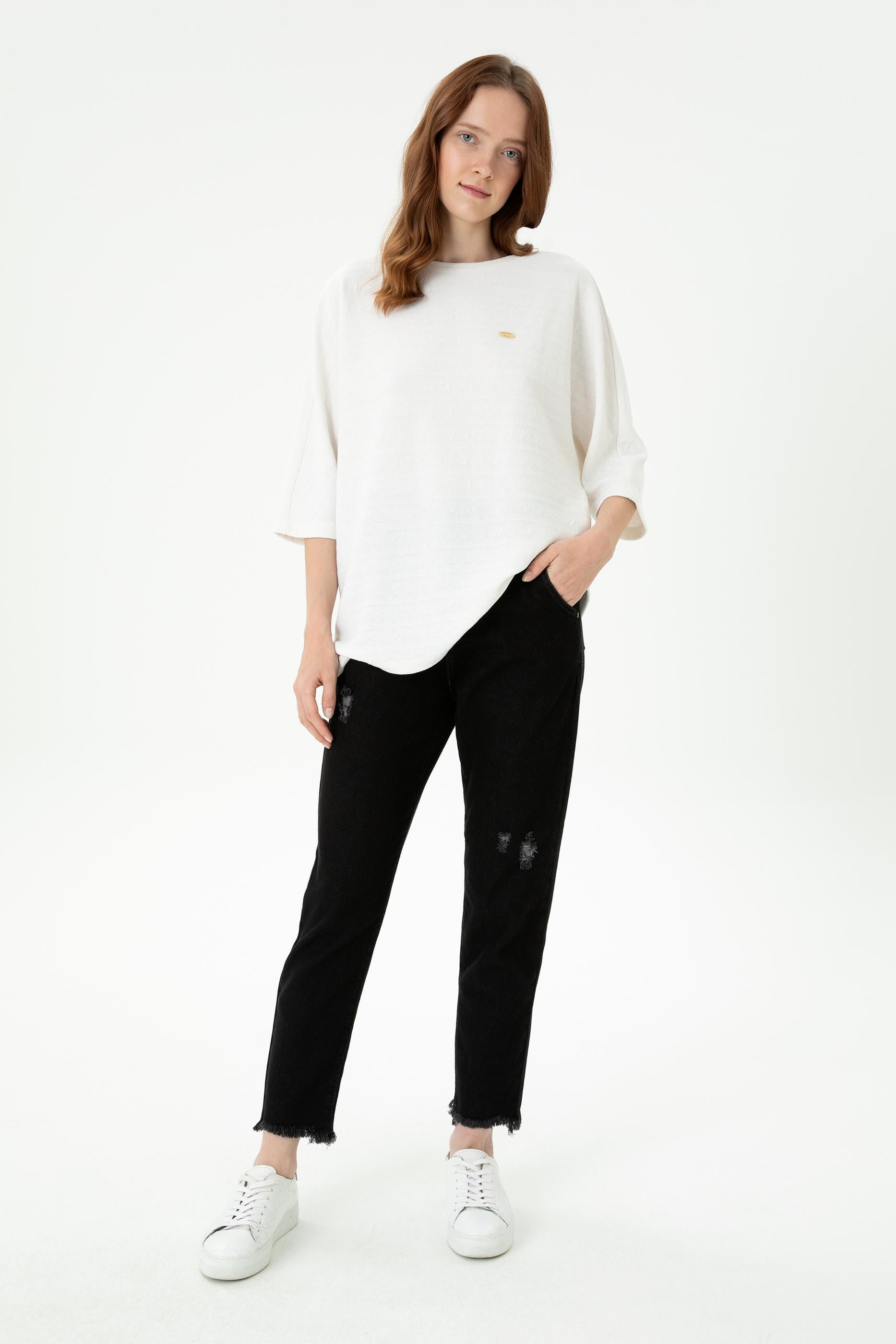 - Kadın Siyah Mom High Waist Fit Jean Pantolon