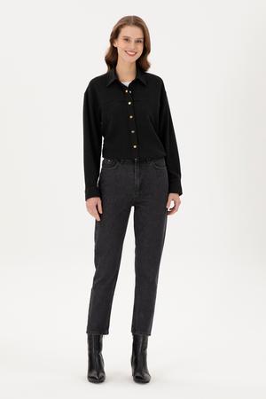 - Kadın Siyah Mom High Waist Fit Jean Pantolon