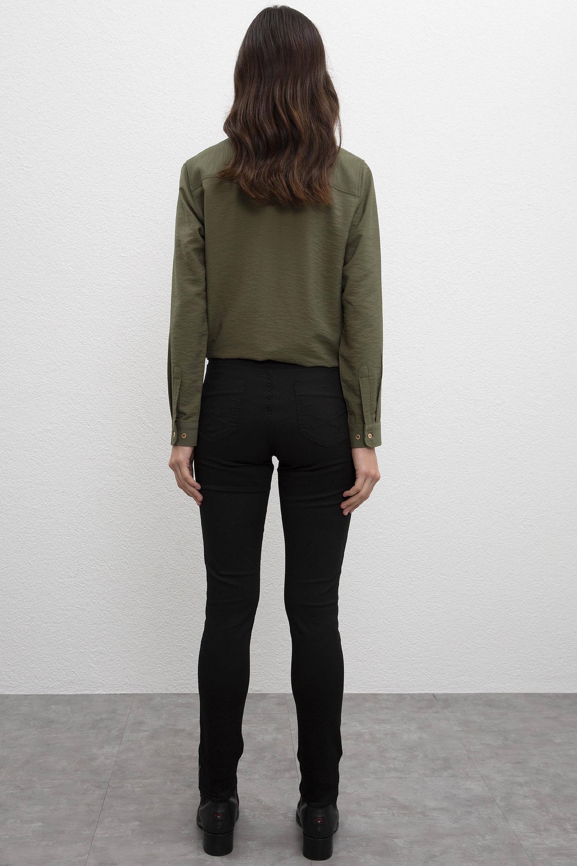 Kadın pantolon modelleri tek başına güçlü tasarımlardır ancak bütün bir kombini de etkisi altına alabilir. Bu sebeple hem şık hem de kaliteli materyale sahip modeller arasından seçim yapmalısınız. Rahat ve esnek kumaşa sahip slim fit kadın pantolon modelimiz yoğun ve dinamik geçen günlerinizde benzersiz konforuyla size eşlik edecek. Pamuk, polyester ve elastan – spandeks karışımlı kadın pantolon modelimiz favori tasarımlarınızdan olmaya aday!