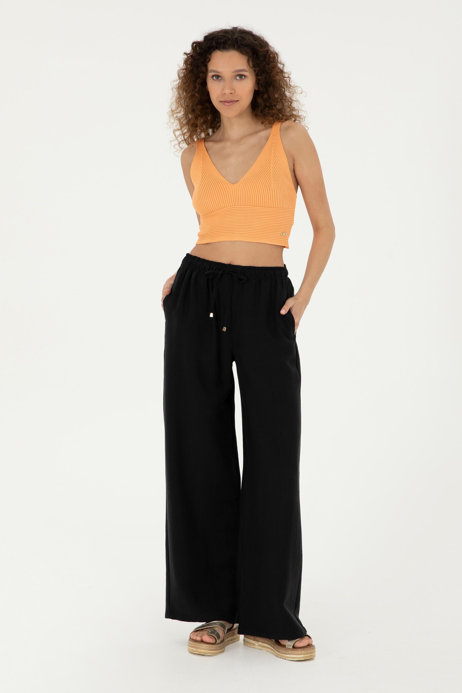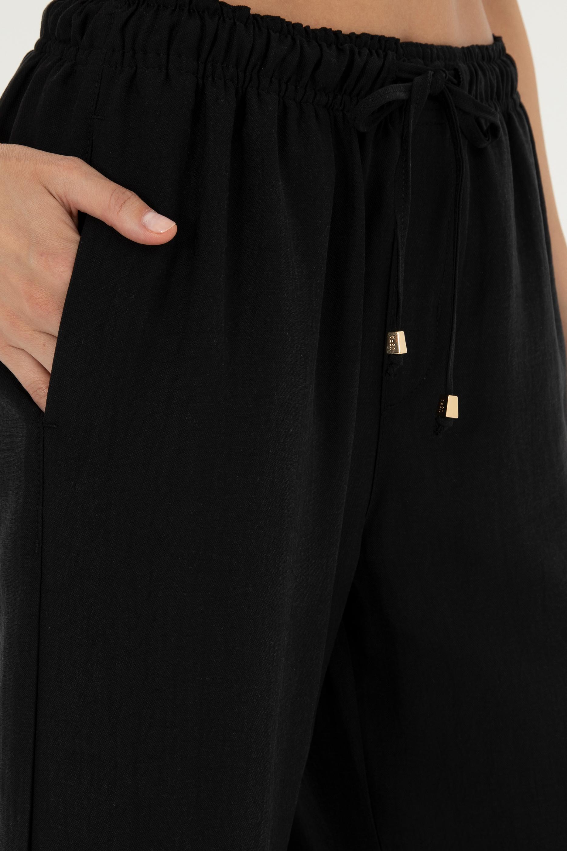 Siyah renkteki cepli spor pantolon, %92 liyosel ve %8 poliester karışımı kumaşıyla hem rahat hem de dayanıklı bir yapıya sahiptir. Yırtmaçsız tasarımı ve loose relax fit kesimi ile konforlu bir kullanım sunar. Ceplerinin pratikliği ile günlük kullanımda büyük kolaylık sağlar. Pantolonun elastik beli ve ayarlanabilir bağcıkları, kişisel konforunuzu en üst seviyeye çıkarır. Yumuşak ve hafif dokusu gün boyu rahatlık sağlarken, nefes alabilir yapısı ile sıcak günlerde de ideal bir tercih olur.